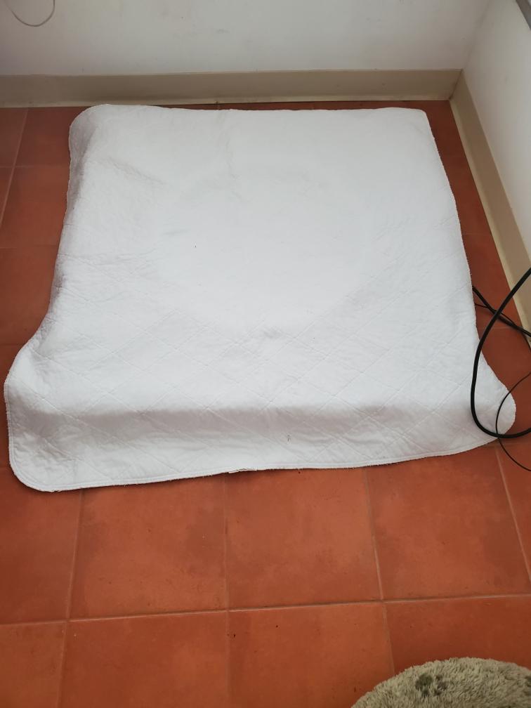 Morning picture 1. Note White stretching. White joined the 200-gram club this morning. Morning picture 2. Siri said that it is not nice to take a picture of a woman in the morning before she has a chance to brush her hair.