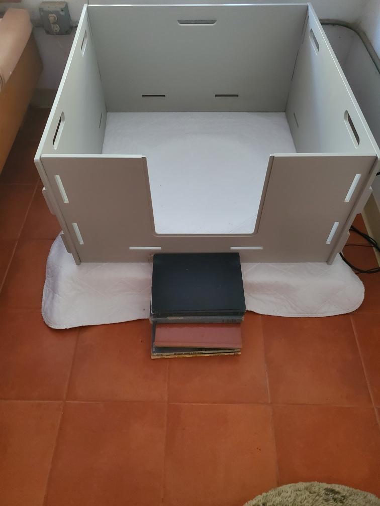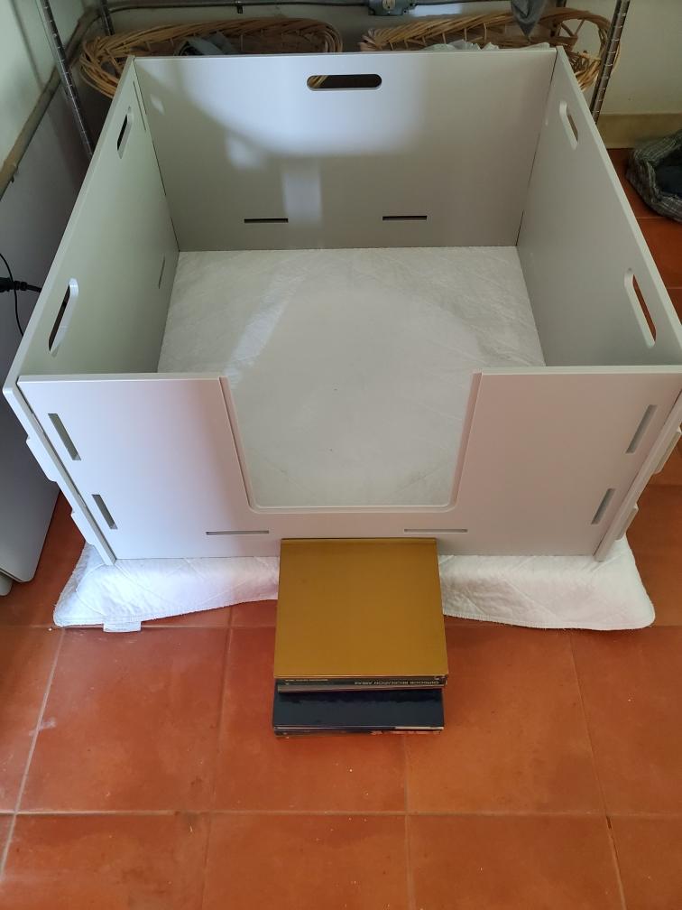 I spent part of the afternoon assembling Siri's whelping box. I had to move a dresser out of my bedroom in order to fit Siri's whelping box into my bedroom along with Gwynie's whelping box.