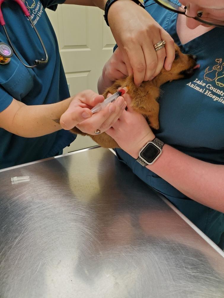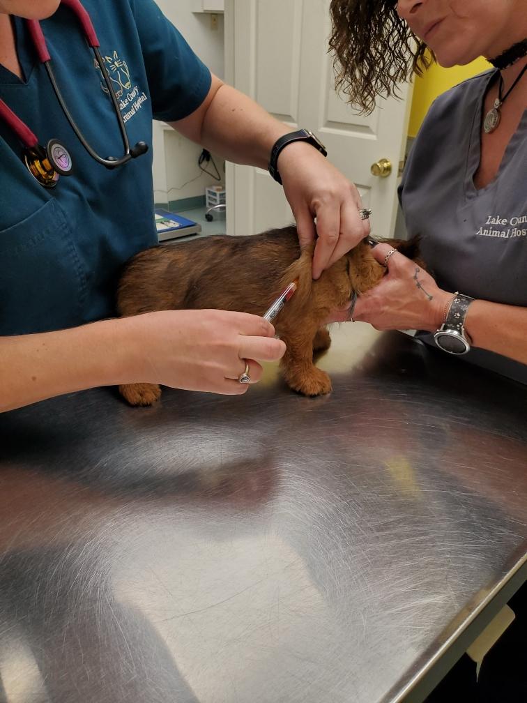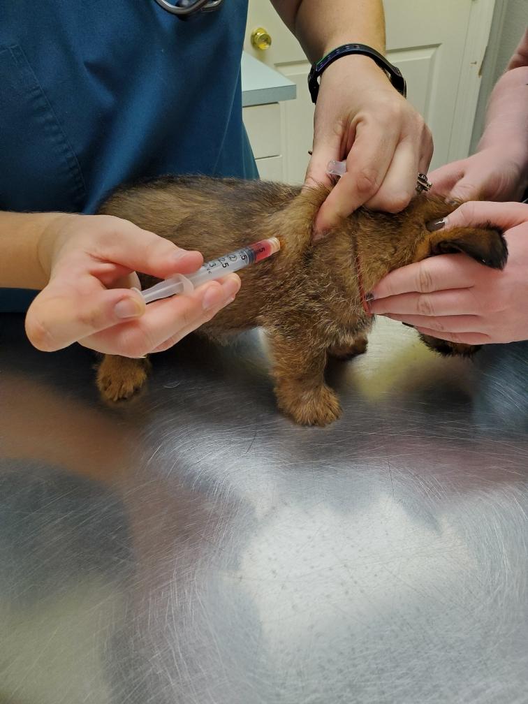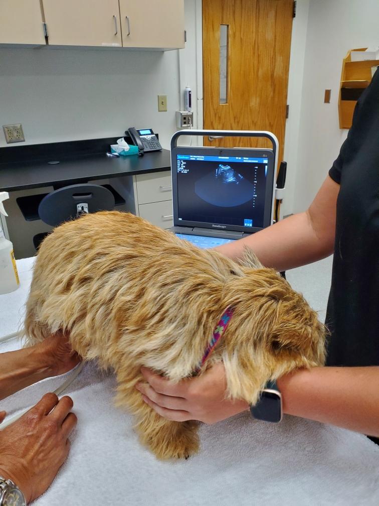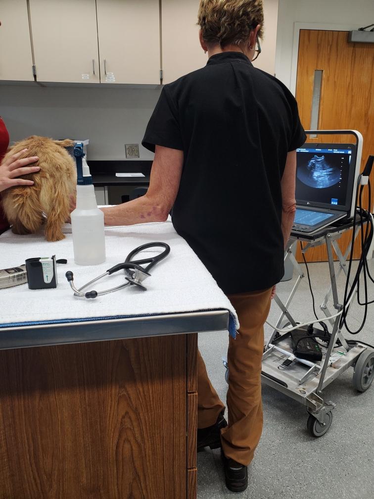 At NC State, Siri was again examined, had an ultrasound - both puppies heartbeats were good - and gave blood for a progesternone test. But again the verdict was "not today" for Siri's c-section.