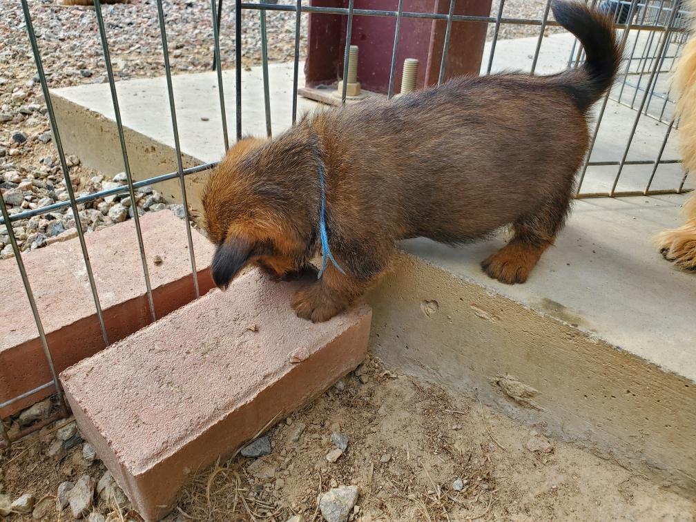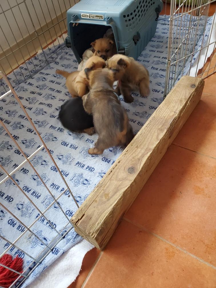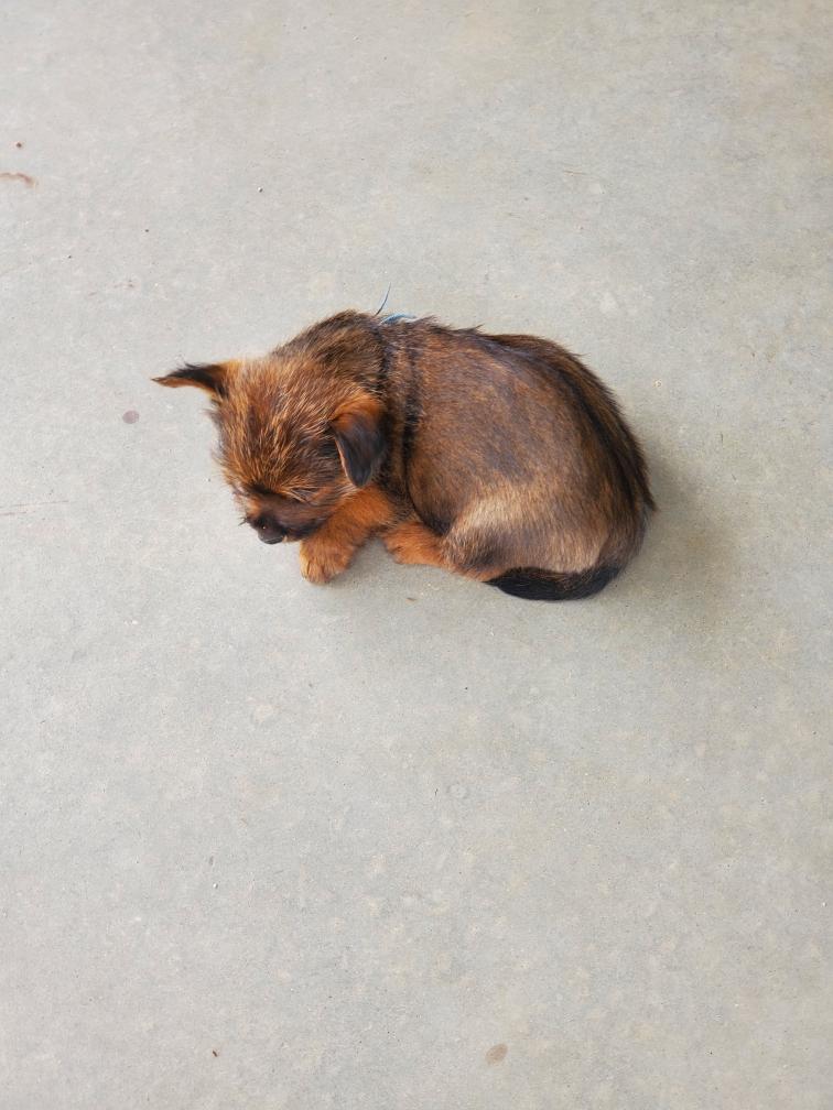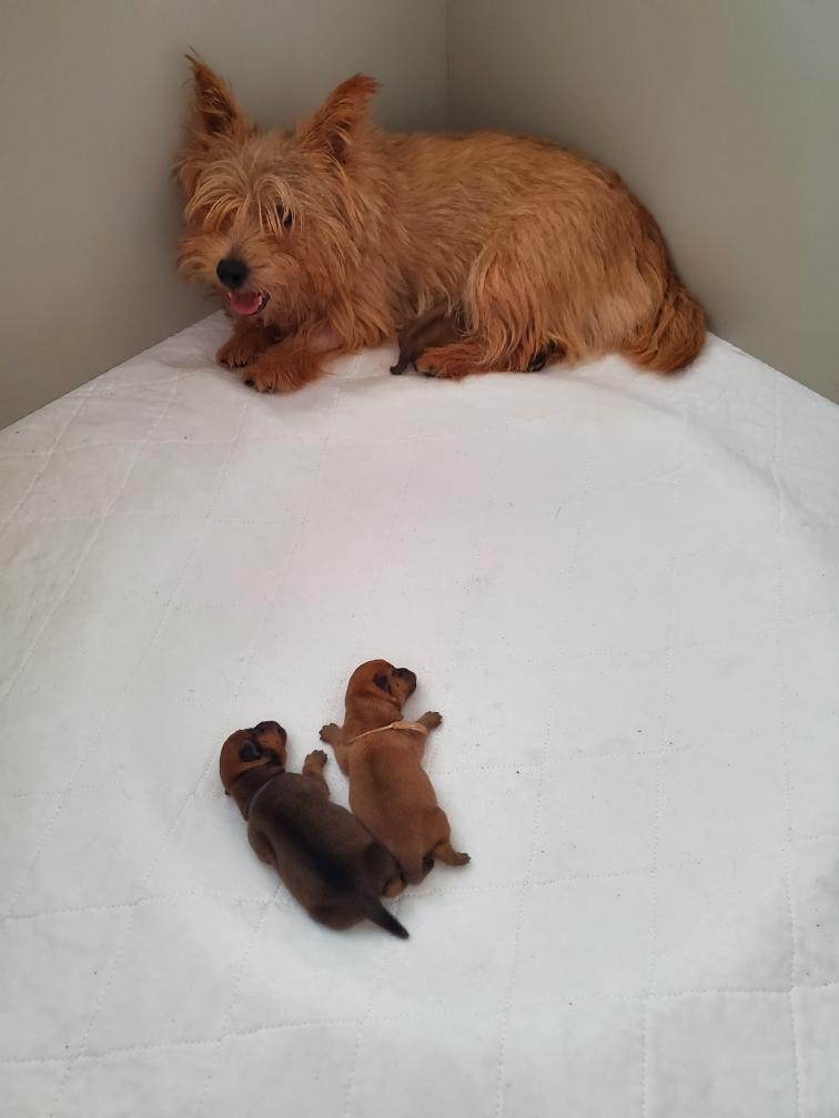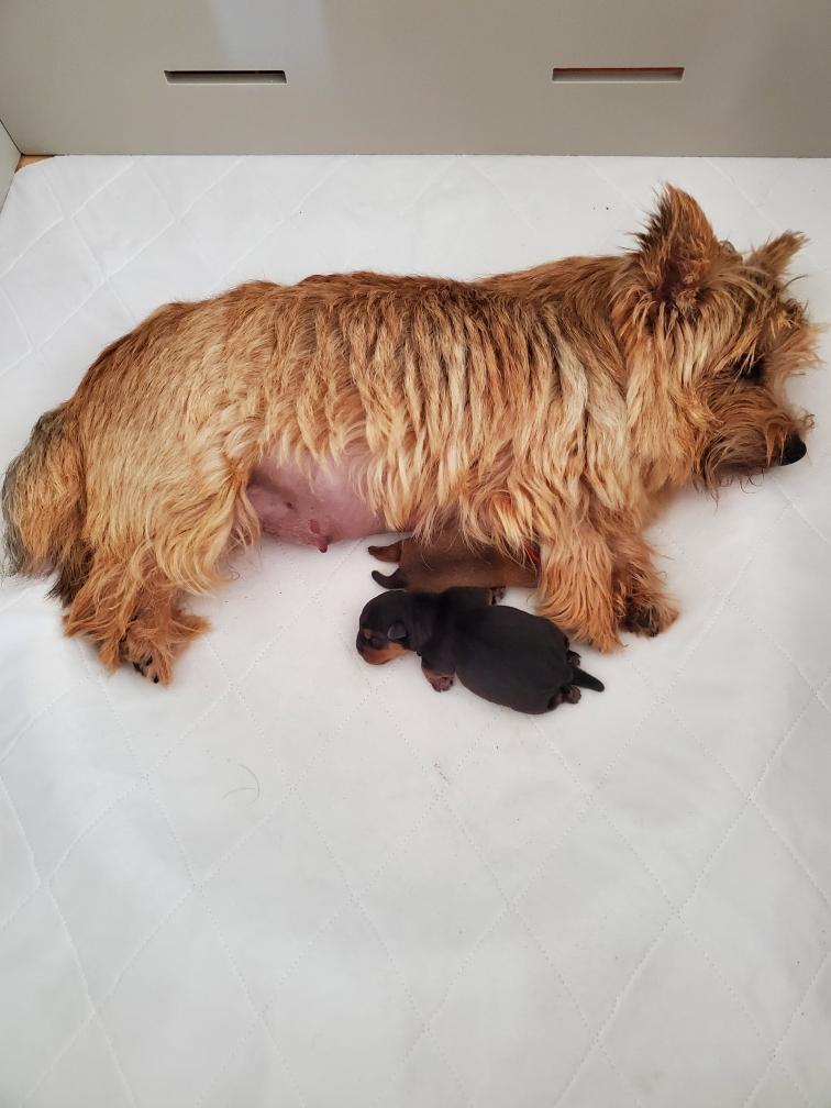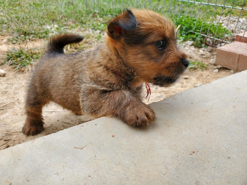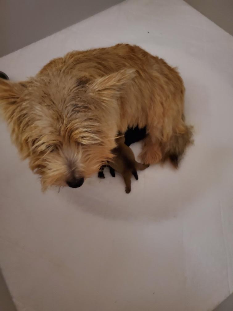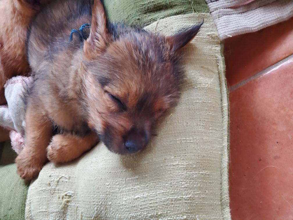 When I was weighing puppies this morning, I noticed that Gwynie's puppy Blue had his mouth open. Later as I was checking on everyone, my heart sank as I saw Blue gasping for air with deep compressions of his chest muscles. Here is a short video in mov format of what I was seeing. I had seen this before in puppies. The signs indicated to me that Blue had "puppy lung development disease" - a fatal condition. The lungs of puppies (and newborn babies) continue to develop after birth. But sometimes things go wrong with this development. The term "puppy lung development disease" is what breeders call this condition. Pathologists can see abnormalities in the lung tissue during an autopsy. It is thought that there is a genetic cause, and we know that it happens in other breeds besides Norwich Terriers. But Norwich Terriers seems to have a higher incidence than other breeds. There was a DNA study of Norwich with puppy lung development disease a couple of years ago (to which I contributed DNA samples), but nothing conclusive seems to have come from the study. In the past I have tried putting an affected puppy in an incubator with an oxygen concentrator, but the treatment had no effect; the puppy died.