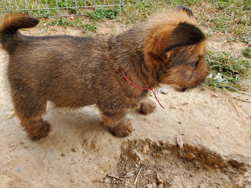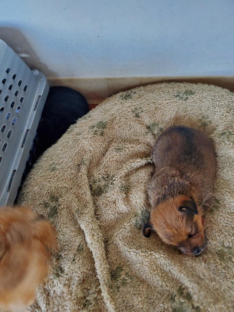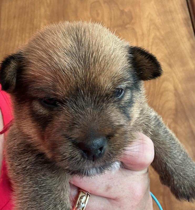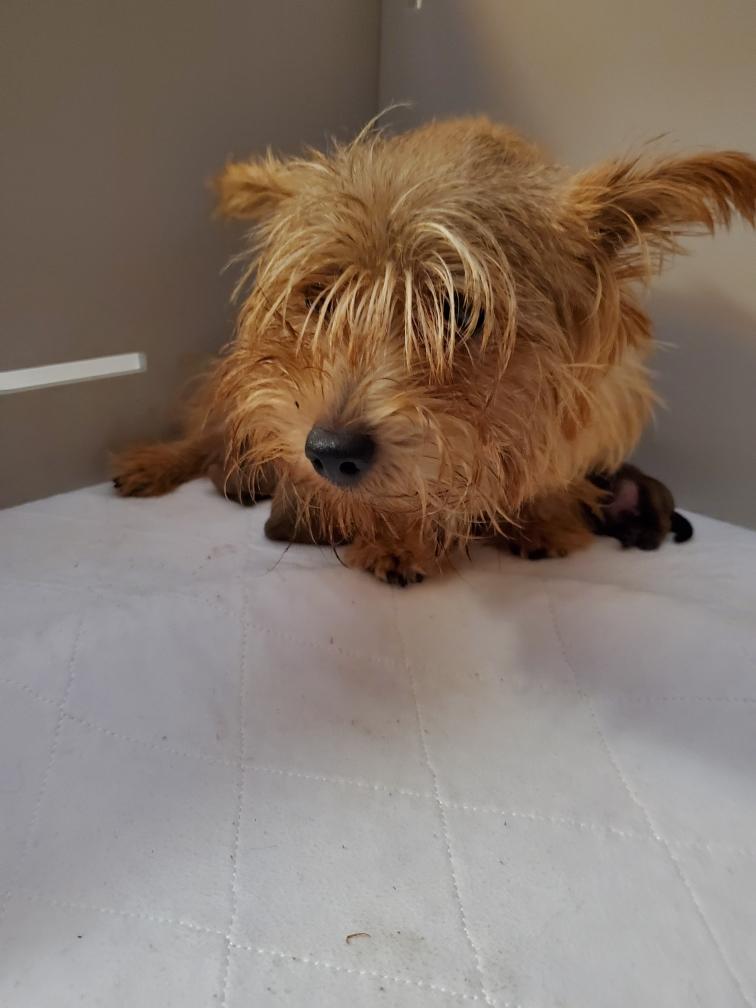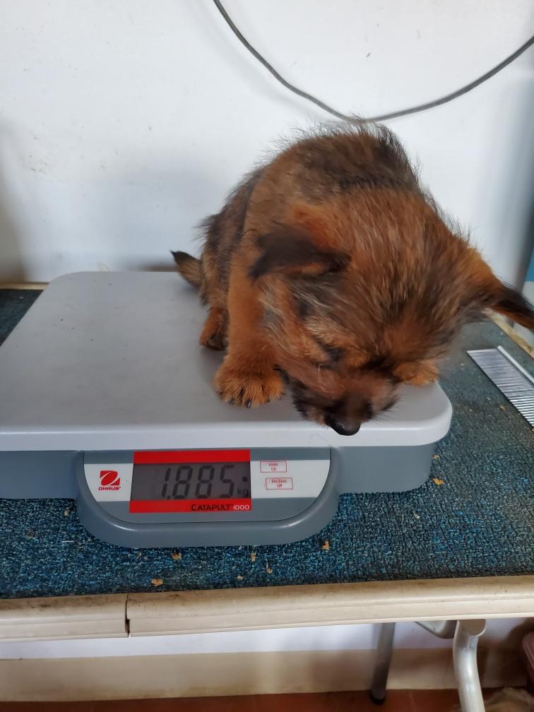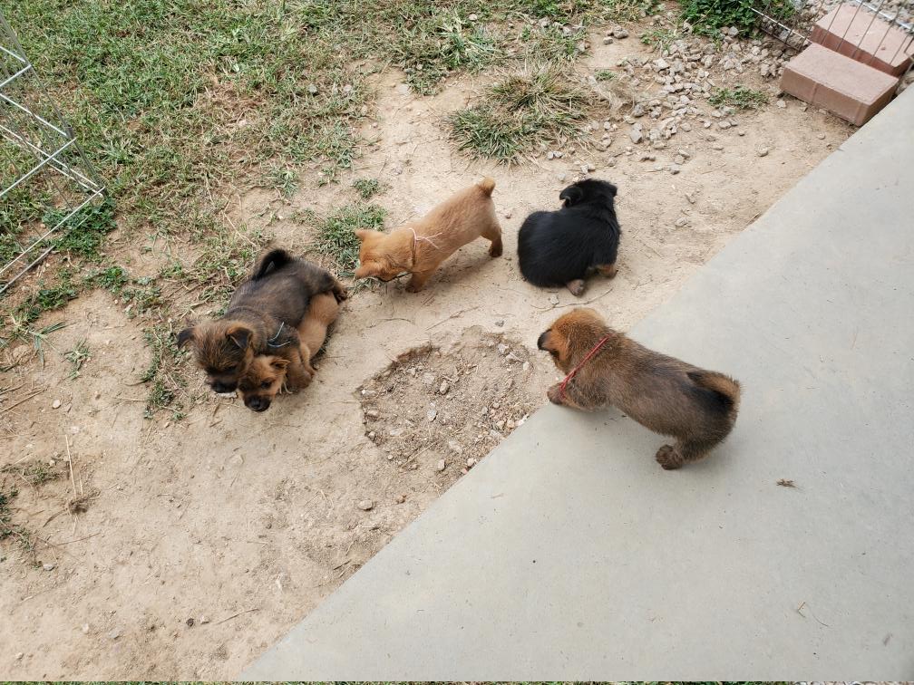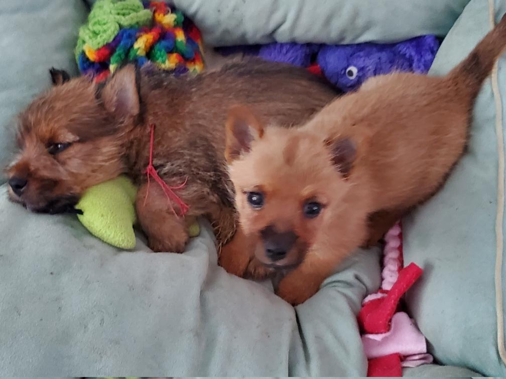 When I was weighing puppies this morning, I noticed that Gwynie's puppy Blue had his mouth open. Later as I was checking on everyone, my heart sank as I saw Blue gasping for air with deep compressions of his chest muscles. Here is a short video in mov format of what I was seeing. I had seen this before in puppies. The signs indicated to me that Blue had "puppy lung development disease" - a fatal condition. The lungs of puppies (and newborn babies) continue to develop after birth. But sometimes things go wrong with this development. The term "puppy lung development disease" is what breeders call this condition. Pathologists can see abnormalities in the lung tissue during an autopsy. It is thought that there is a genetic cause, and we know that it happens in other breeds besides Norwich Terriers. But Norwich Terriers seems to have a higher incidence than other breeds. There was a DNA study of Norwich with puppy lung development disease a couple of years ago (to which I contributed DNA samples), but nothing conclusive seems to have come from the study. In the past I have tried putting an affected puppy in an incubator with an oxygen concentrator, but the treatment had no effect; the puppy died.
