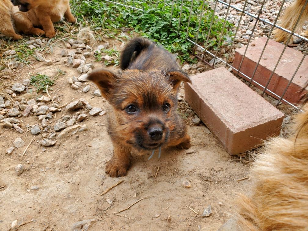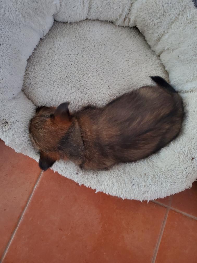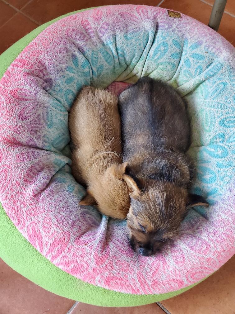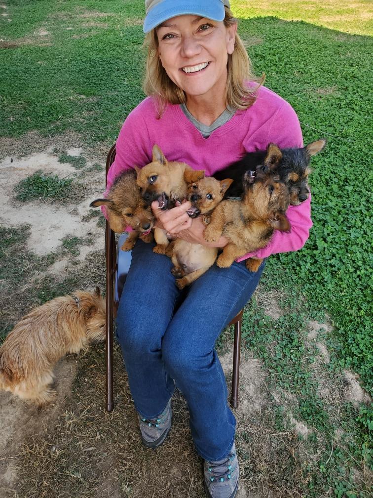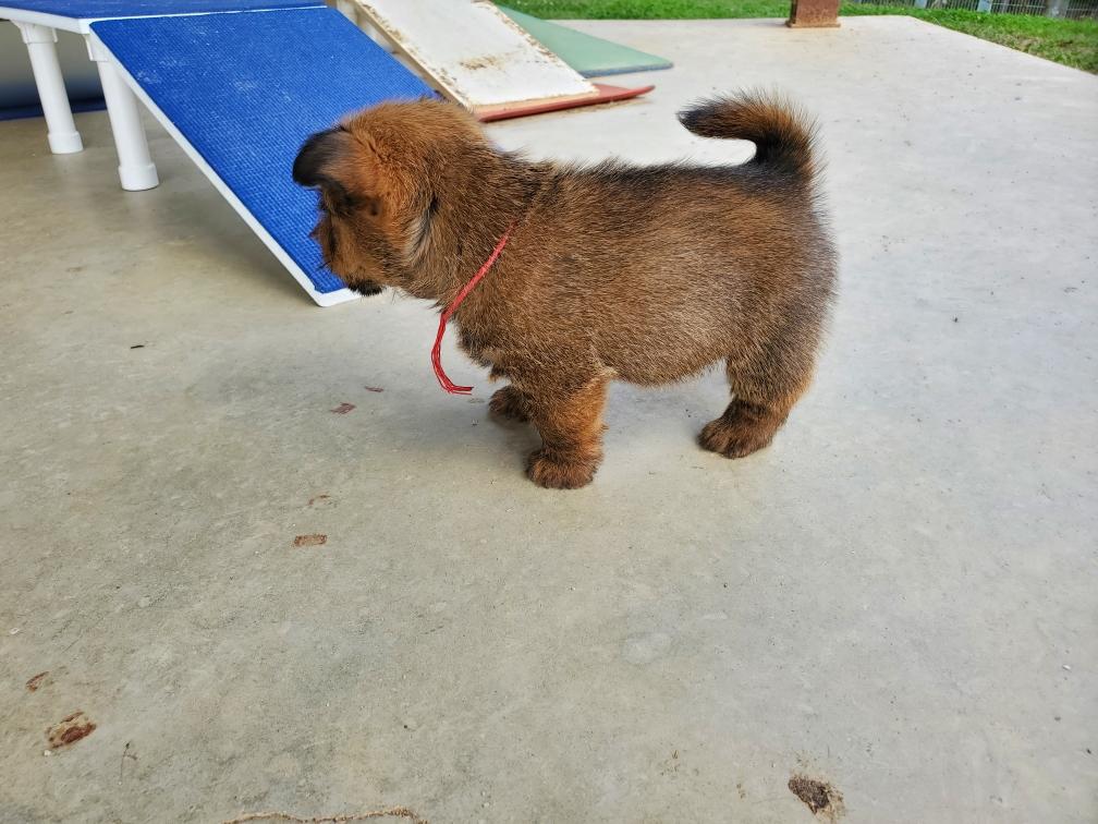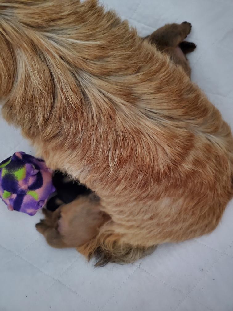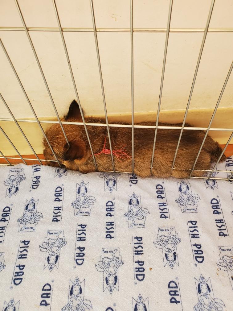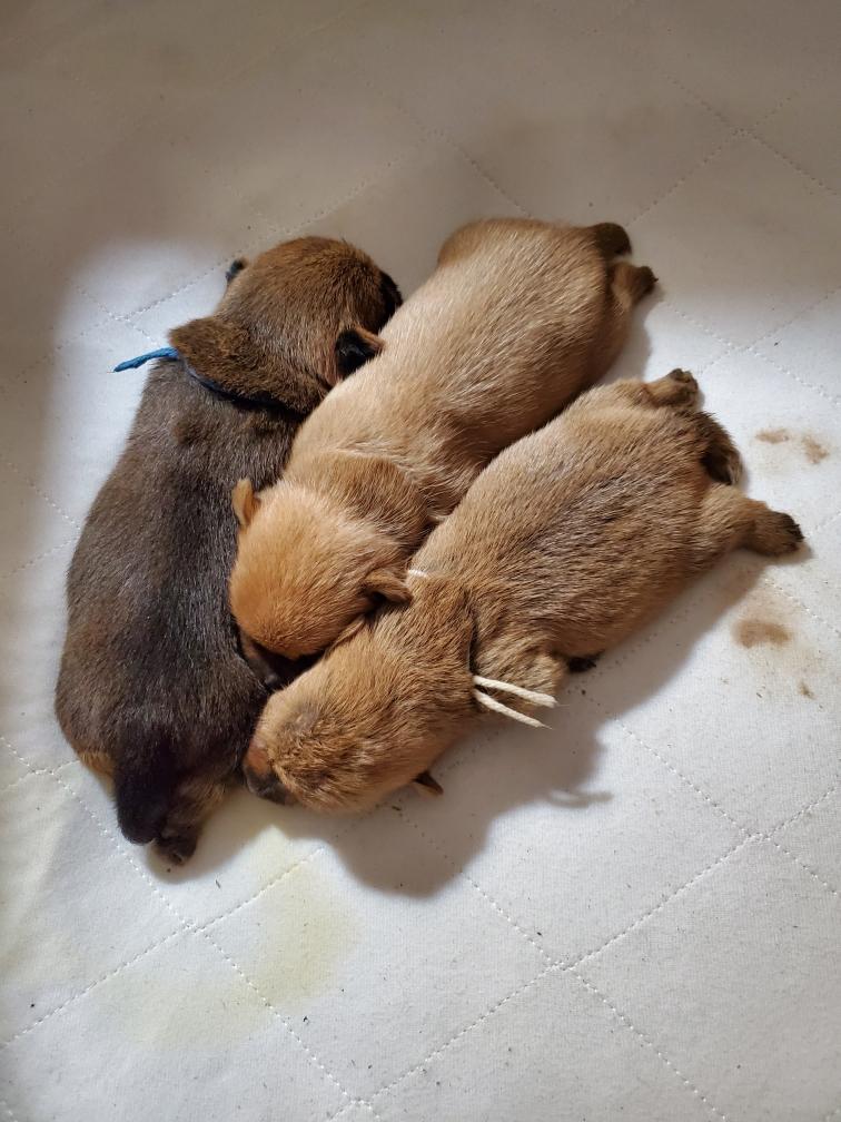 When I was weighing puppies this morning, I noticed that Gwynie's puppy Blue had his mouth open. Later as I was checking on everyone, my heart sank as I saw Blue gasping for air with deep compressions of his chest muscles. Here is a short video in mov format of what I was seeing. I had seen this before in puppies. The signs indicated to me that Blue had "puppy lung development disease" - a fatal condition. The lungs of puppies (and newborn babies) continue to develop after birth. But sometimes things go wrong with this development. The term "puppy lung development disease" is what breeders call this condition. Pathologists can see abnormalities in the lung tissue during an autopsy. It is thought that there is a genetic cause, and we know that it happens in other breeds besides Norwich Terriers. But Norwich Terriers seems to have a higher incidence than other breeds. There was a DNA study of Norwich with puppy lung development disease a couple of years ago (to which I contributed DNA samples), but nothing conclusive seems to have come from the study. In the past I have tried putting an affected puppy in an incubator with an oxygen concentrator, but the treatment had no effect; the puppy died.