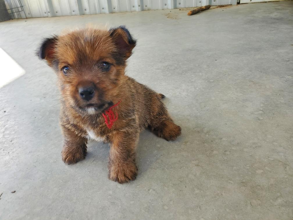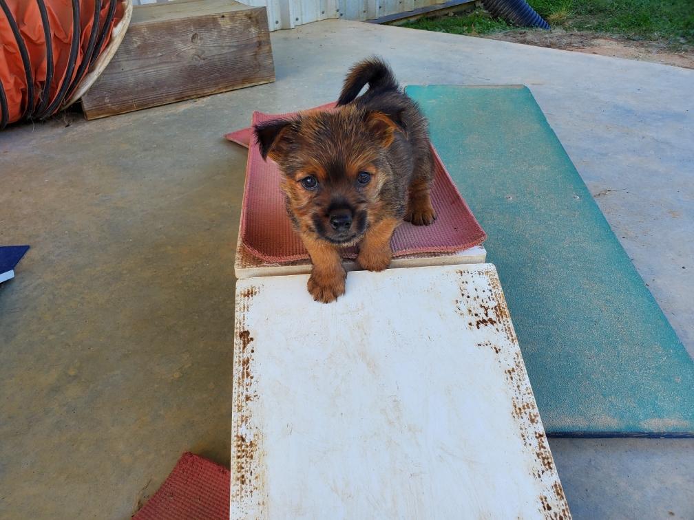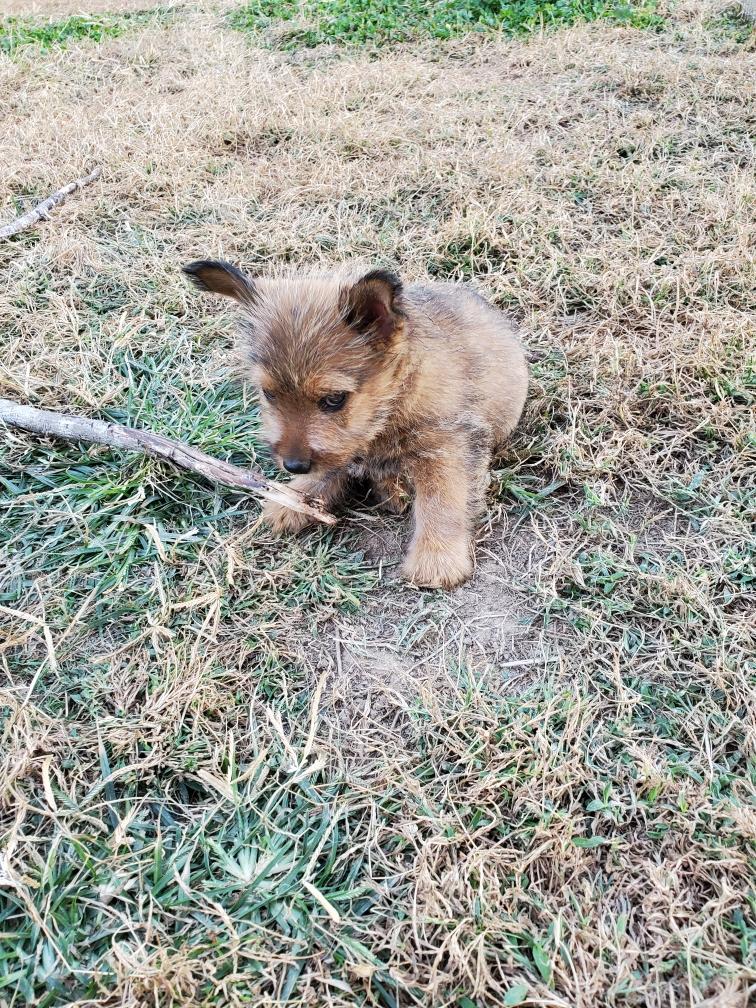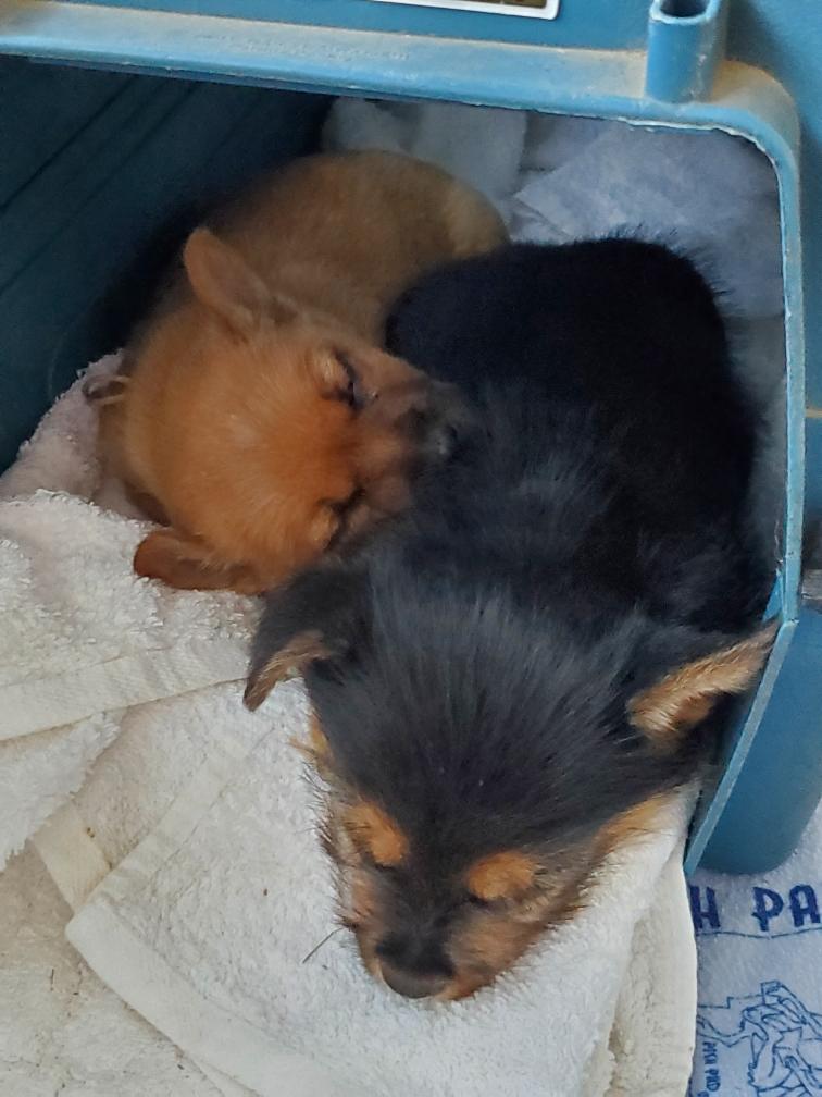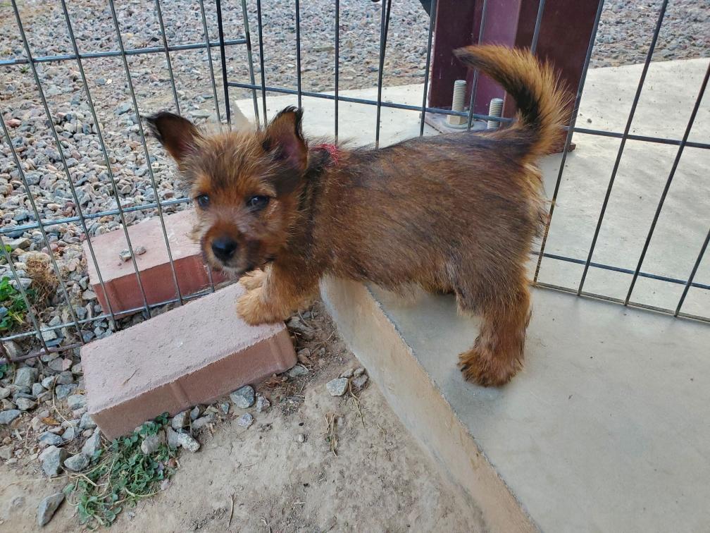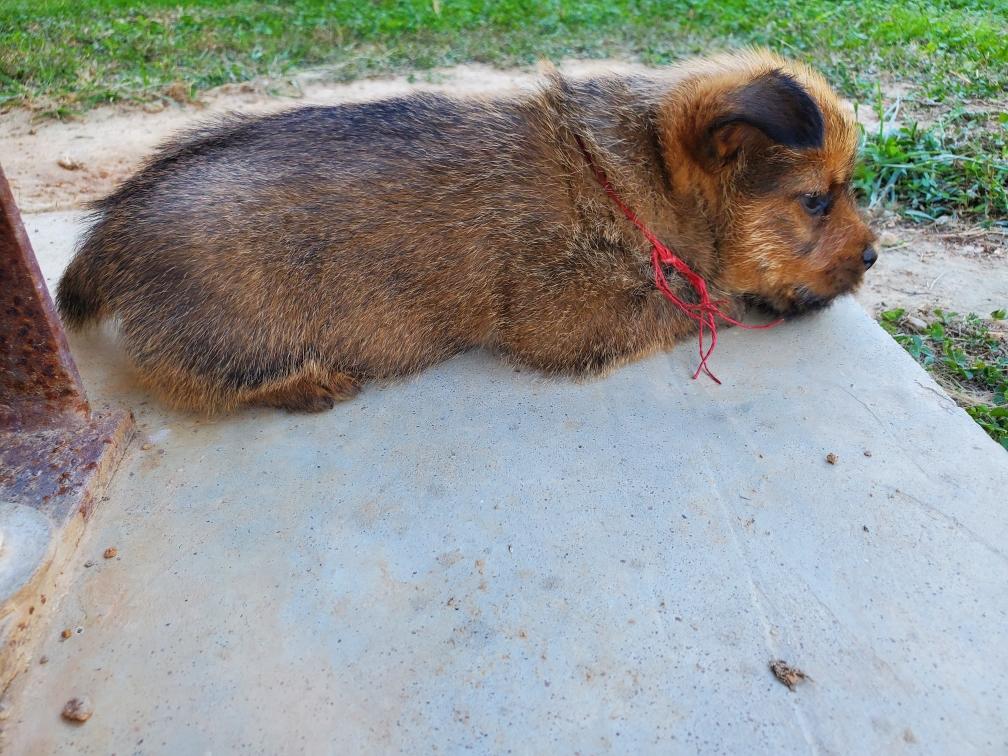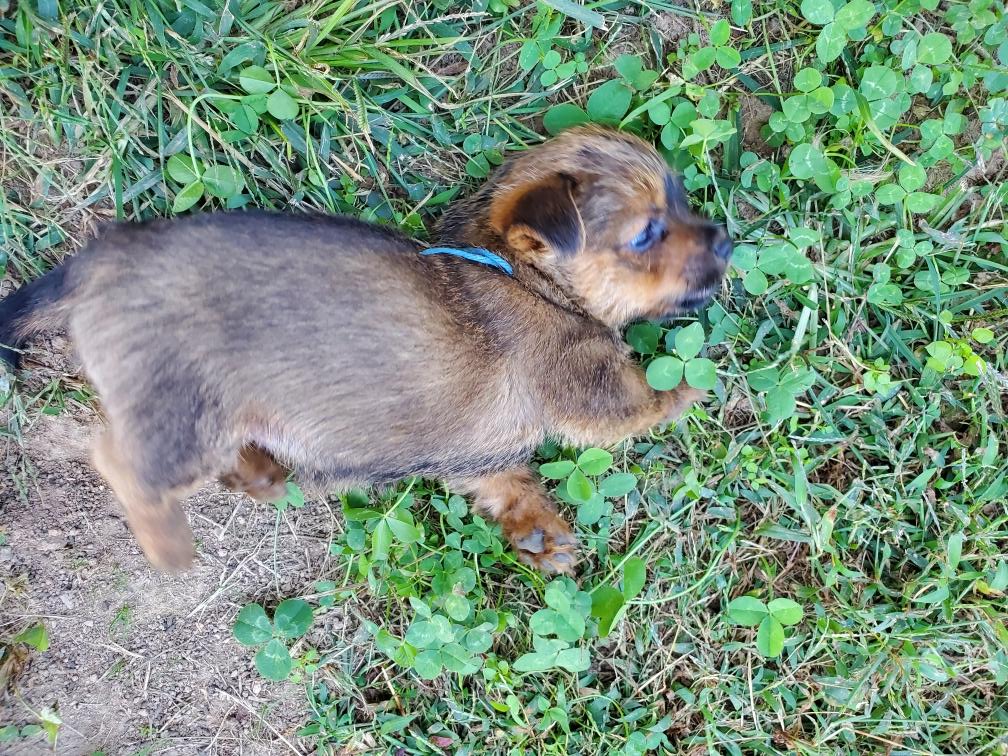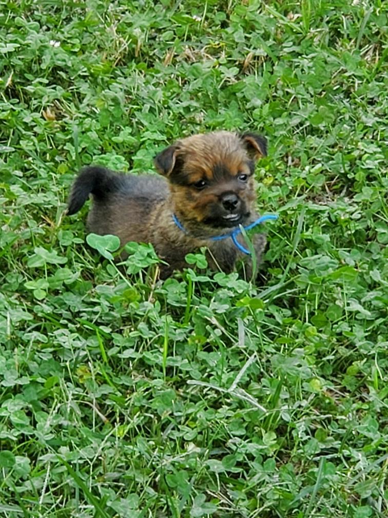 When I was weighing puppies this morning, I noticed that Gwynie's puppy Blue had his mouth open. Later as I was checking on everyone, my heart sank as I saw Blue gasping for air with deep compressions of his chest muscles. Here is a short video in mov format of what I was seeing. I had seen this before in puppies. The signs indicated to me that Blue had "puppy lung development disease" - a fatal condition. The lungs of puppies (and newborn babies) continue to develop after birth. But sometimes things go wrong with this development. The term "puppy lung development disease" is what breeders call this condition. Pathologists can see abnormalities in the lung tissue during an autopsy. It is thought that there is a genetic cause, and we know that it happens in other breeds besides Norwich Terriers. But Norwich Terriers seems to have a higher incidence than other breeds. There was a DNA study of Norwich with puppy lung development disease a couple of years ago (to which I contributed DNA samples), but nothing conclusive seems to have come from the study. In the past I have tried putting an affected puppy in an incubator with an oxygen concentrator, but the treatment had no effect; the puppy died.