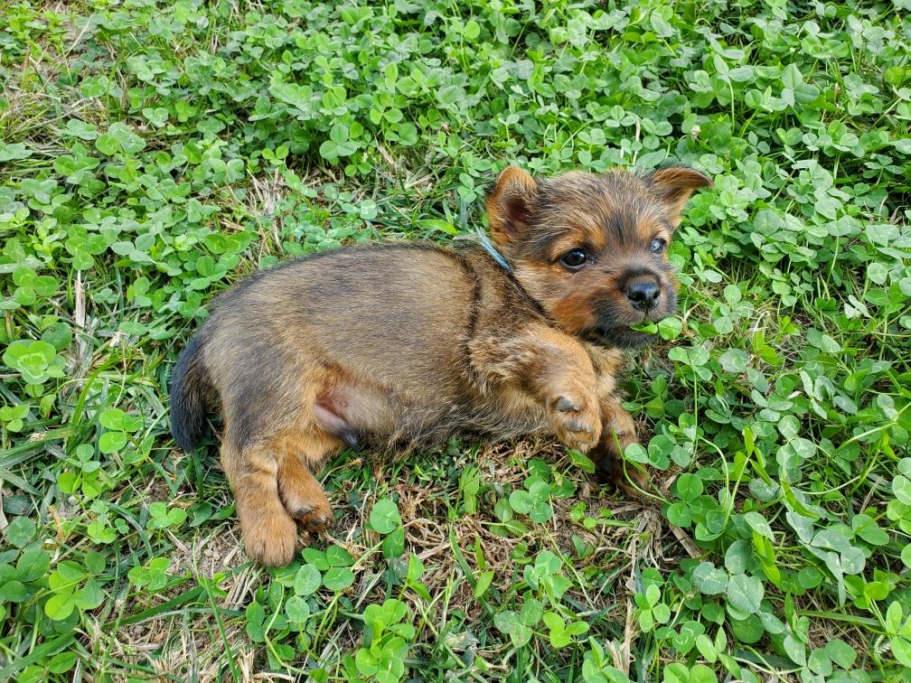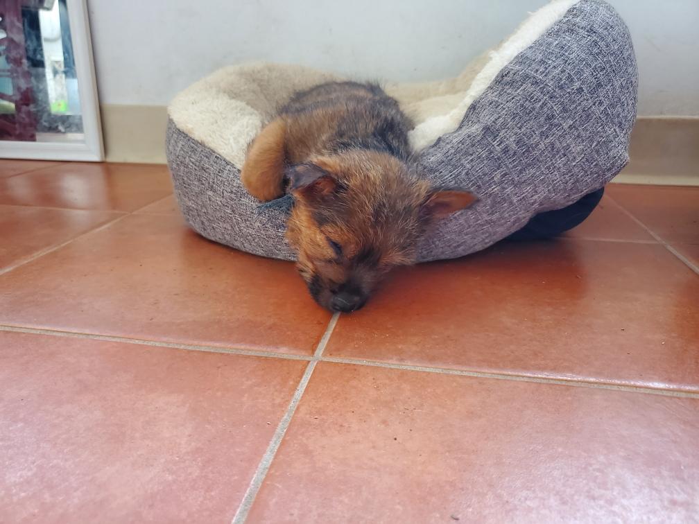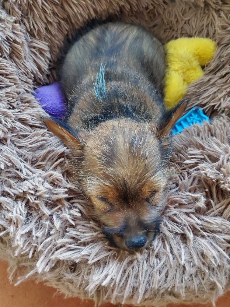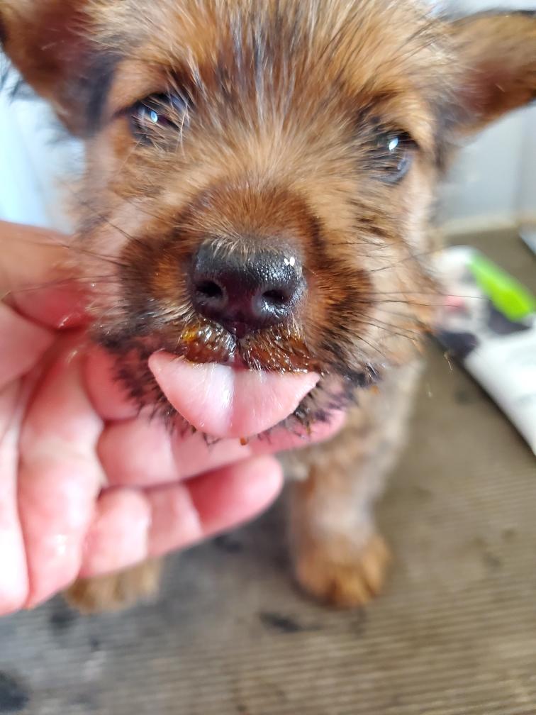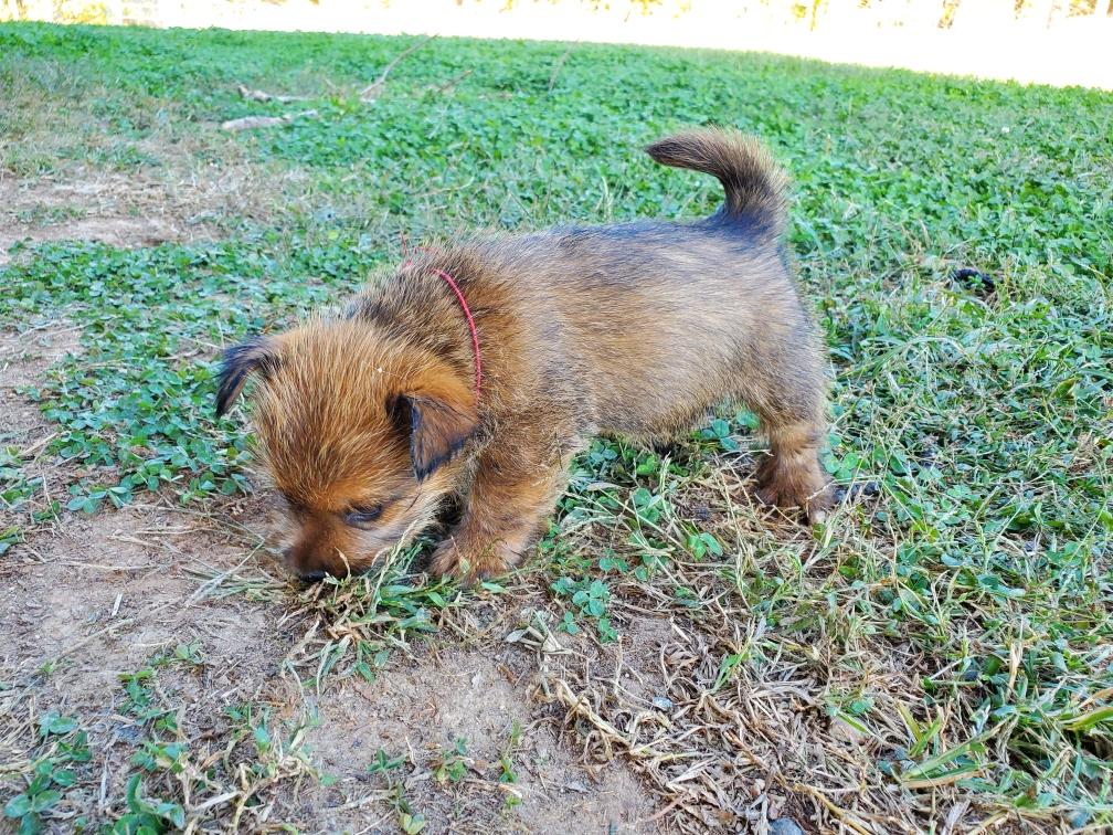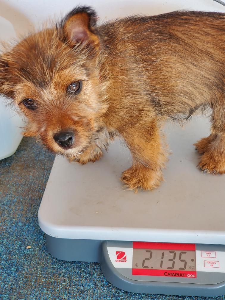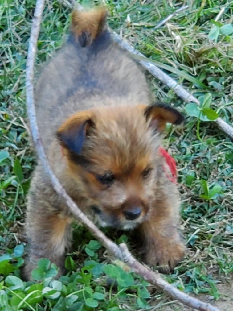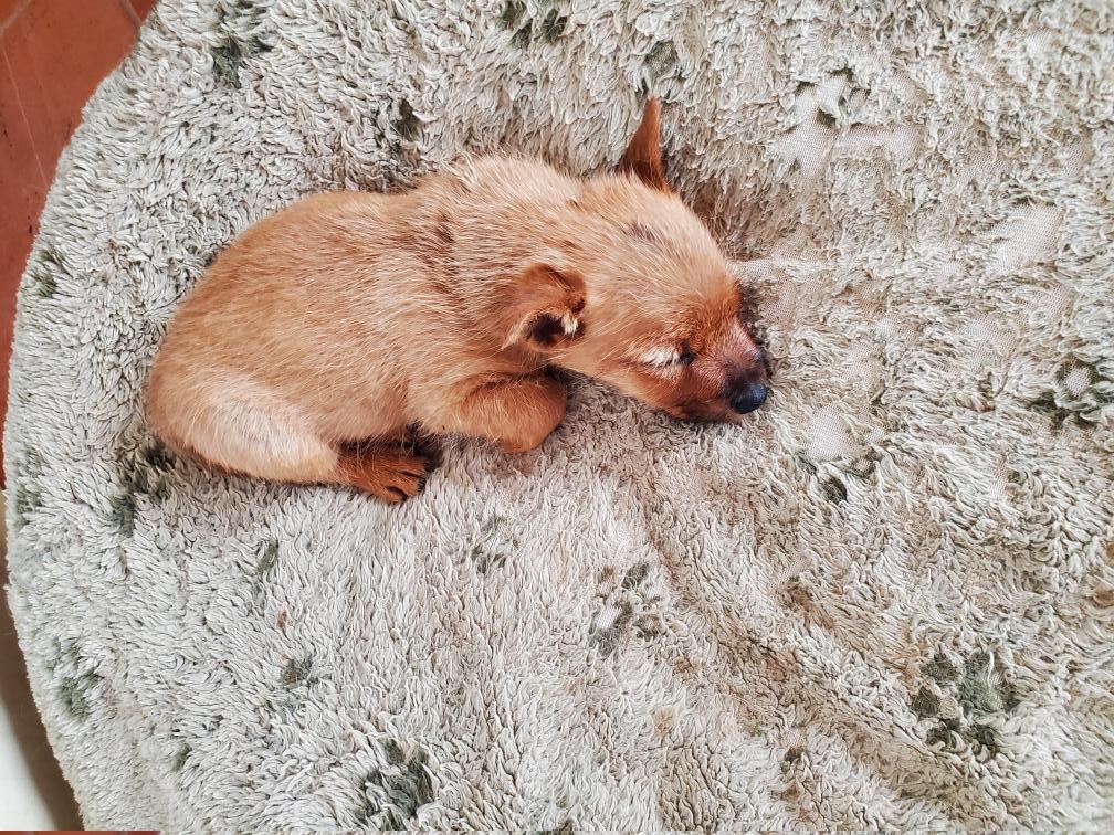 When I was weighing puppies this morning, I noticed that Gwynie's puppy Blue had his mouth open. Later as I was checking on everyone, my heart sank as I saw Blue gasping for air with deep compressions of his chest muscles. Here is a short video in mov format of what I was seeing. I had seen this before in puppies. The signs indicated to me that Blue had "puppy lung development disease" - a fatal condition. The lungs of puppies (and newborn babies) continue to develop after birth. But sometimes things go wrong with this development. The term "puppy lung development disease" is what breeders call this condition. Pathologists can see abnormalities in the lung tissue during an autopsy. It is thought that there is a genetic cause, and we know that it happens in other breeds besides Norwich Terriers. But Norwich Terriers seems to have a higher incidence than other breeds. There was a DNA study of Norwich with puppy lung development disease a couple of years ago (to which I contributed DNA samples), but nothing conclusive seems to have come from the study. In the past I have tried putting an affected puppy in an incubator with an oxygen concentrator, but the treatment had no effect; the puppy died.