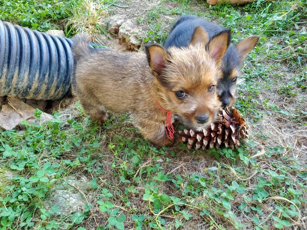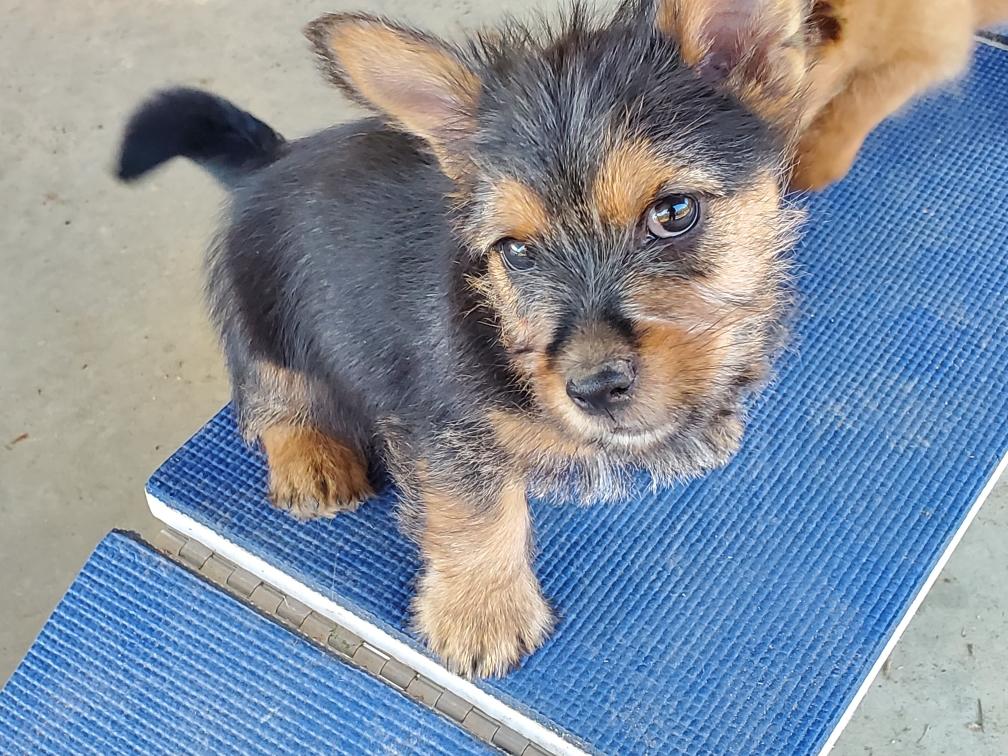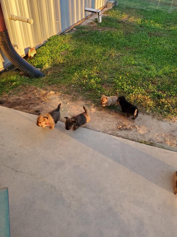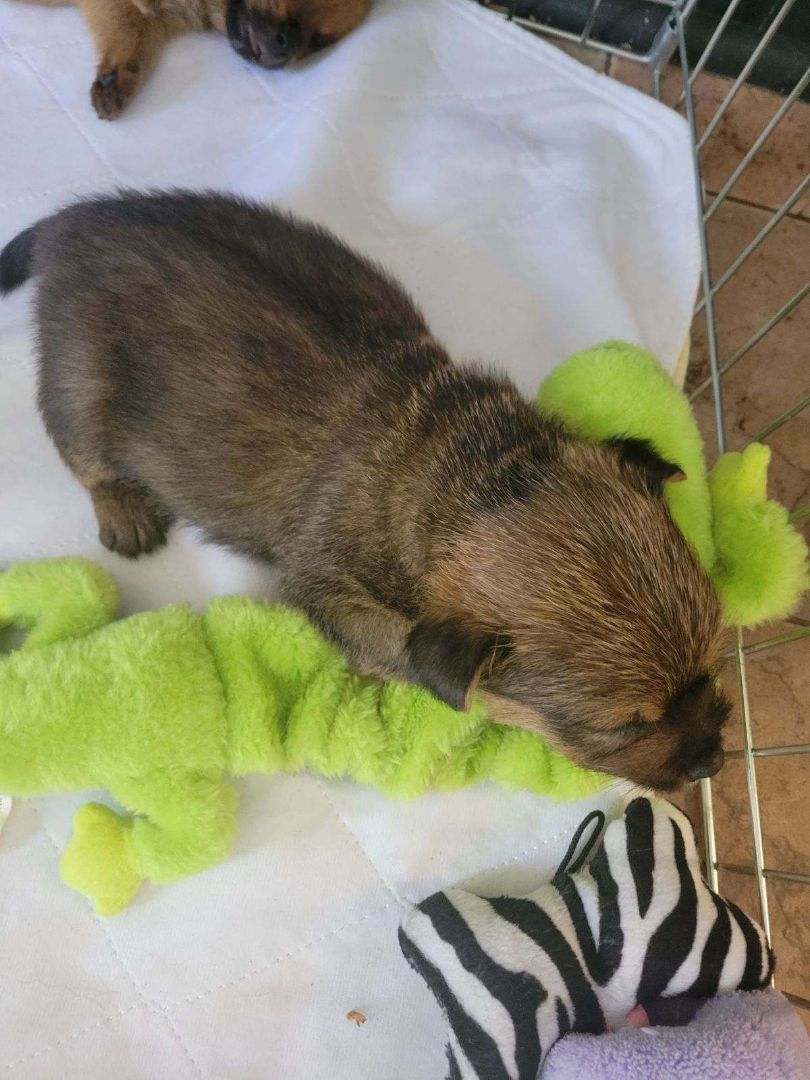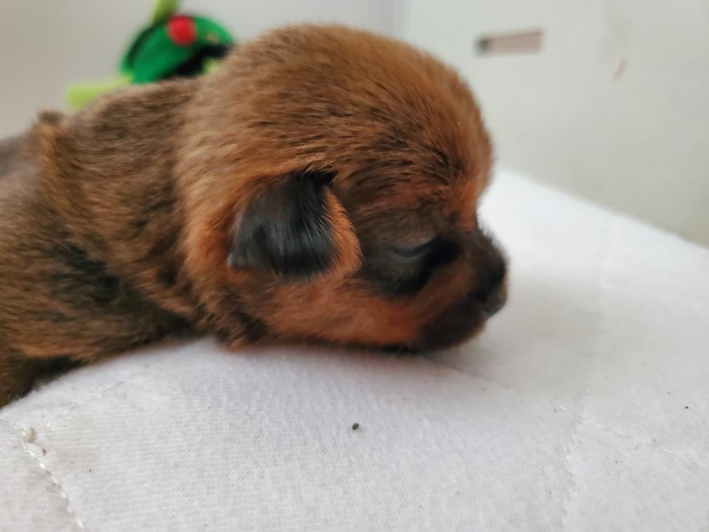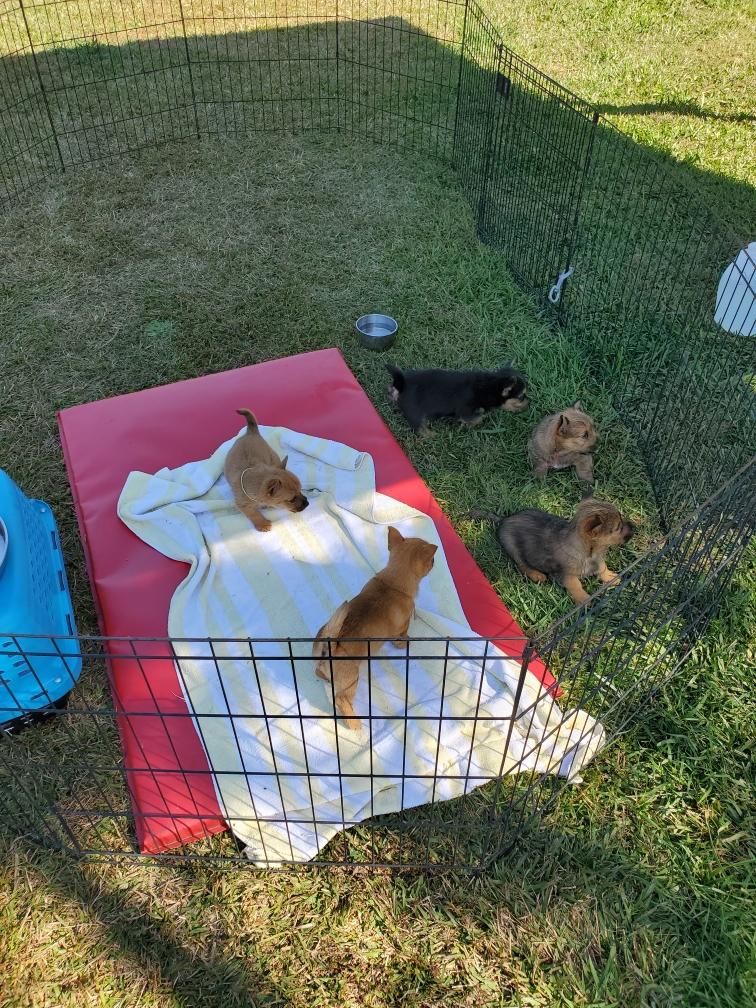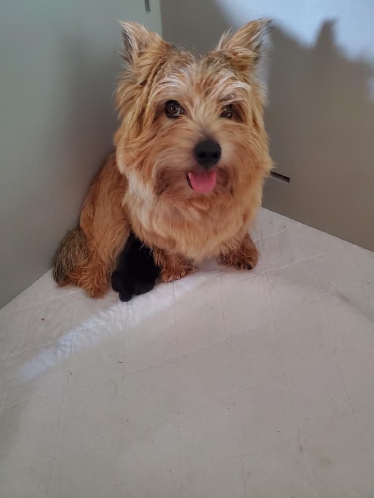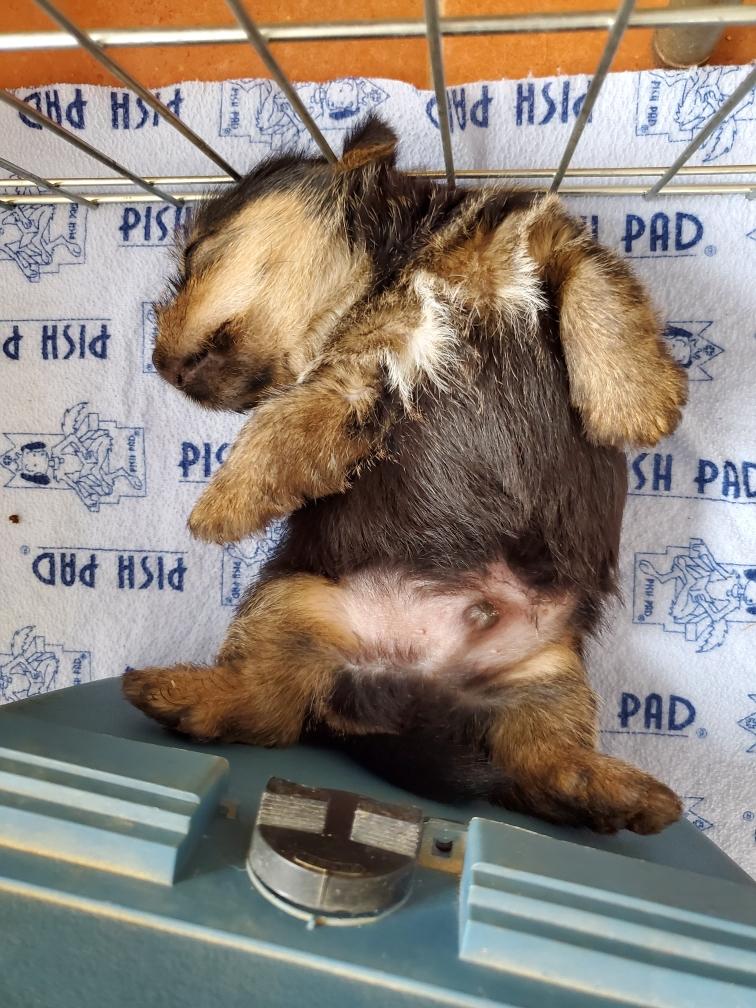 When I was weighing puppies this morning, I noticed that Gwynie's puppy Blue had his mouth open. Later as I was checking on everyone, my heart sank as I saw Blue gasping for air with deep compressions of his chest muscles. Here is a short video in mov format of what I was seeing. I had seen this before in puppies. The signs indicated to me that Blue had "puppy lung development disease" - a fatal condition. The lungs of puppies (and newborn babies) continue to develop after birth. But sometimes things go wrong with this development. The term "puppy lung development disease" is what breeders call this condition. Pathologists can see abnormalities in the lung tissue during an autopsy. It is thought that there is a genetic cause, and we know that it happens in other breeds besides Norwich Terriers. But Norwich Terriers seems to have a higher incidence than other breeds. There was a DNA study of Norwich with puppy lung development disease a couple of years ago (to which I contributed DNA samples), but nothing conclusive seems to have come from the study. In the past I have tried putting an affected puppy in an incubator with an oxygen concentrator, but the treatment had no effect; the puppy died.