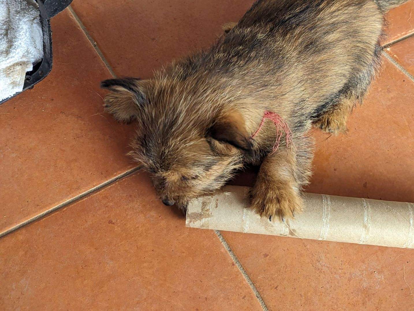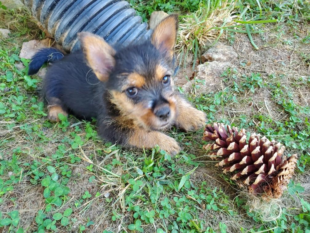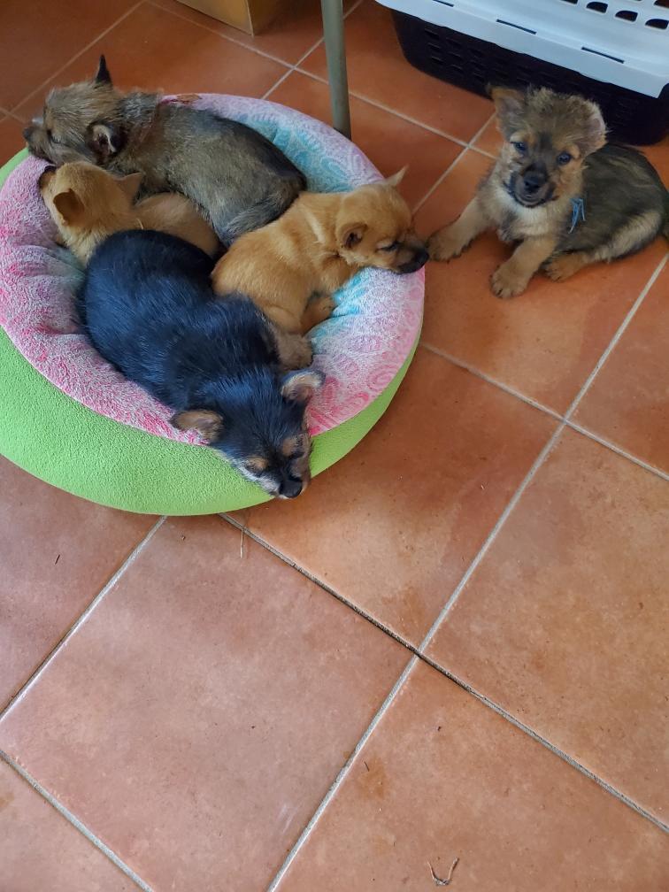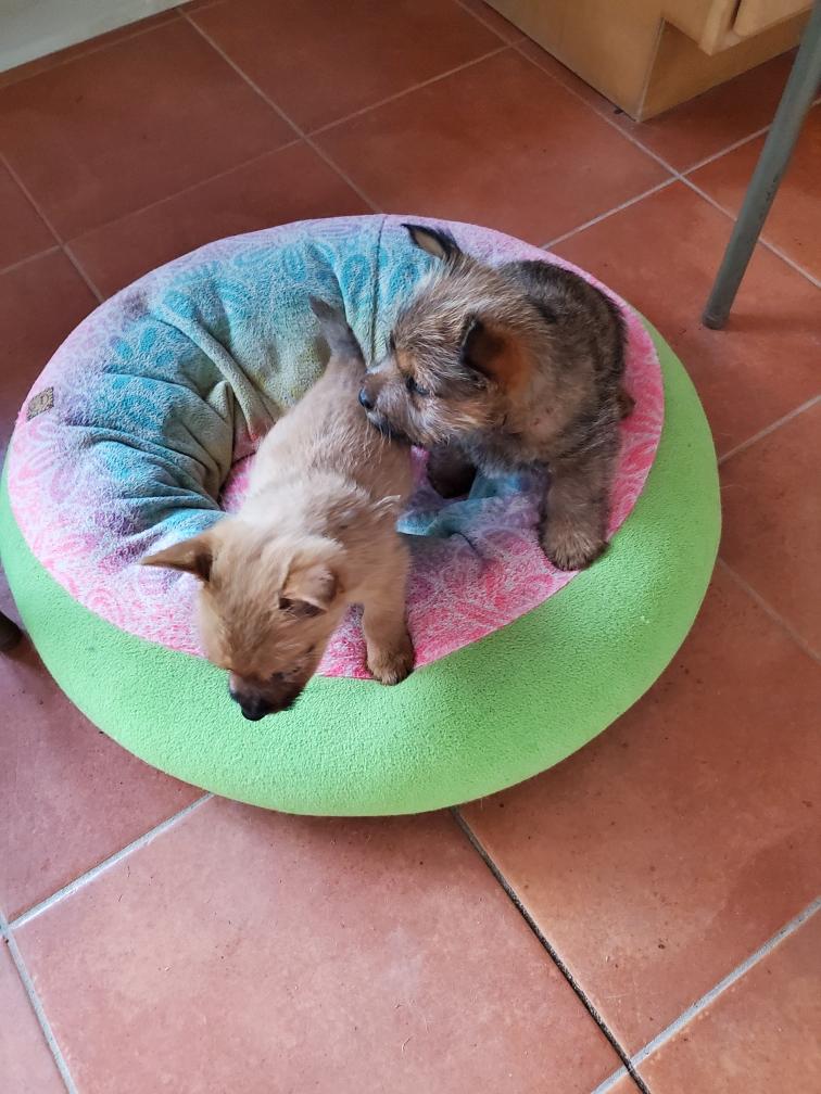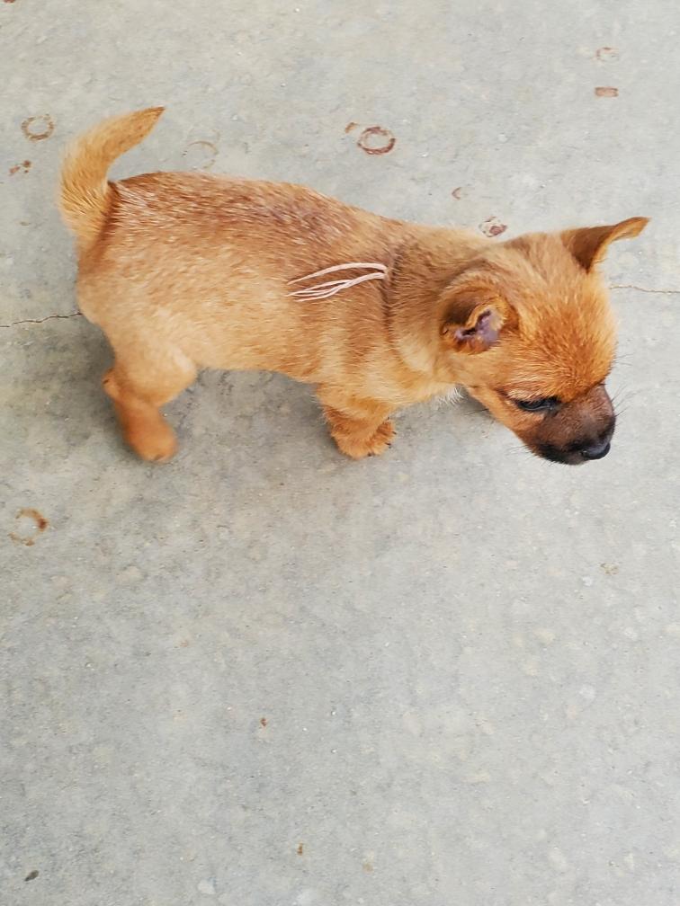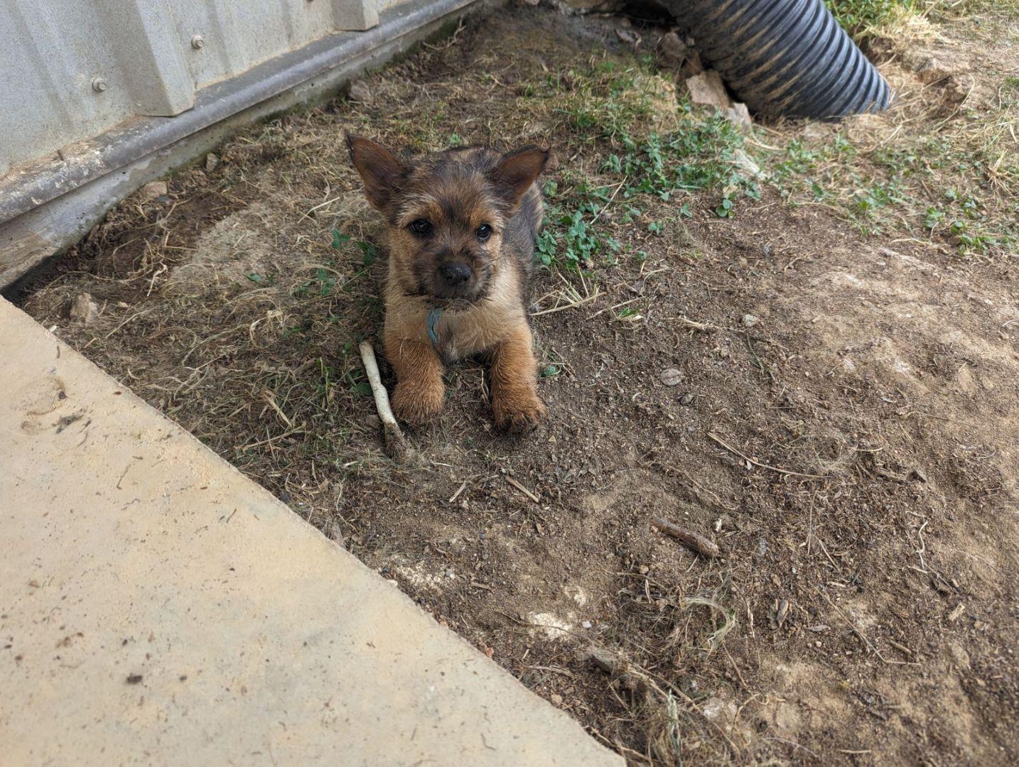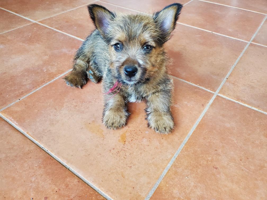 When I was weighing puppies this morning, I noticed that Gwynie's puppy Blue had his mouth open. Later as I was checking on everyone, my heart sank as I saw Blue gasping for air with deep compressions of his chest muscles. Here is a short video in mov format of what I was seeing. I had seen this before in puppies. The signs indicated to me that Blue had "puppy lung development disease" - a fatal condition. The lungs of puppies (and newborn babies) continue to develop after birth. But sometimes things go wrong with this development. The term "puppy lung development disease" is what breeders call this condition. Pathologists can see abnormalities in the lung tissue during an autopsy. It is thought that there is a genetic cause, and we know that it happens in other breeds besides Norwich Terriers. But Norwich Terriers seems to have a higher incidence than other breeds. There was a DNA study of Norwich with puppy lung development disease a couple of years ago (to which I contributed DNA samples), but nothing conclusive seems to have come from the study. In the past I have tried putting an affected puppy in an incubator with an oxygen concentrator, but the treatment had no effect; the puppy died.