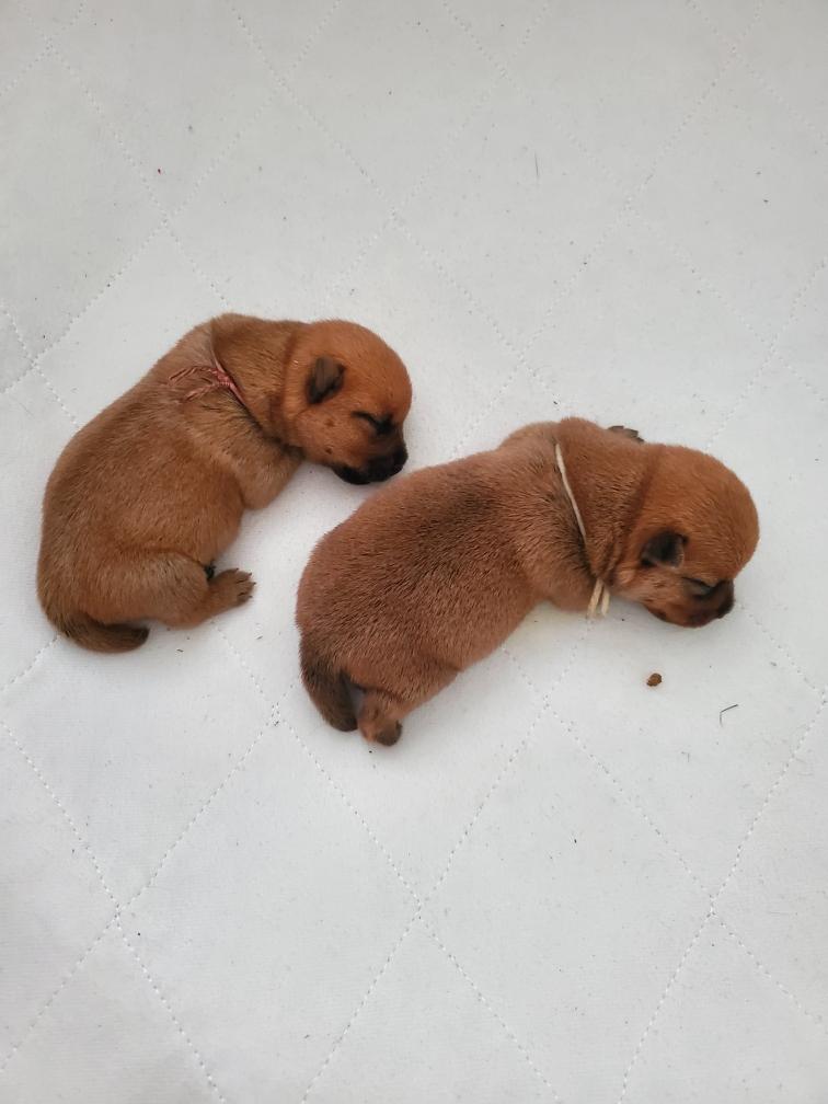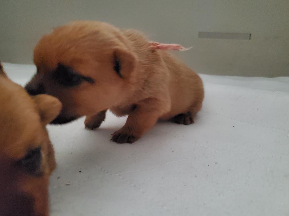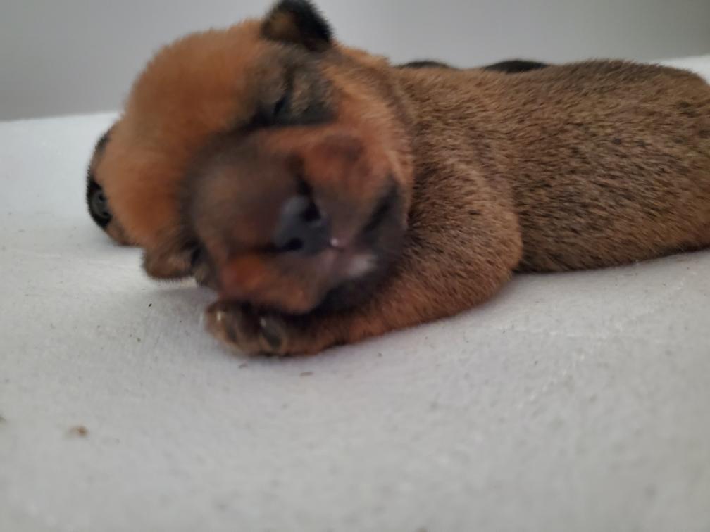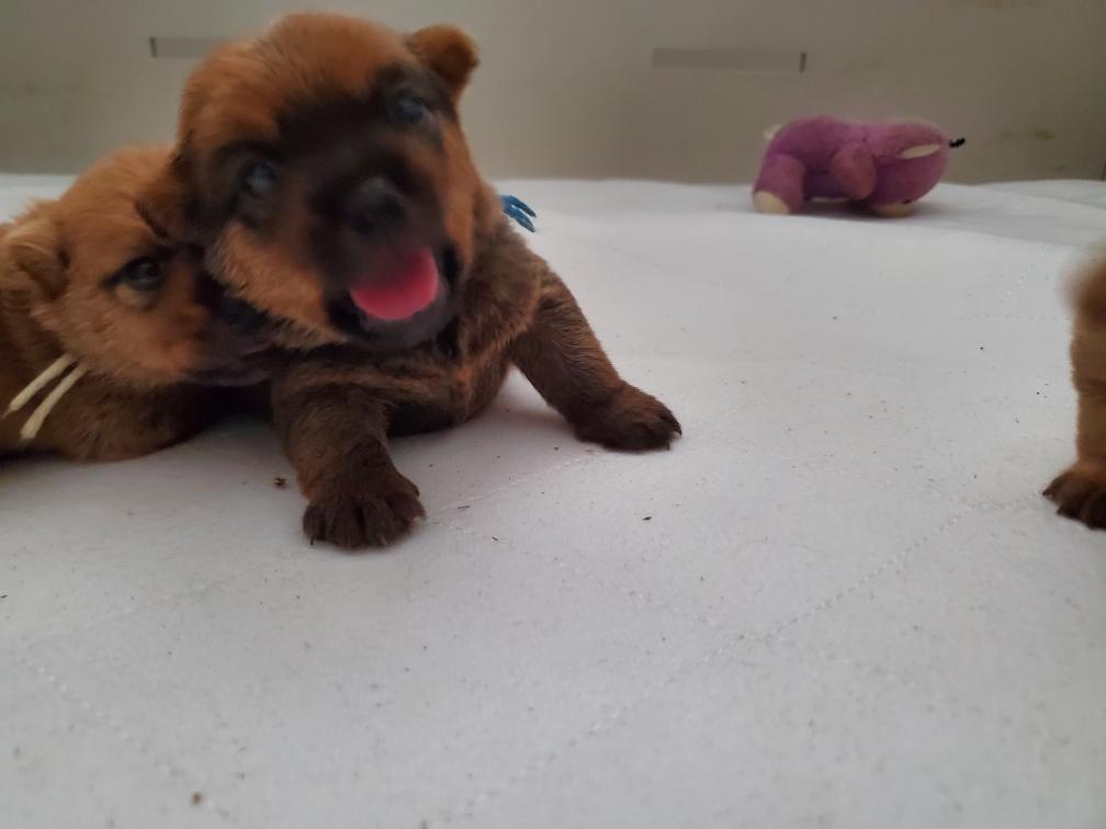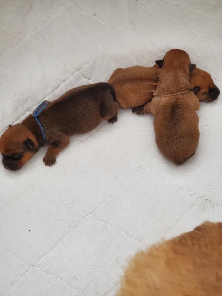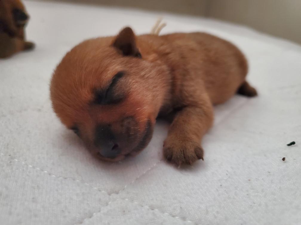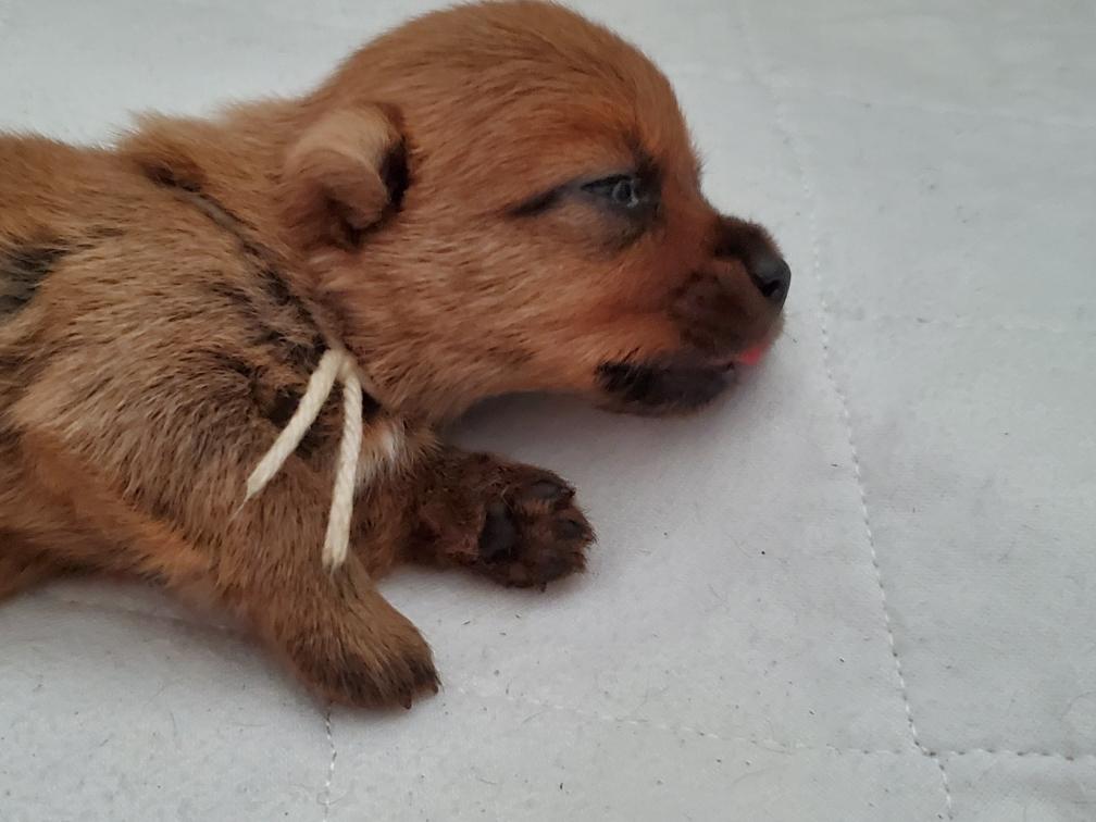 Almost always I see Siri's puppies tucked up underneath Siri. Gwynie did the same thing with her puppies when they were first born. I finally was able to get a photo of Red showing off his collar.
