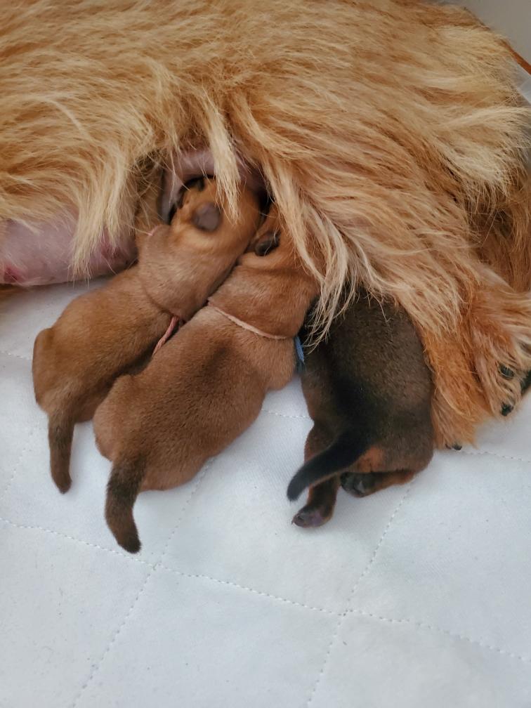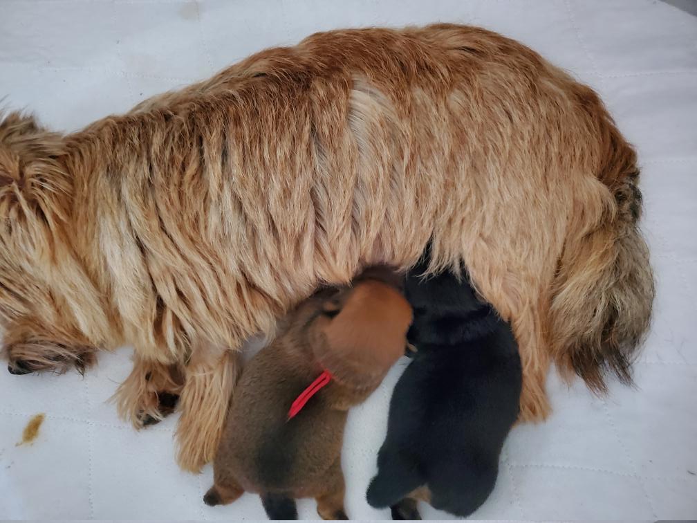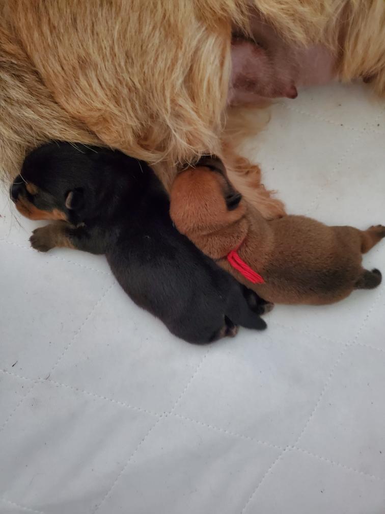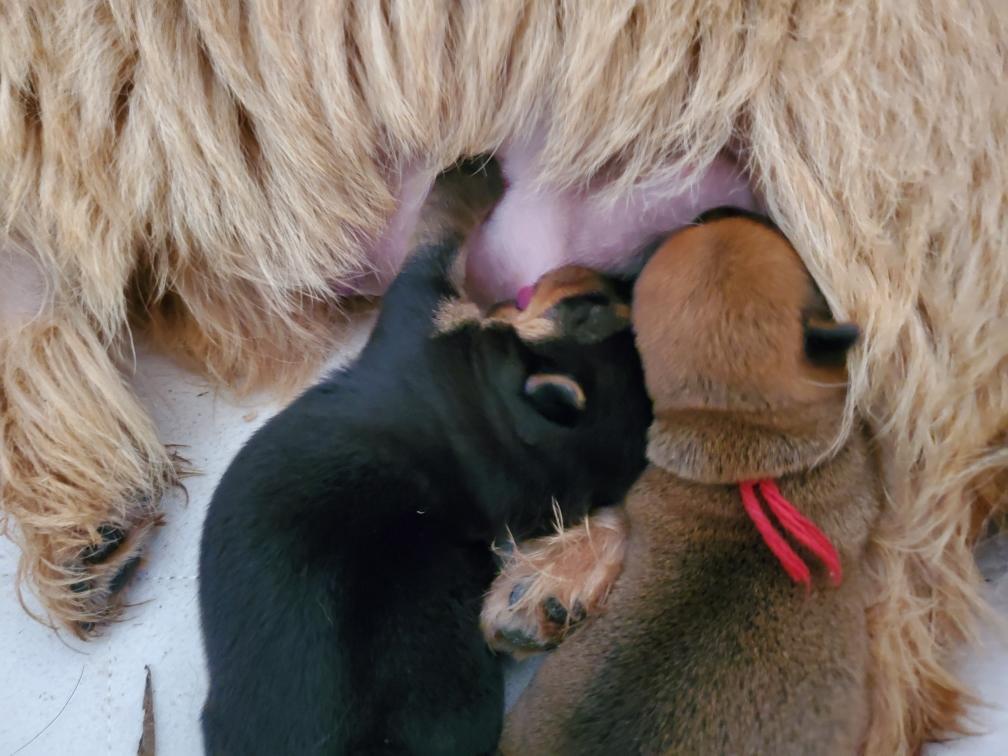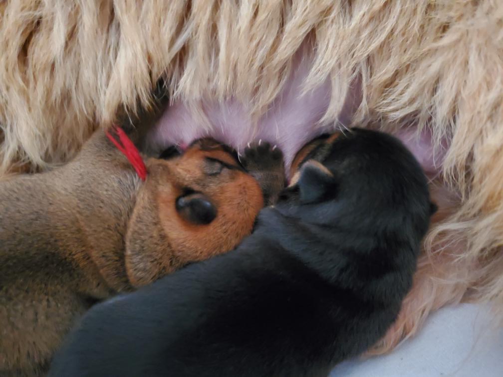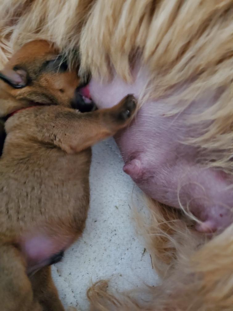 Red and Black nursing. Notice Black's nails which will soon darken.