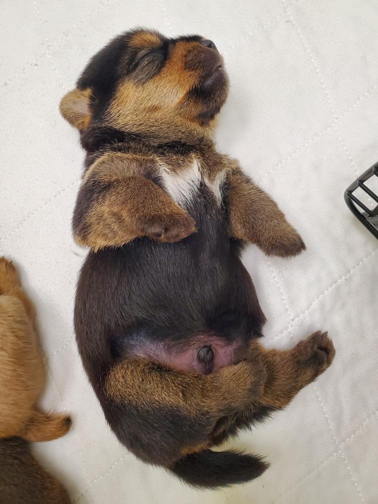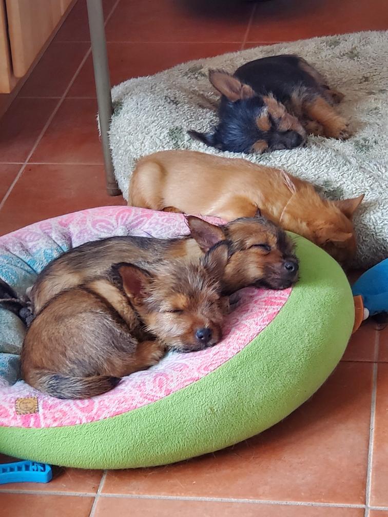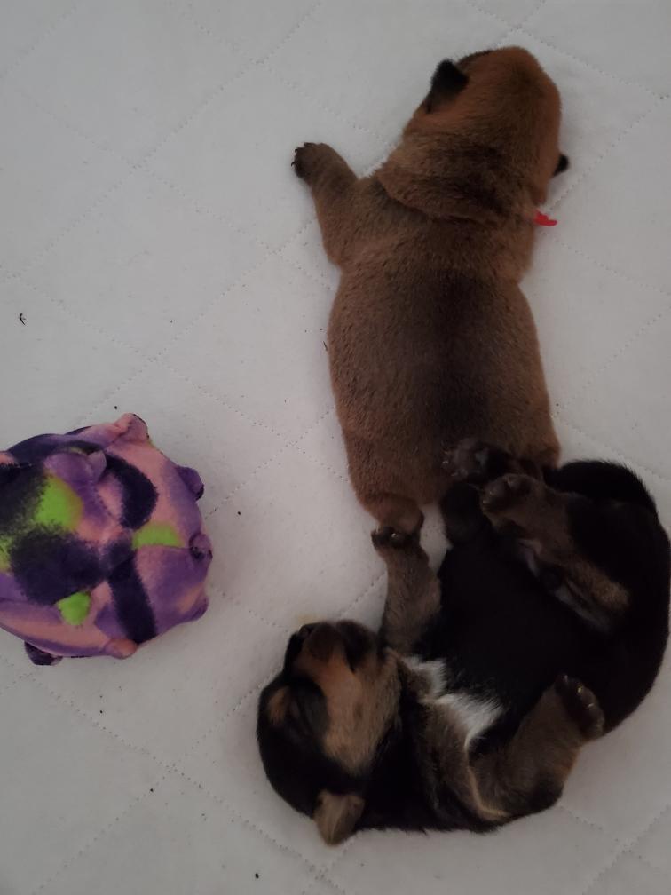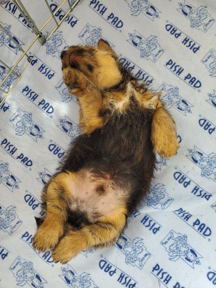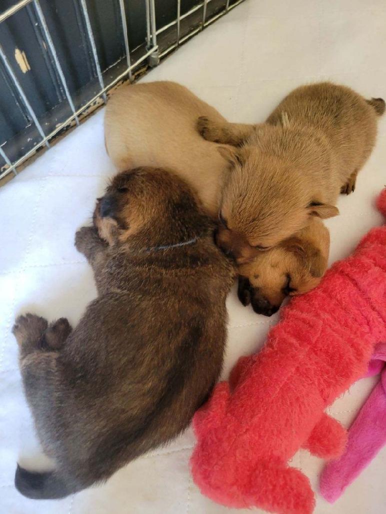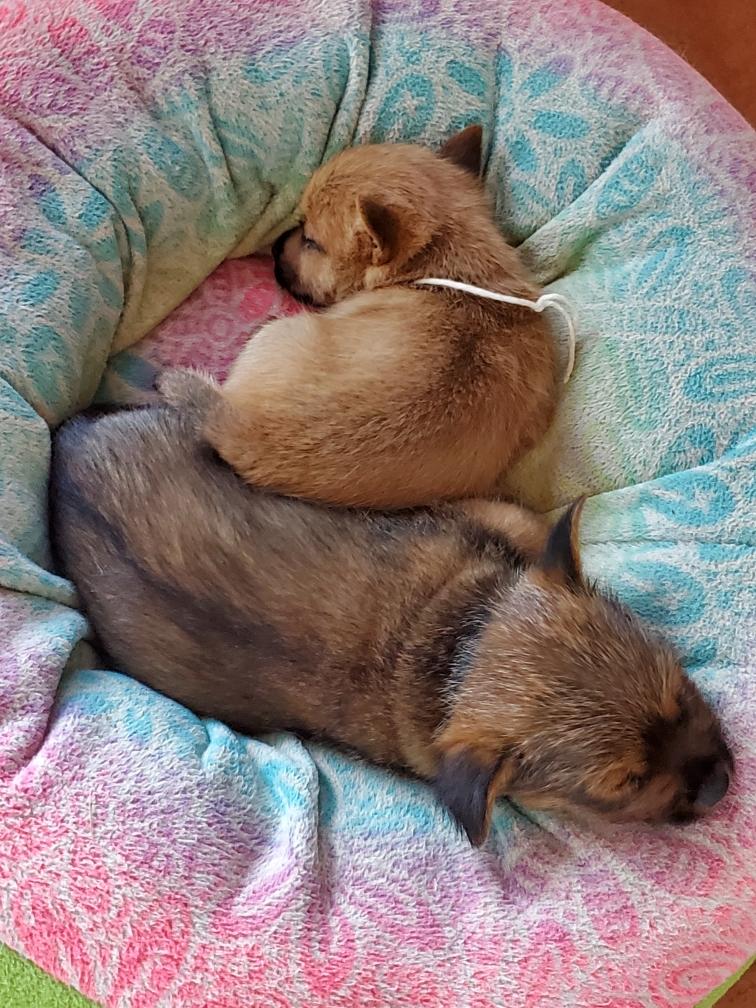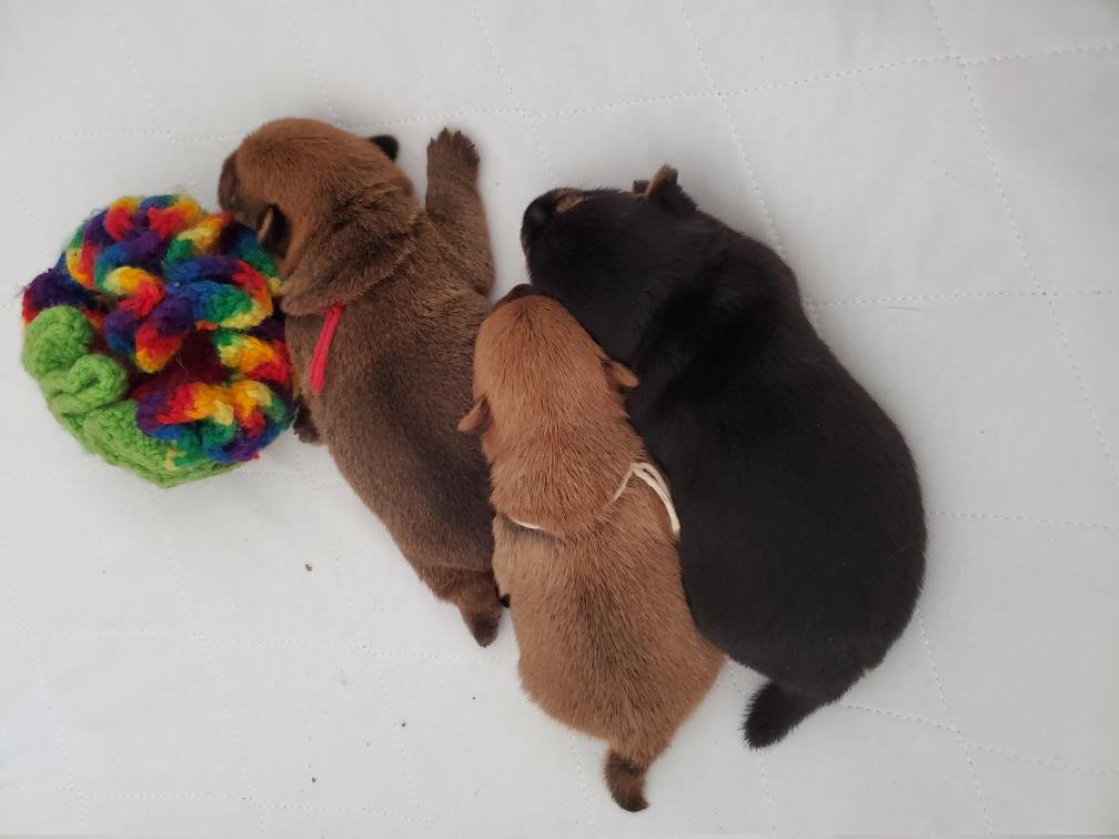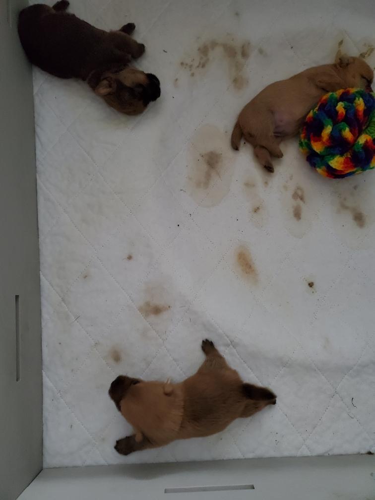 The puppies crawl around and find the most interesting sleeping positions. This is the triangle position.