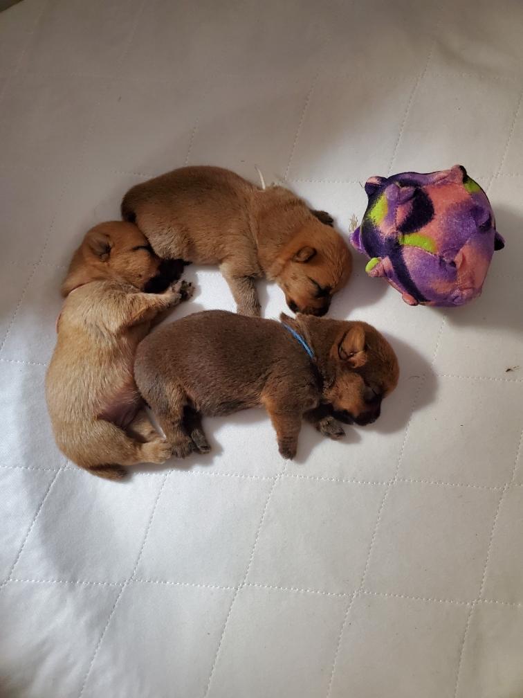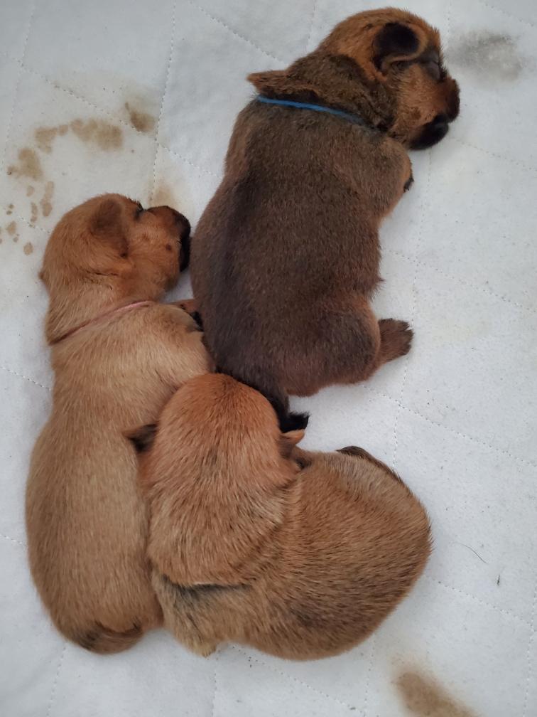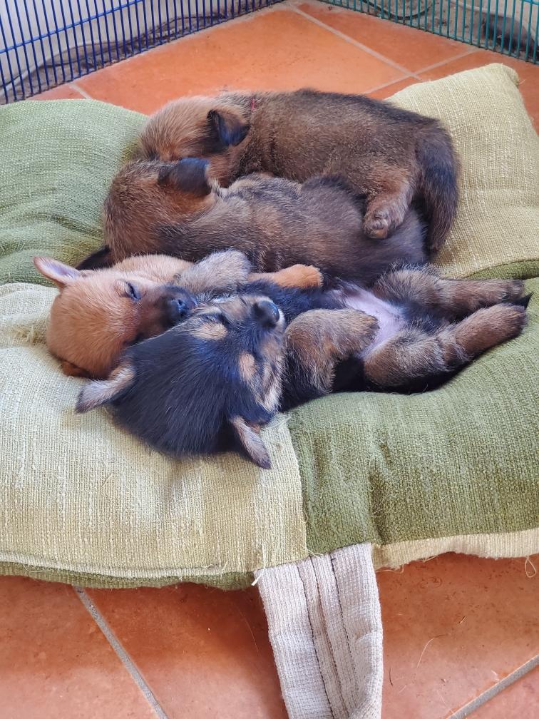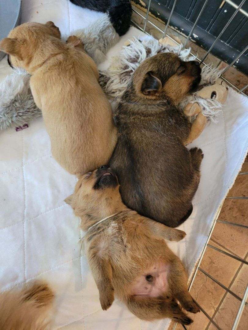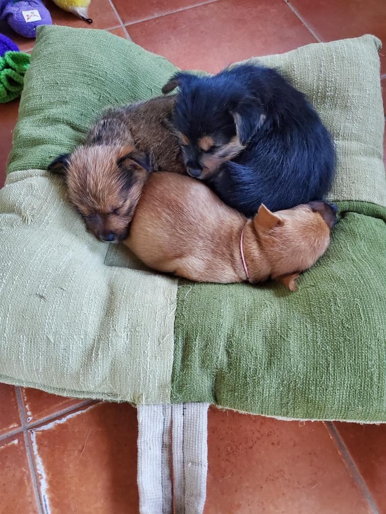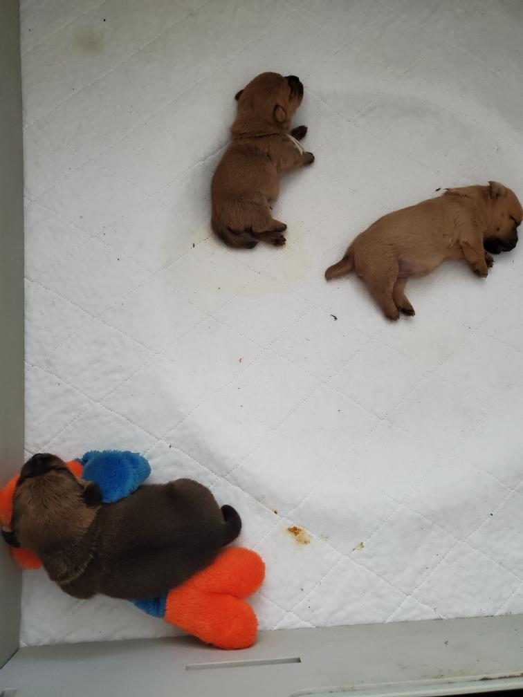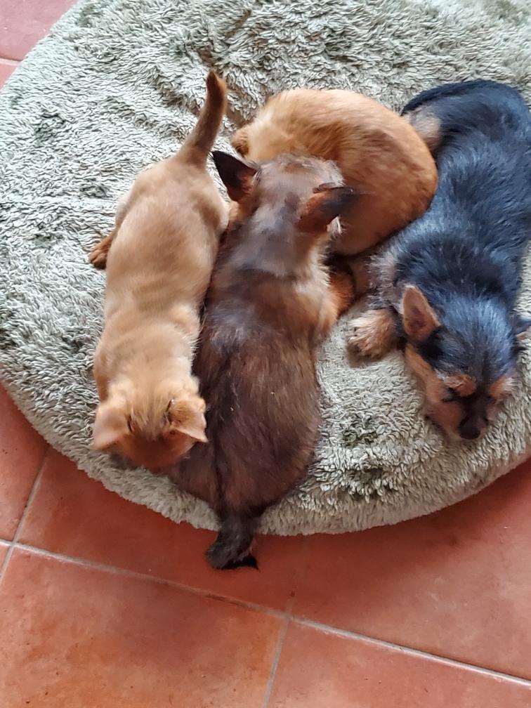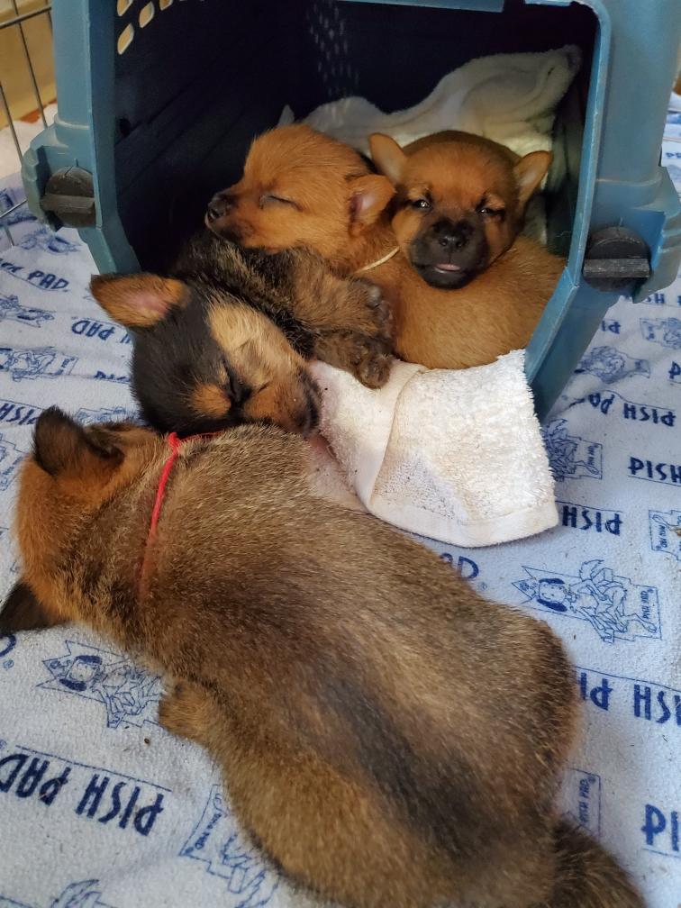 The puppies crawl around and find the most interesting sleeping positions. This is the triangle position.