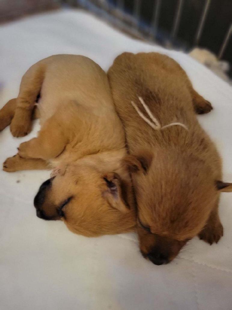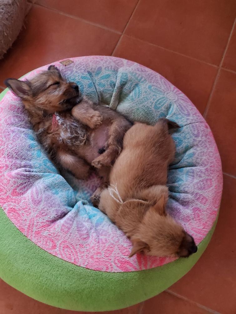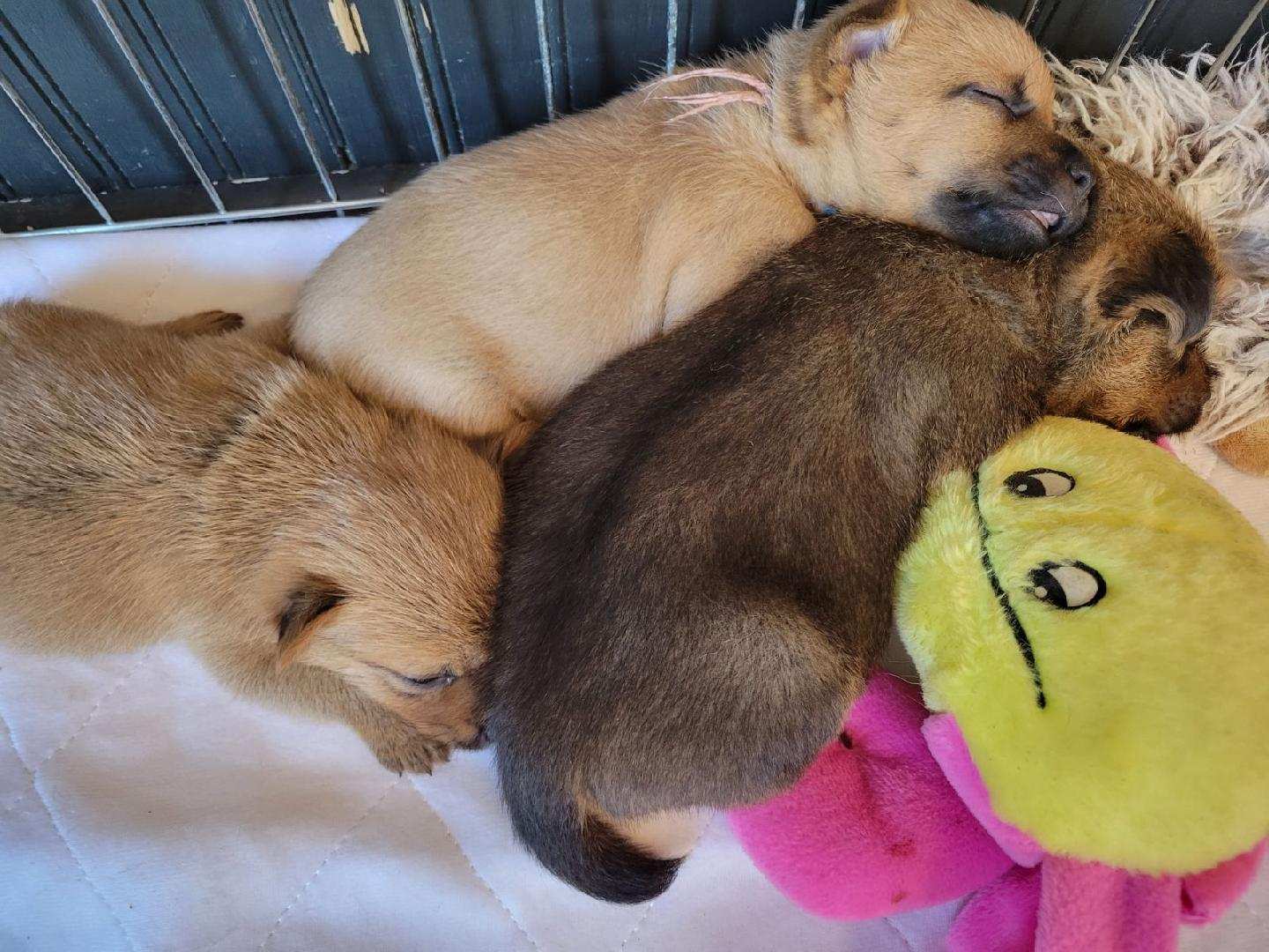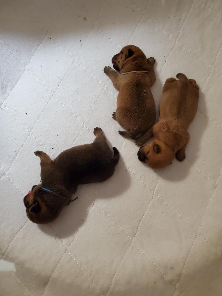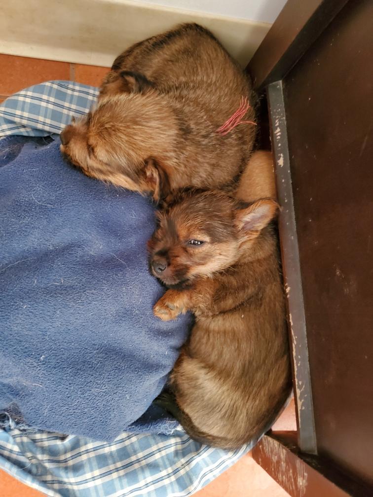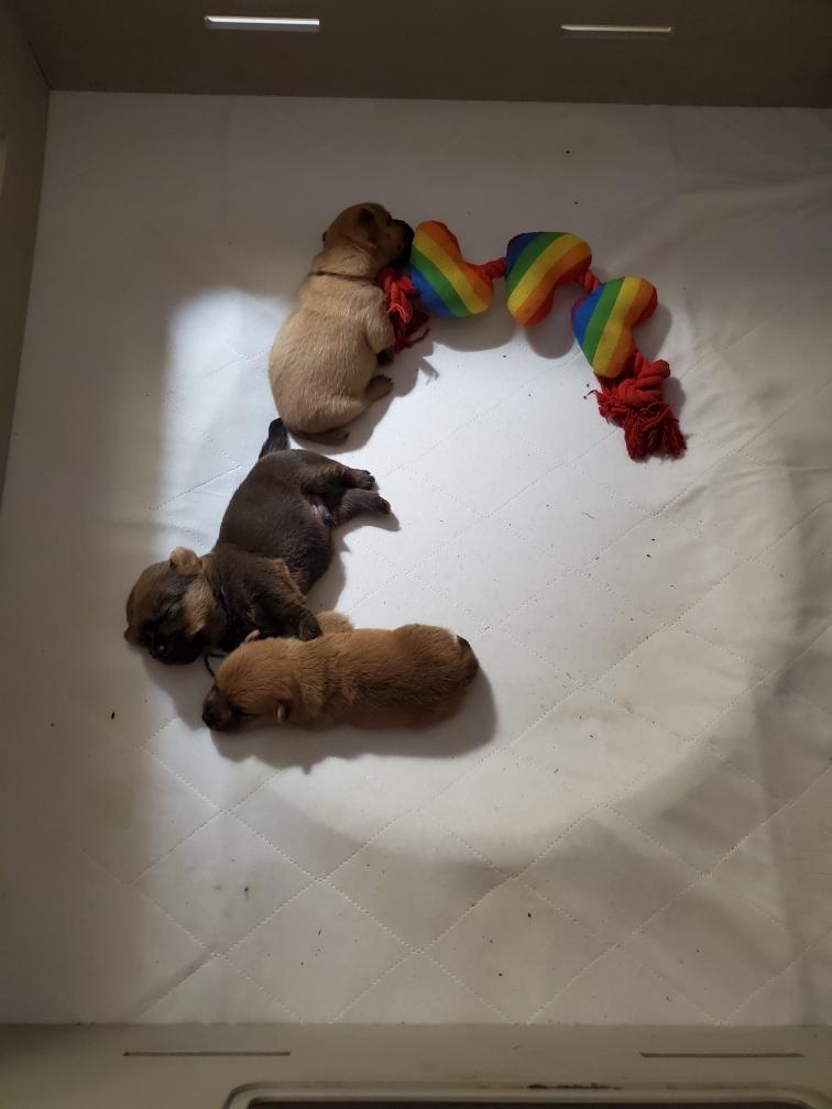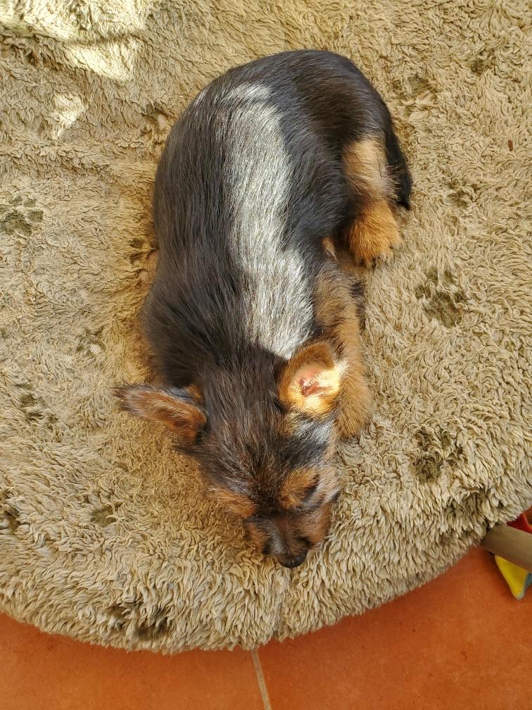 The puppies crawl around and find the most interesting sleeping positions. This is the triangle position.