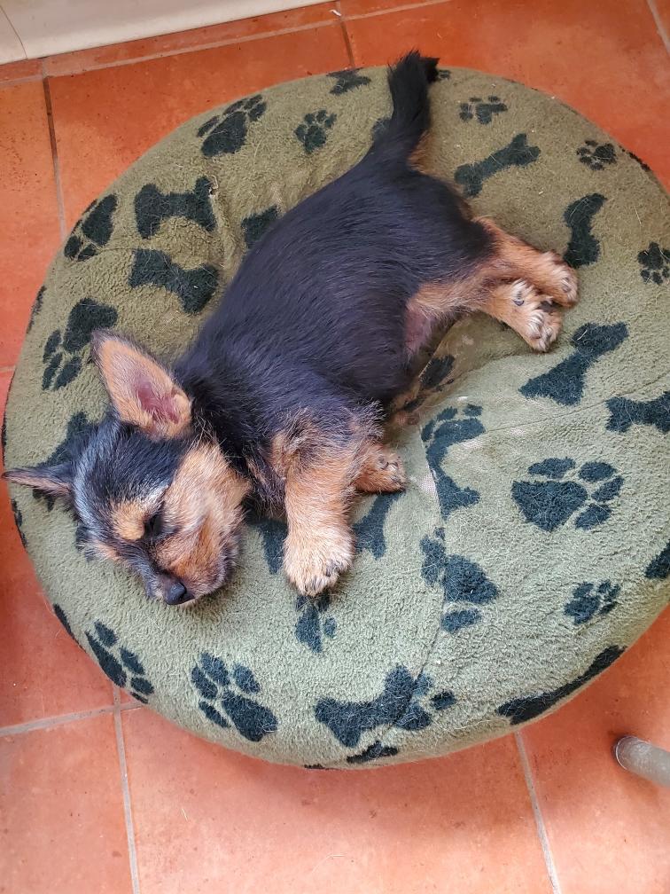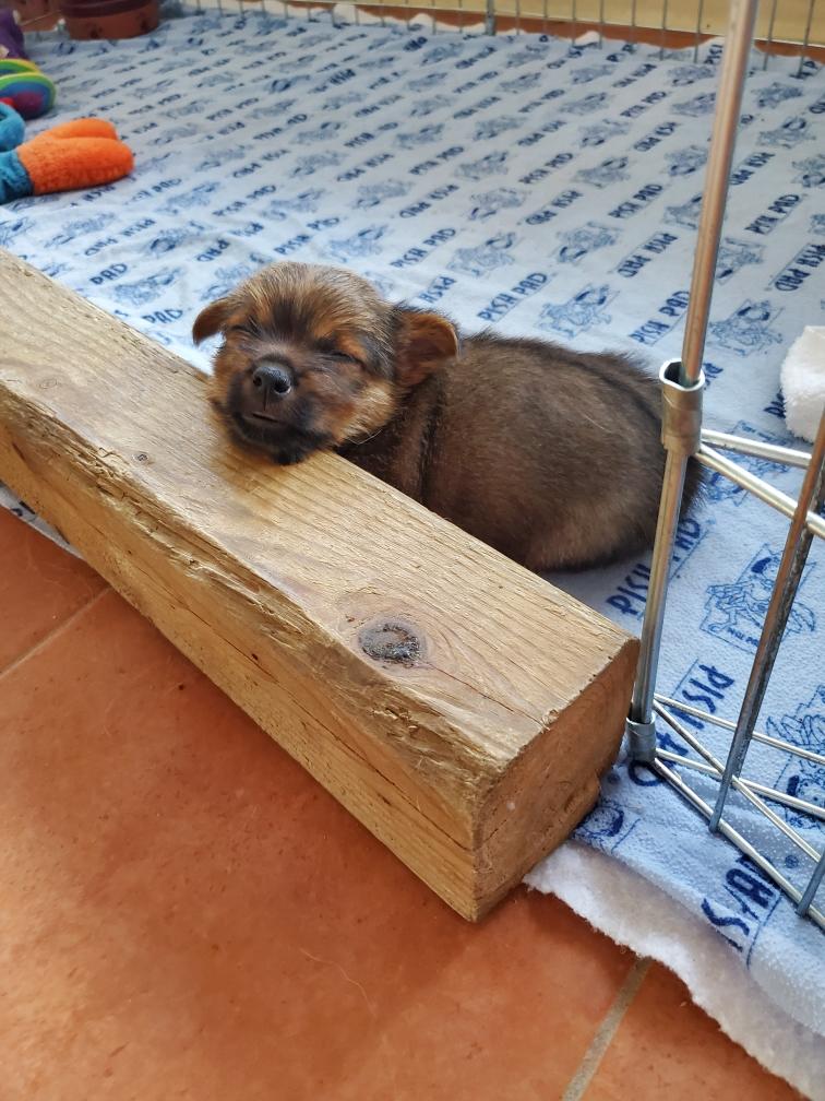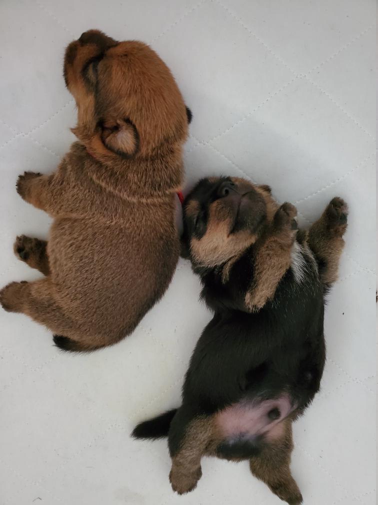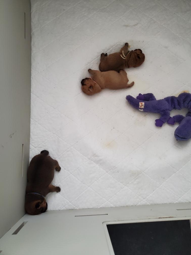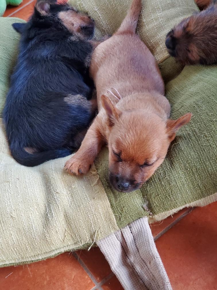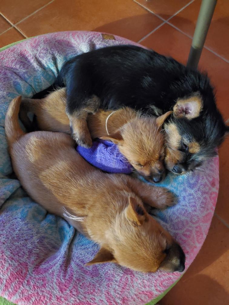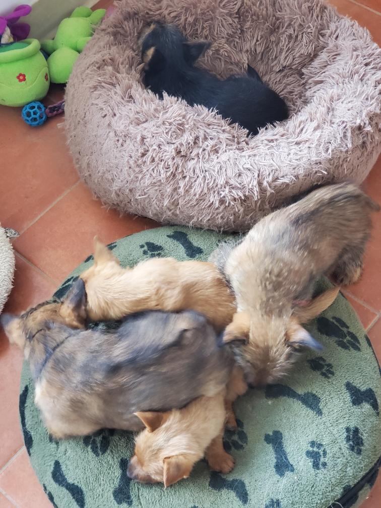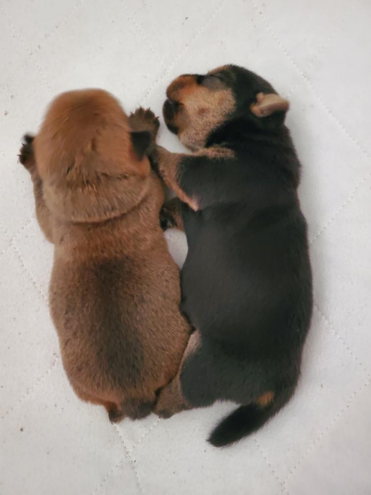 The puppies crawl around and find the most interesting sleeping positions. This is the triangle position.