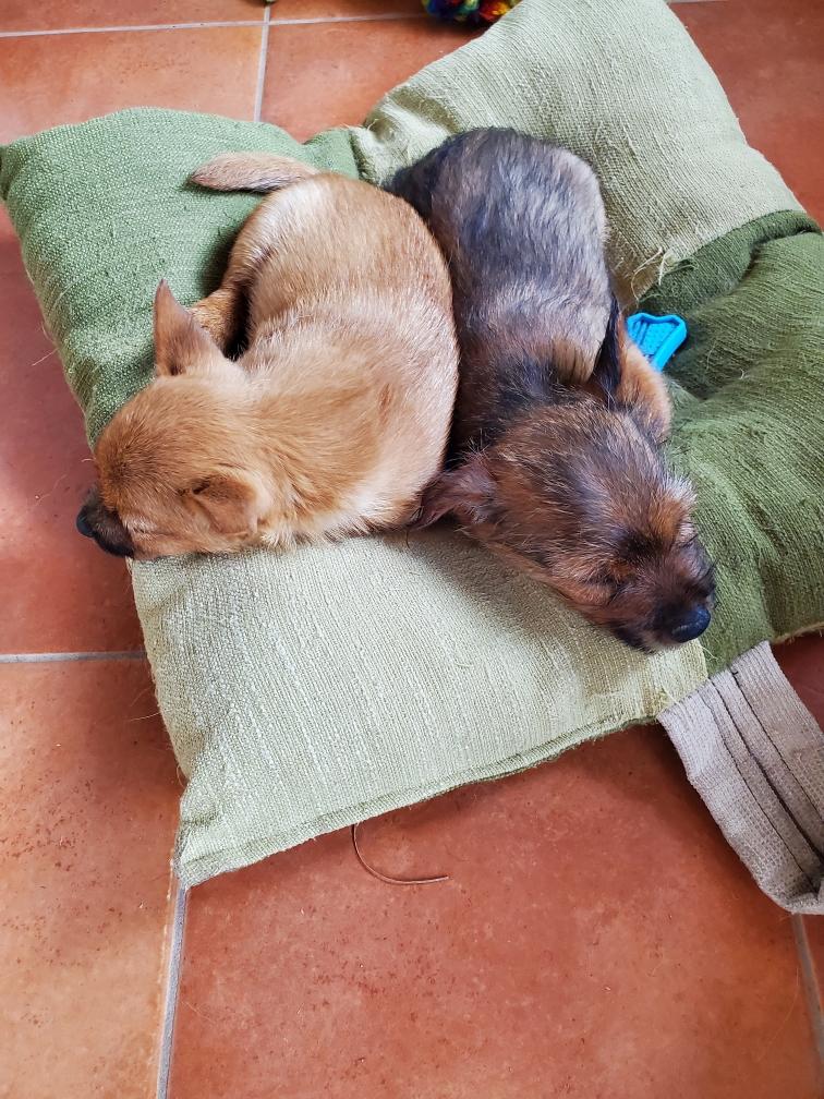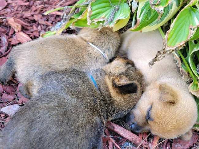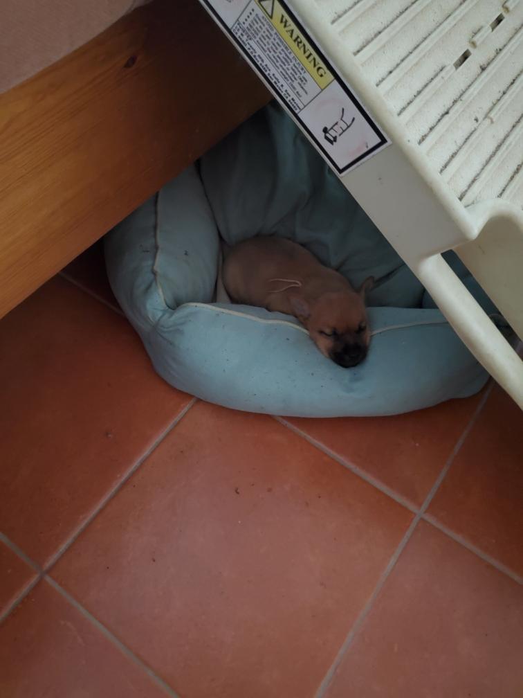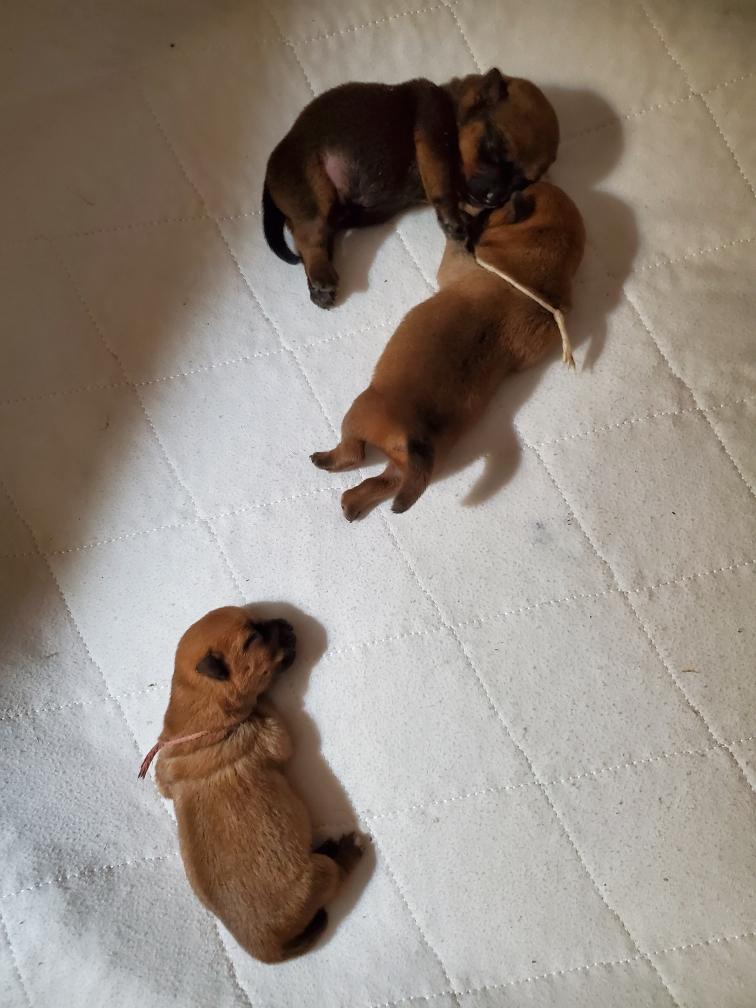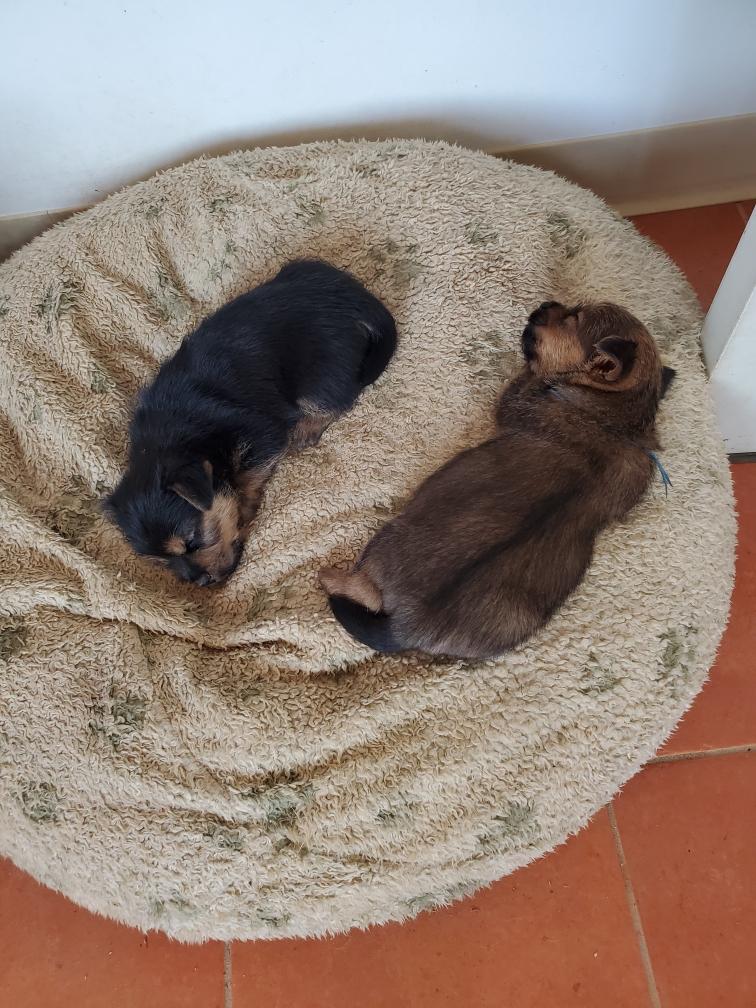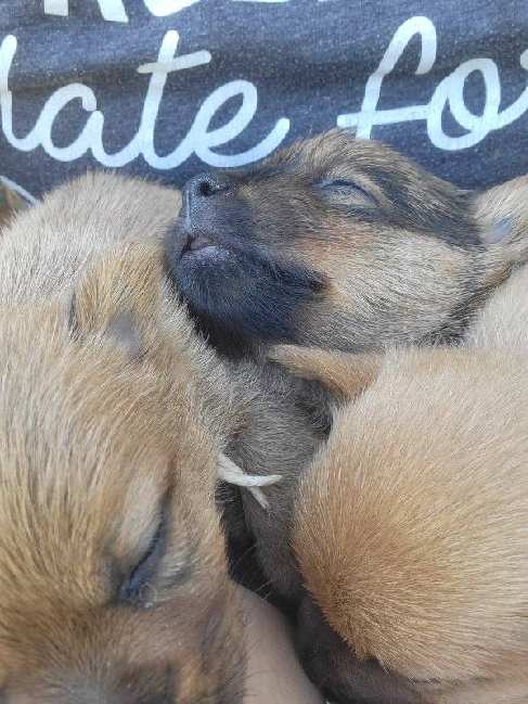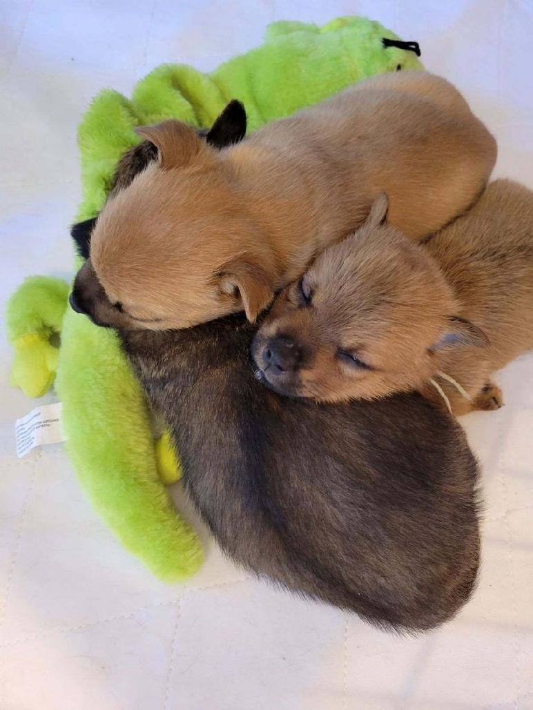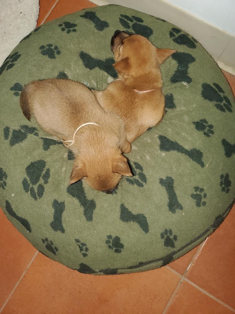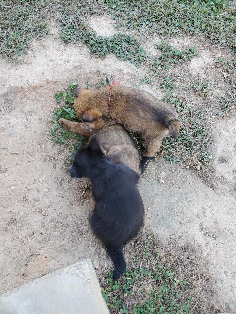 The puppies crawl around and find the most interesting sleeping positions. This is the triangle position.