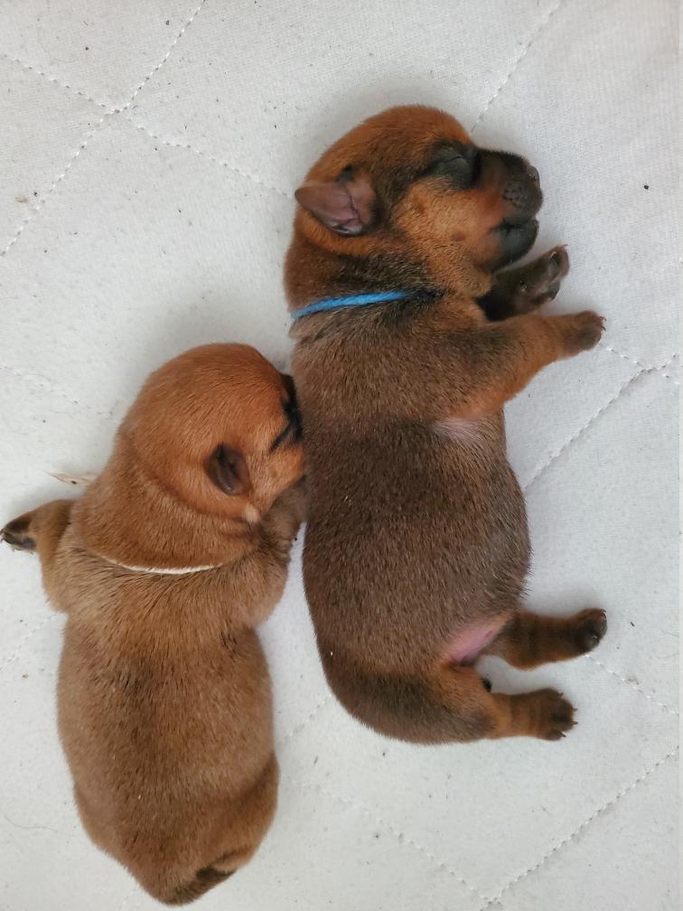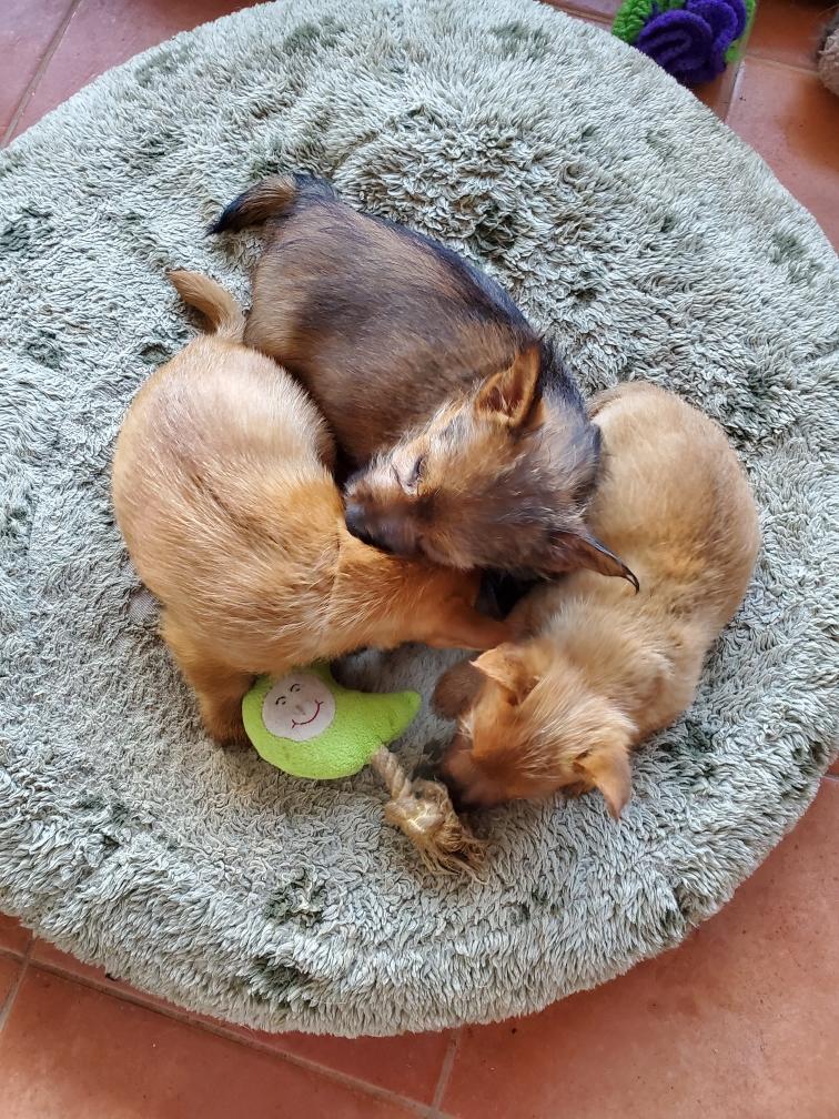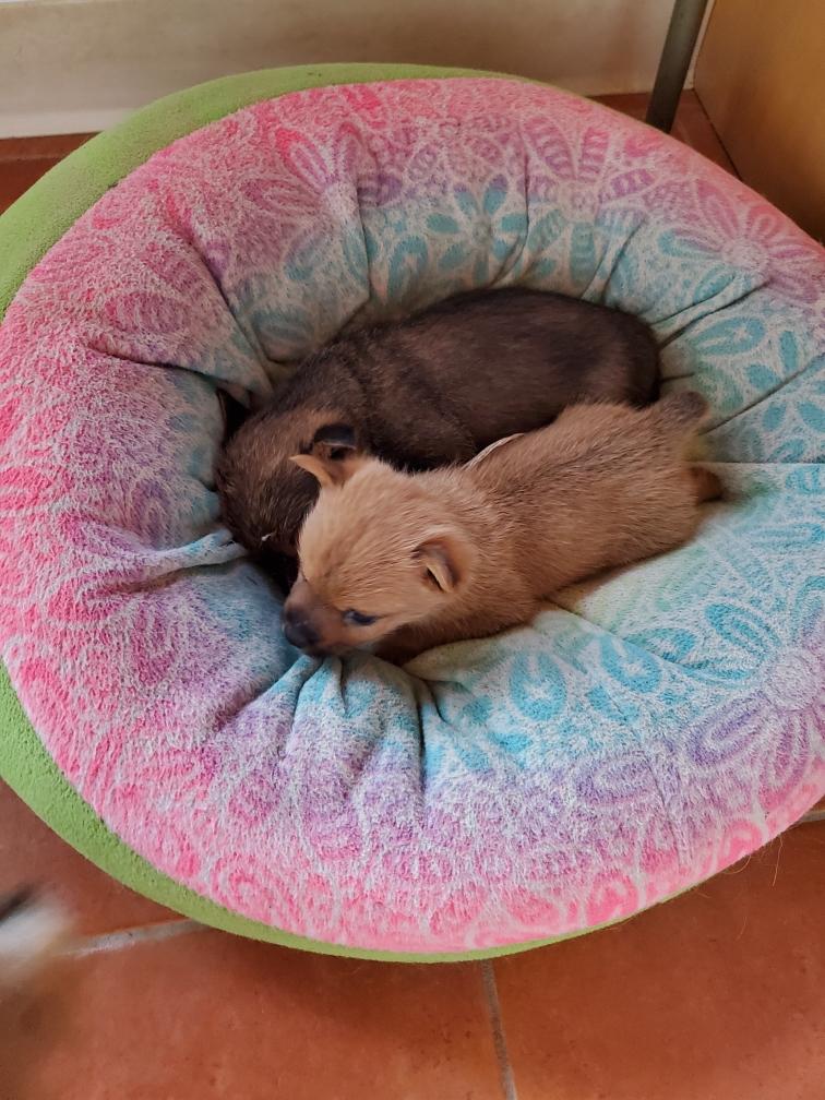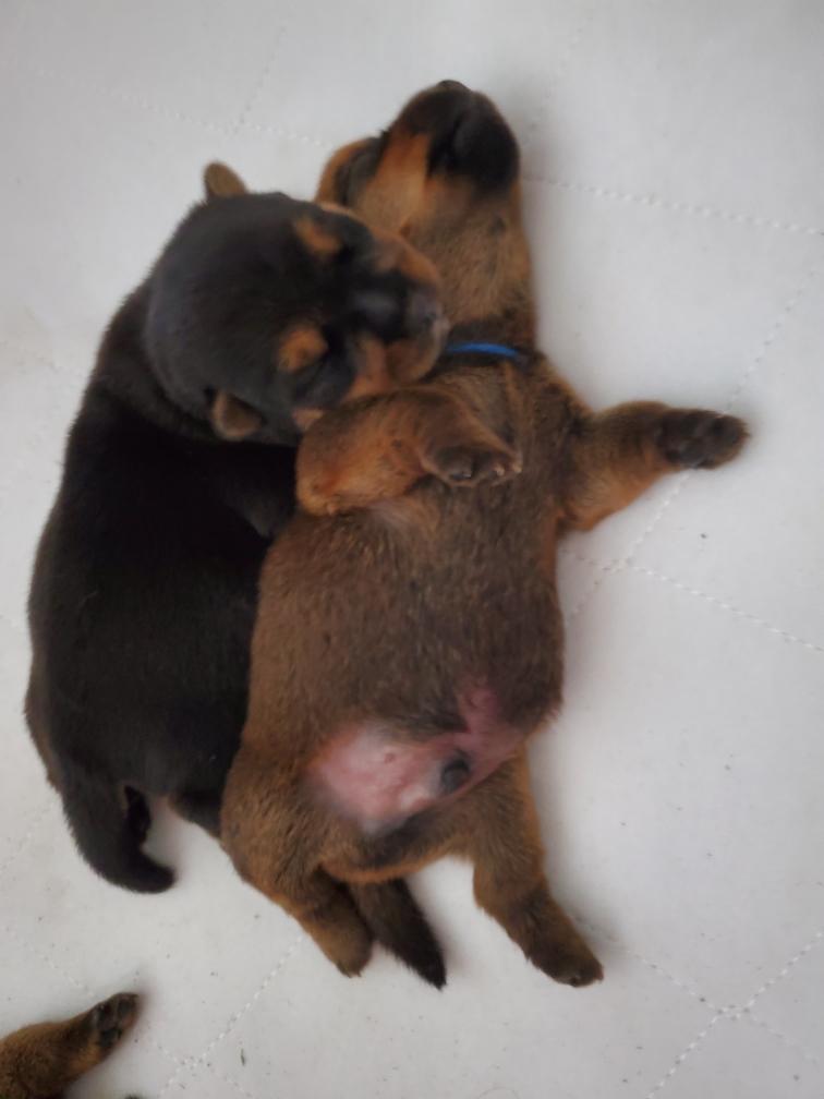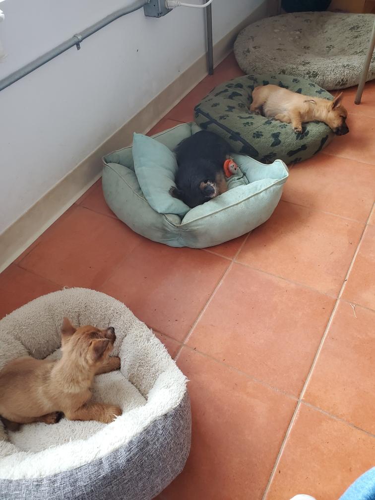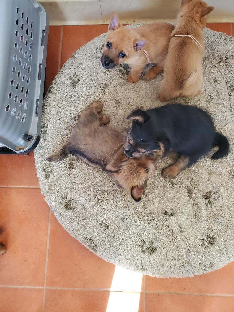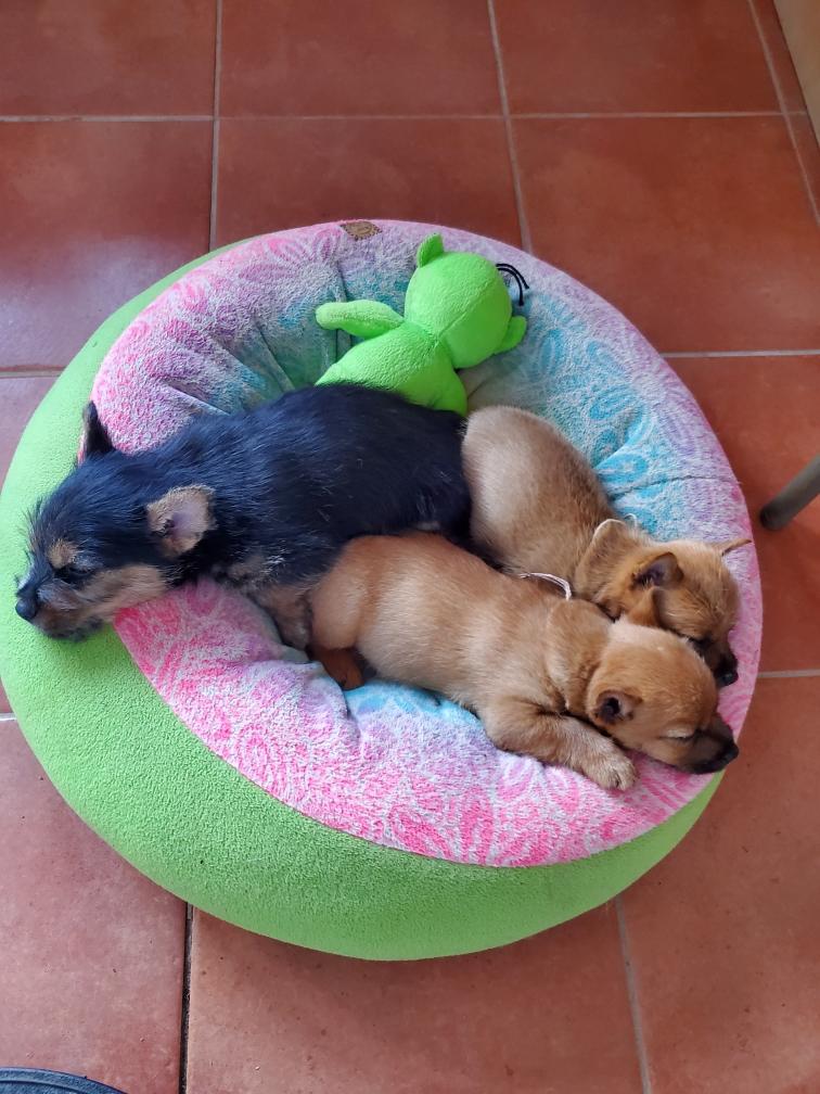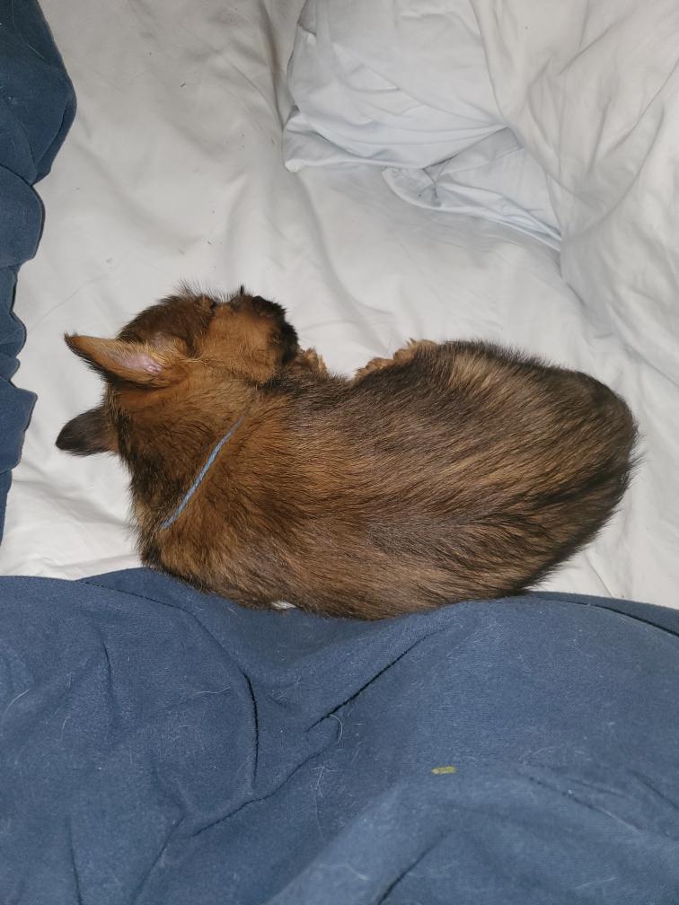 The puppies crawl around and find the most interesting sleeping positions. This is the triangle position.