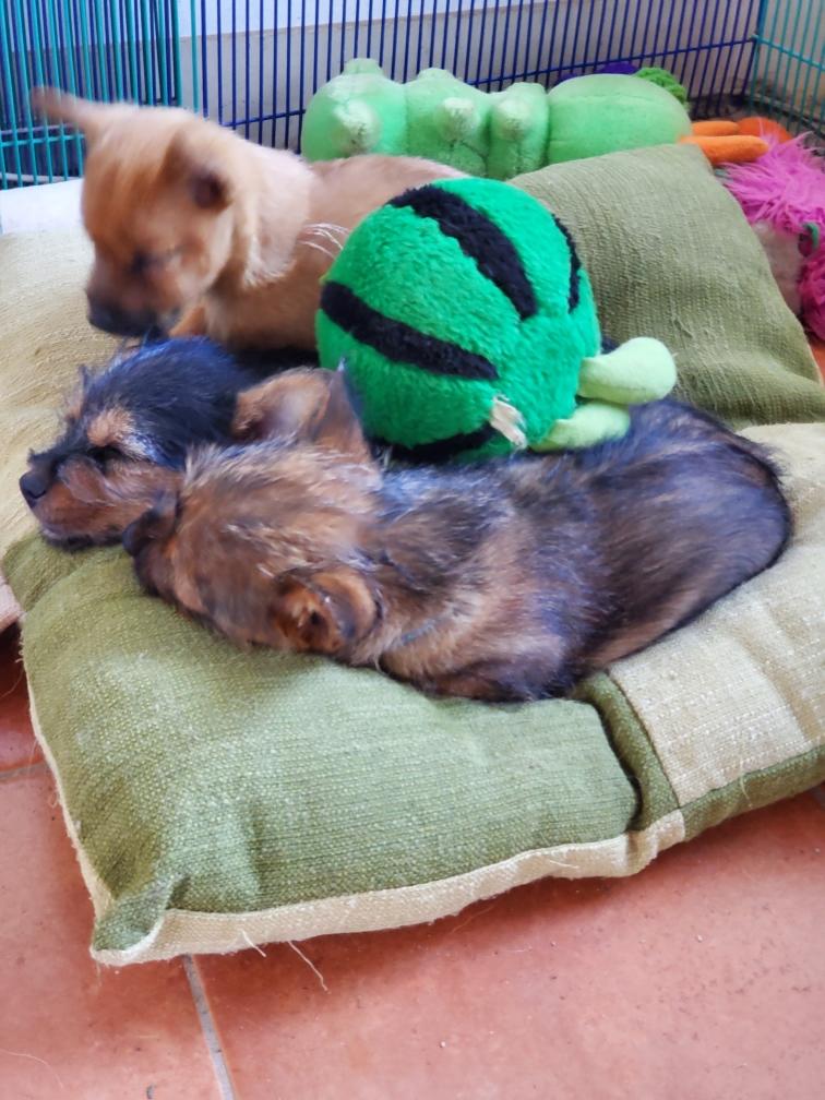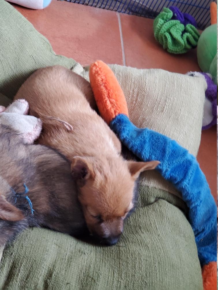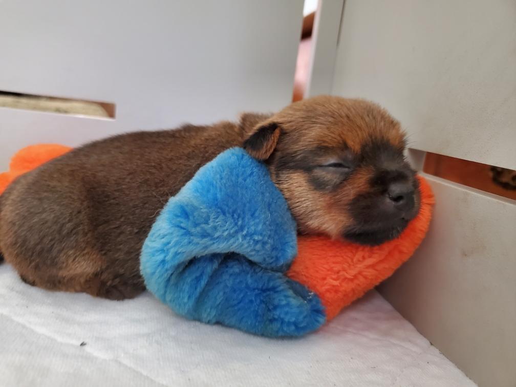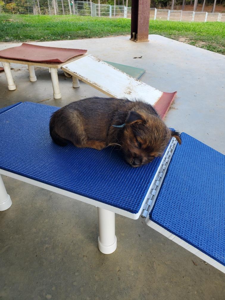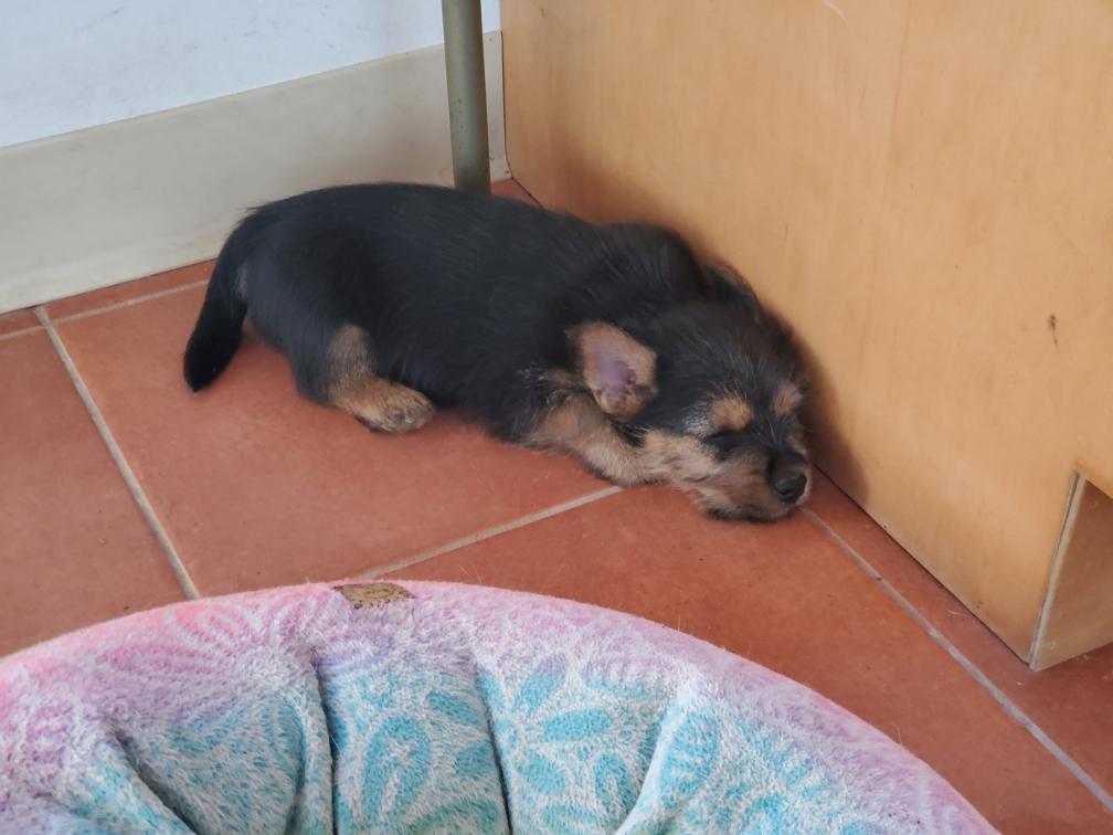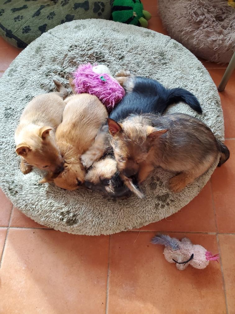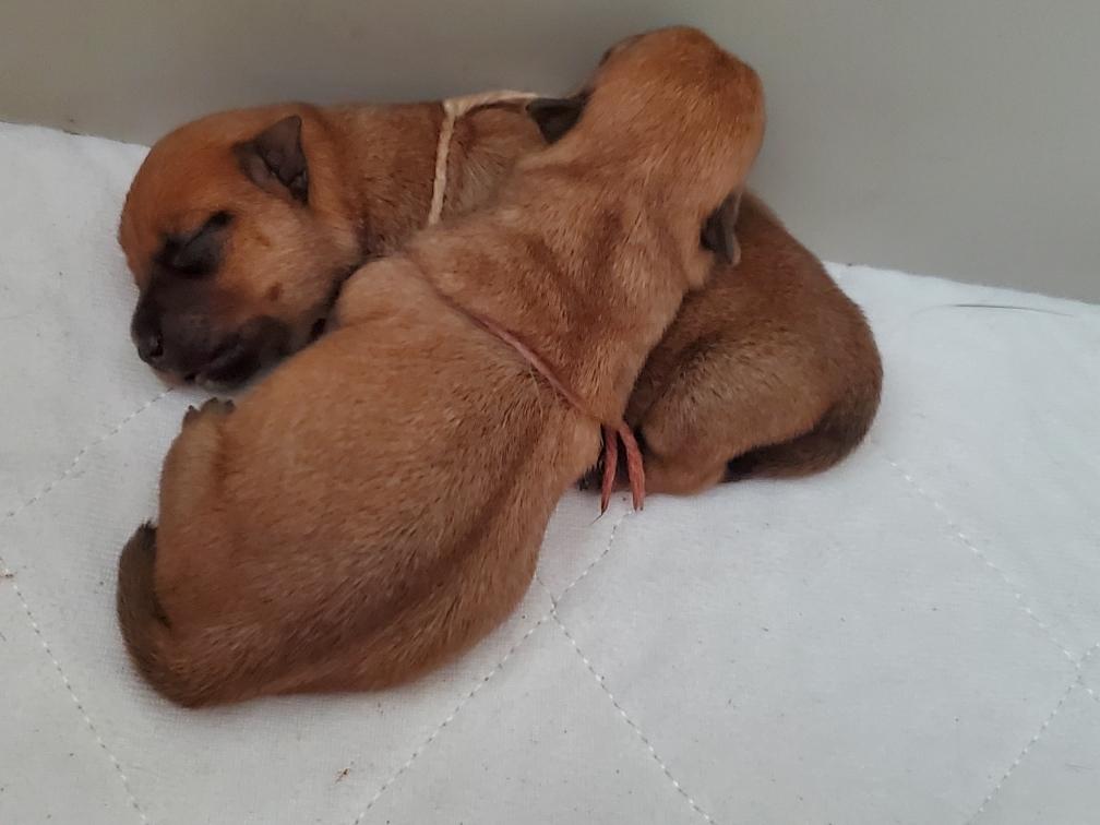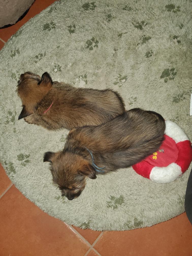 The puppies crawl around and find the most interesting sleeping positions. This is the triangle position.