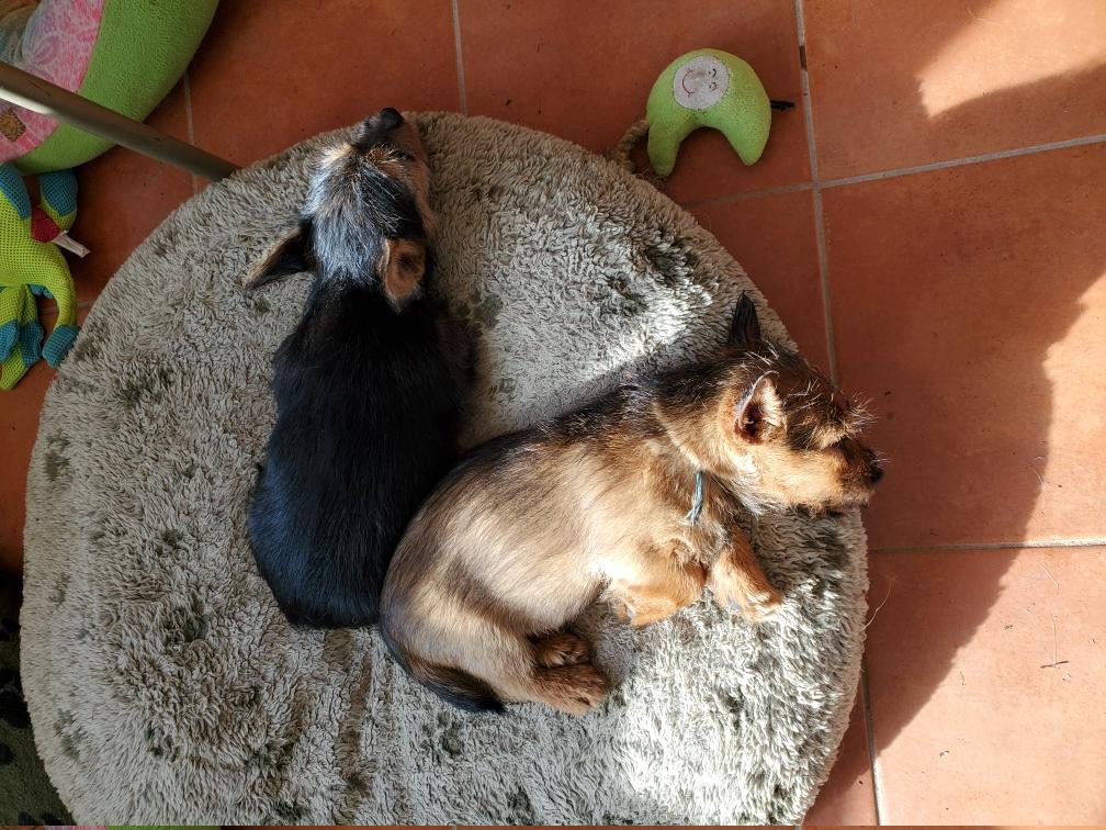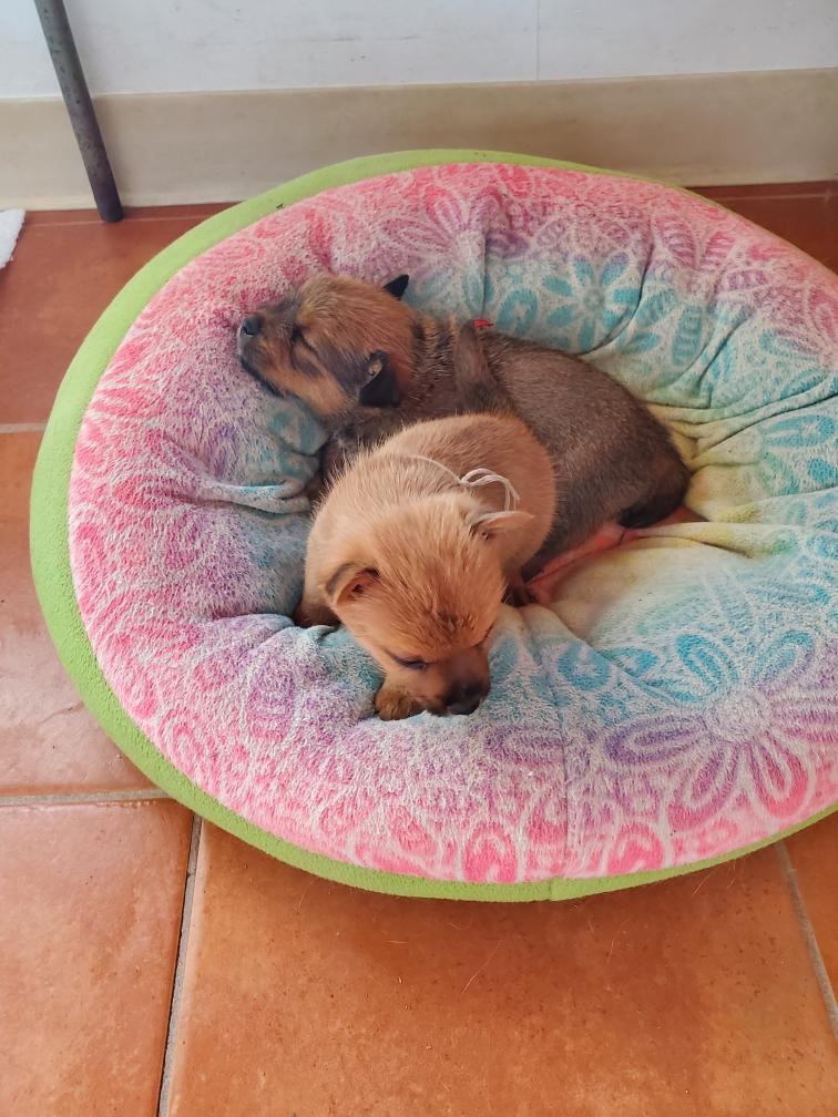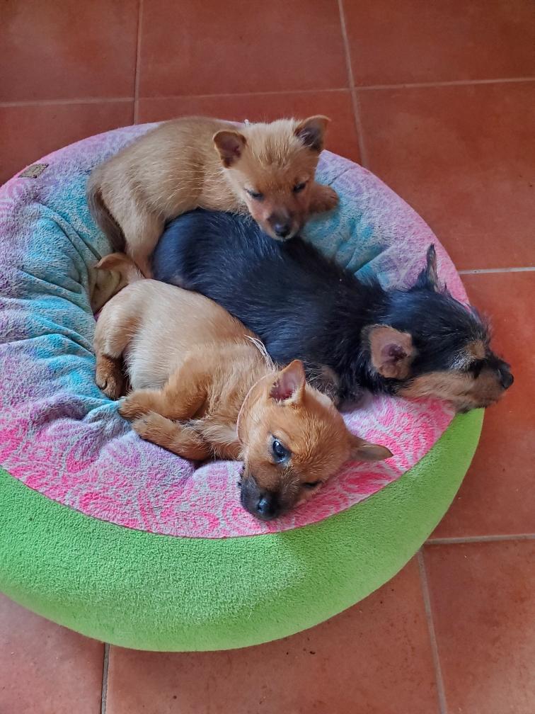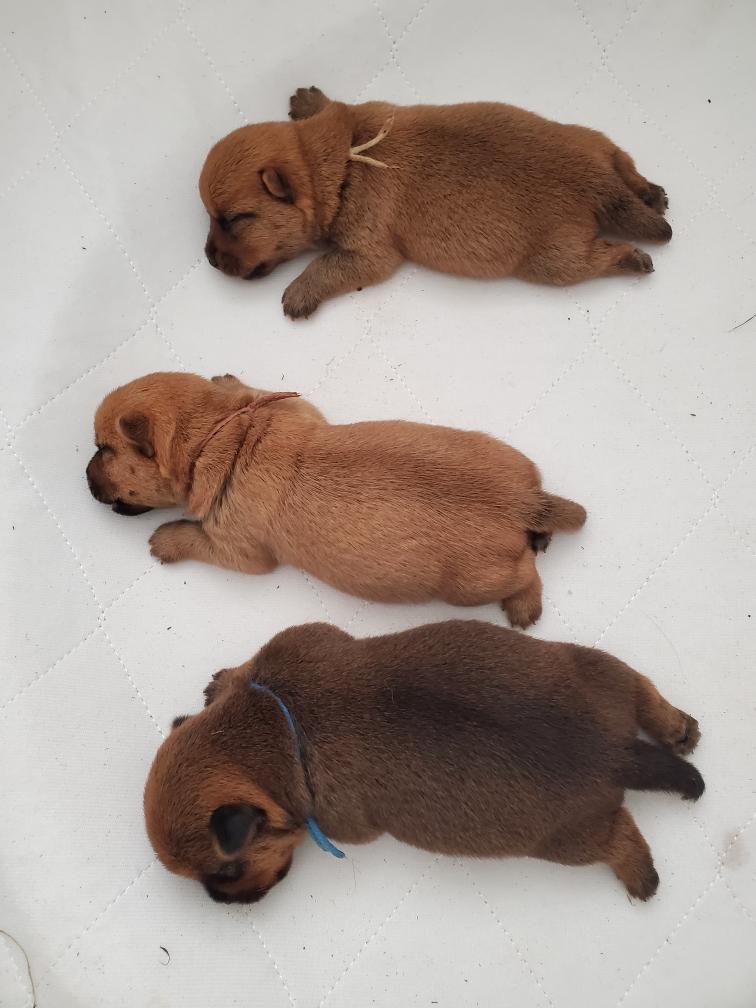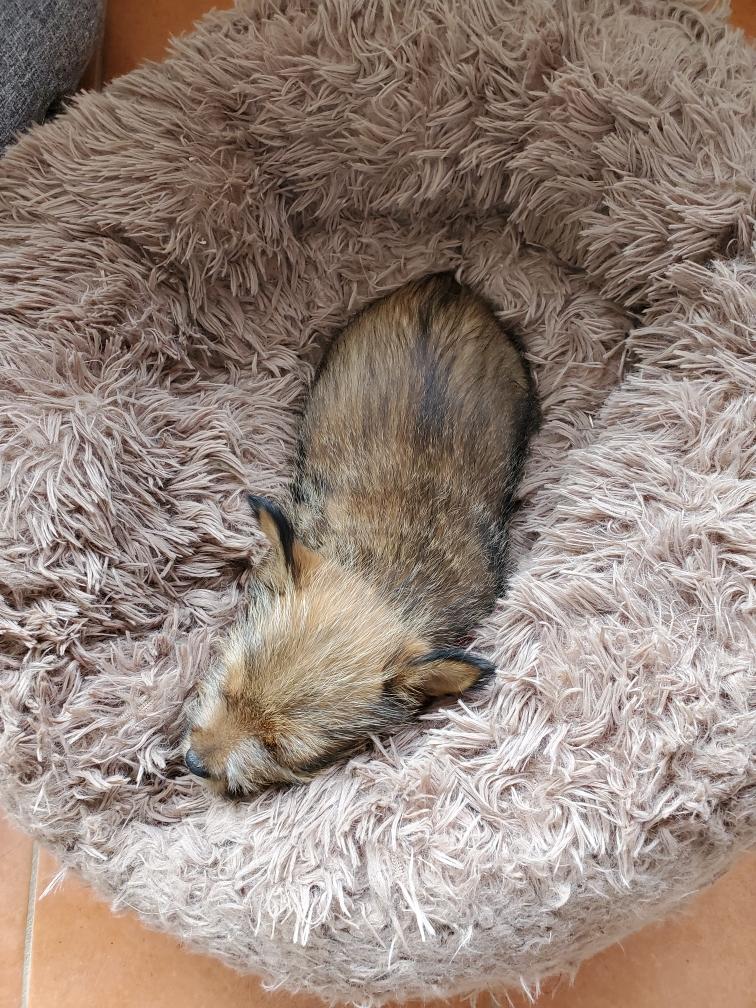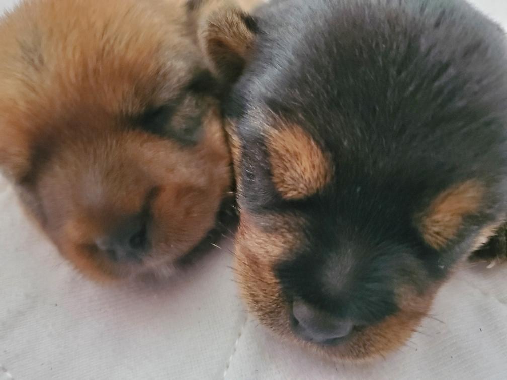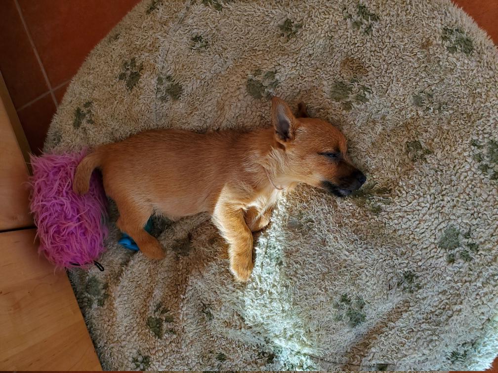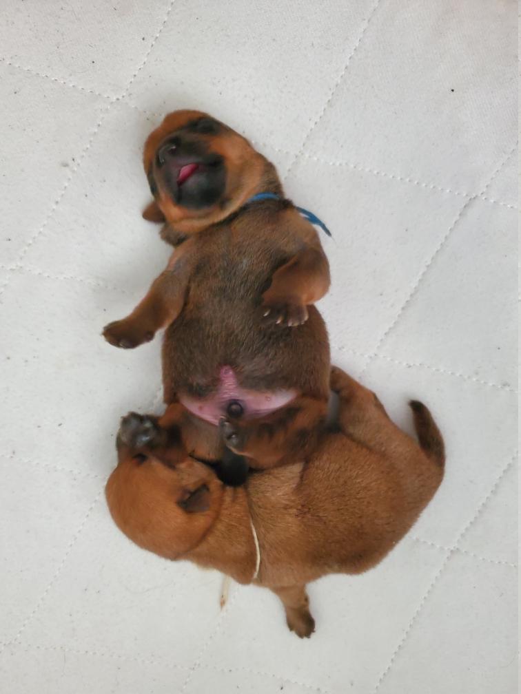 The puppies crawl around and find the most interesting sleeping positions. This is the triangle position.