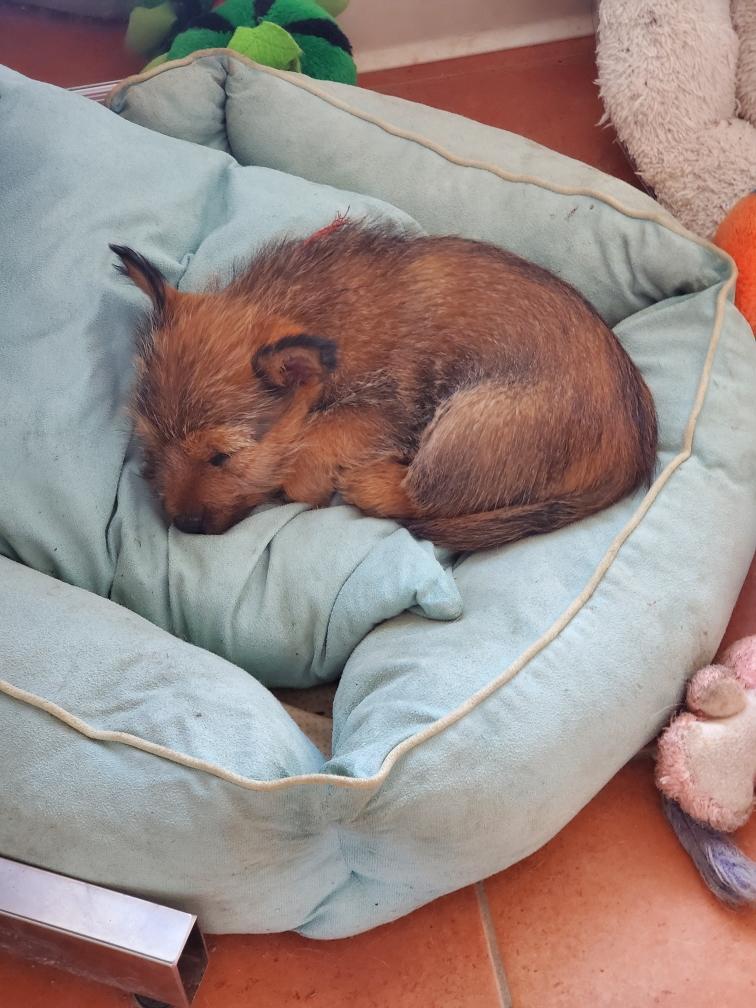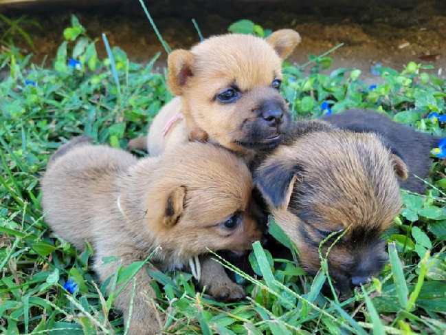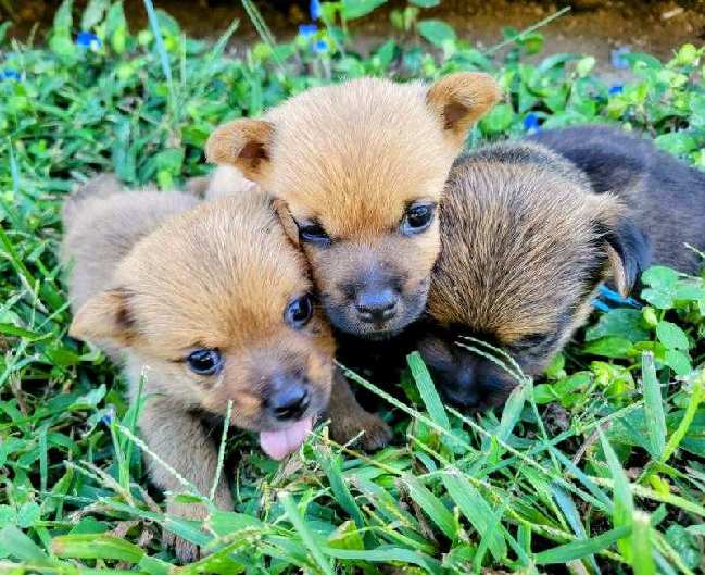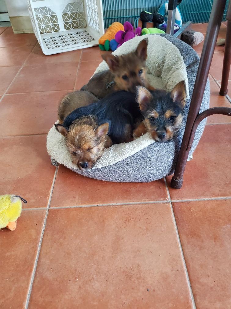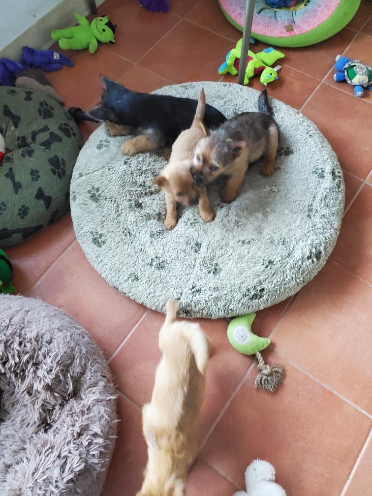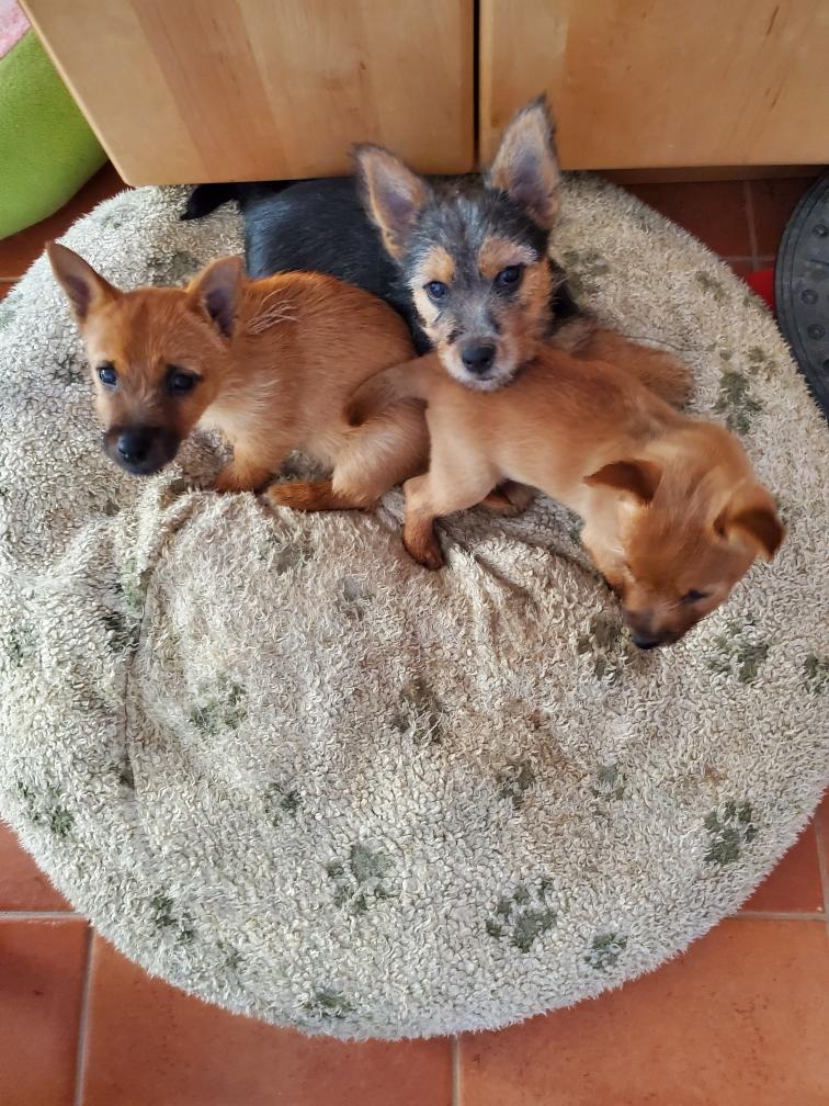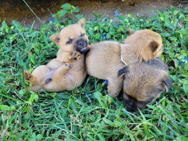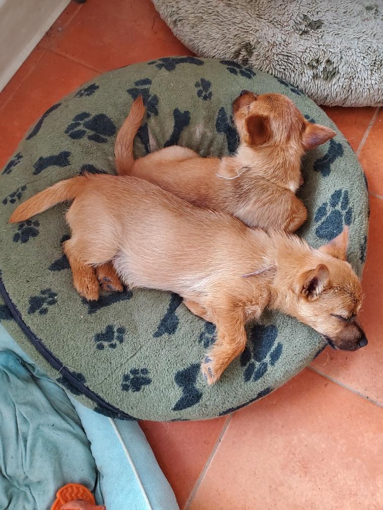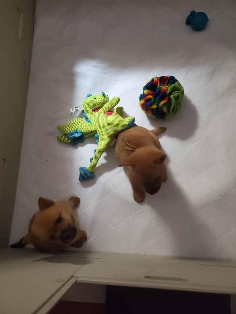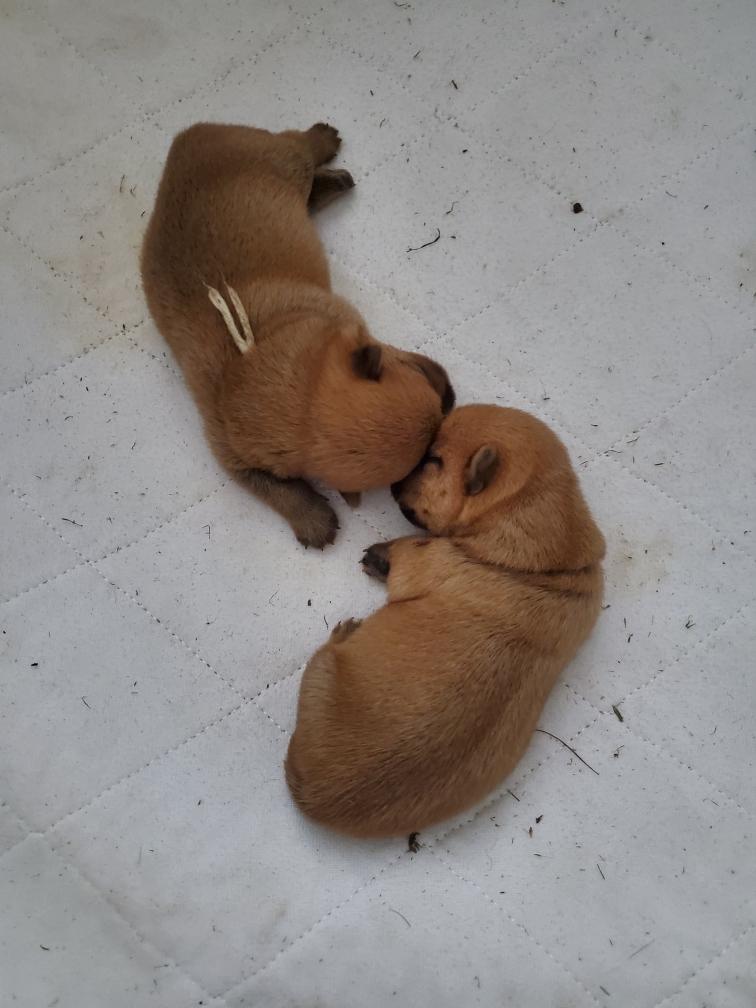 The puppies crawl around and find the most interesting sleeping positions. This is the triangle position.