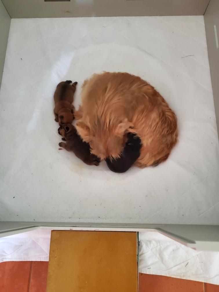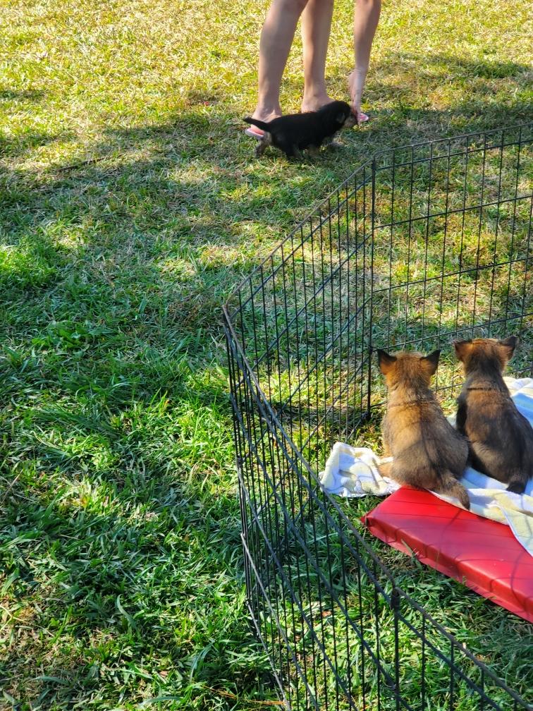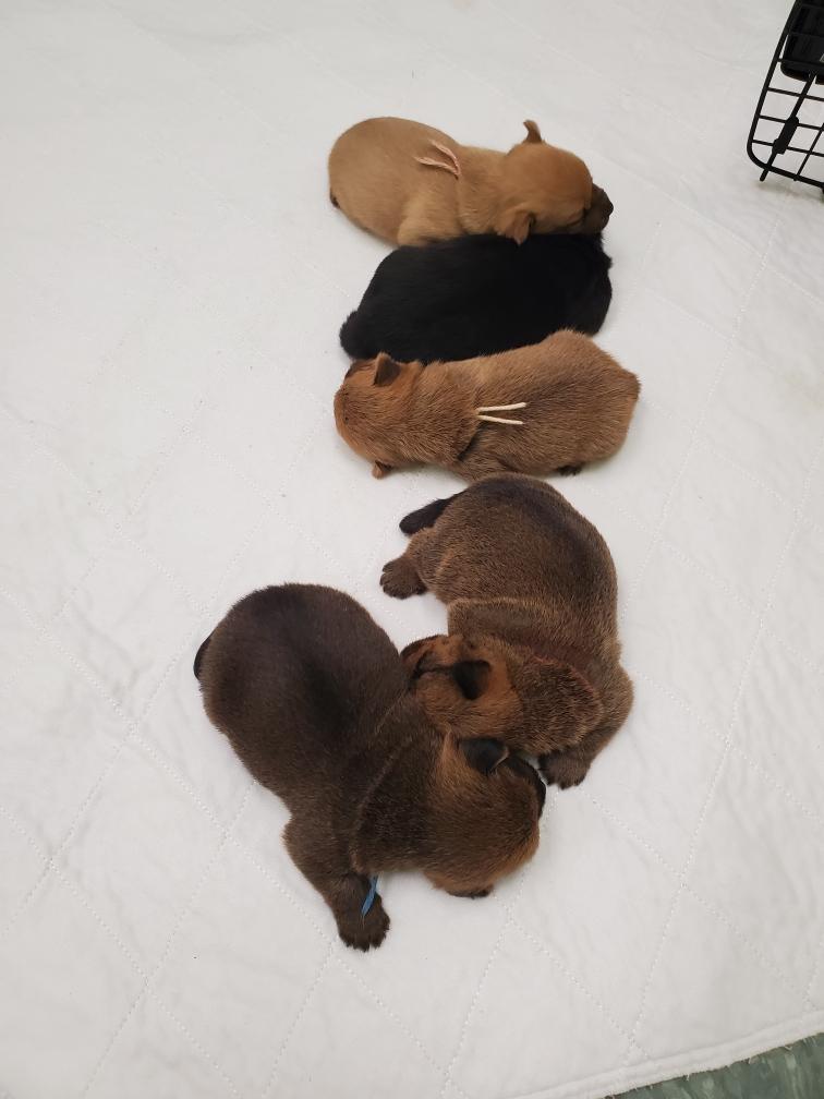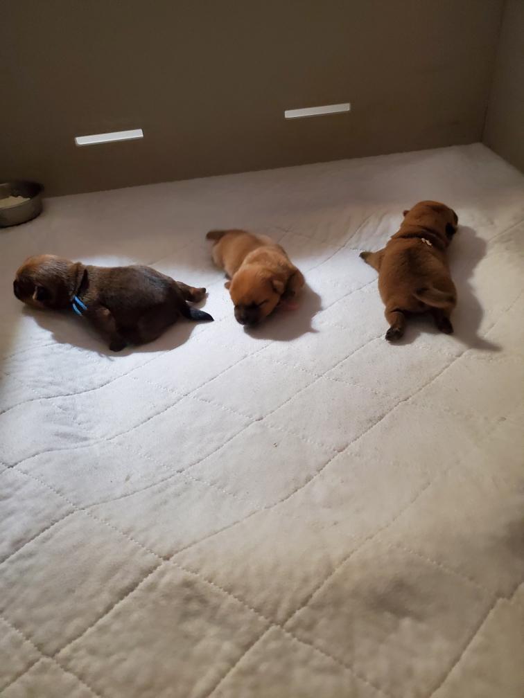 Siri was bred several times by side-by-side artificial insemination to Justin ("Foxwood's Just Having A Blast At Coventry") owned by Dale Martins. Justin was the sire of a litter I had in 2021 (but with a different girl). After Siri was finished breeding, I drove up to Maryland and got her.