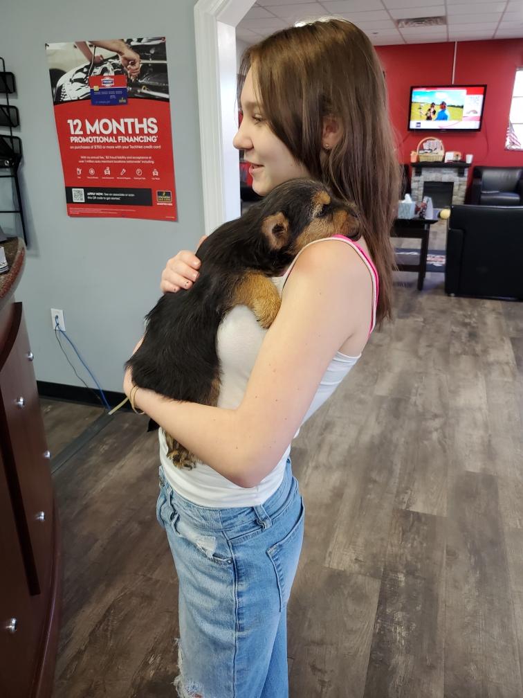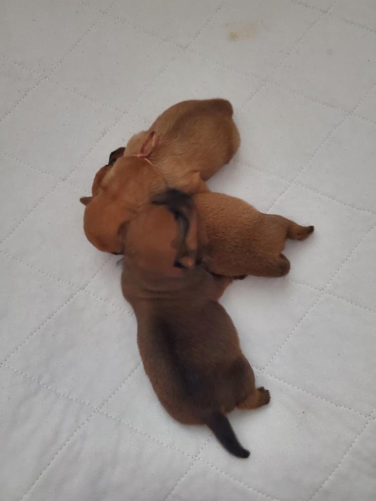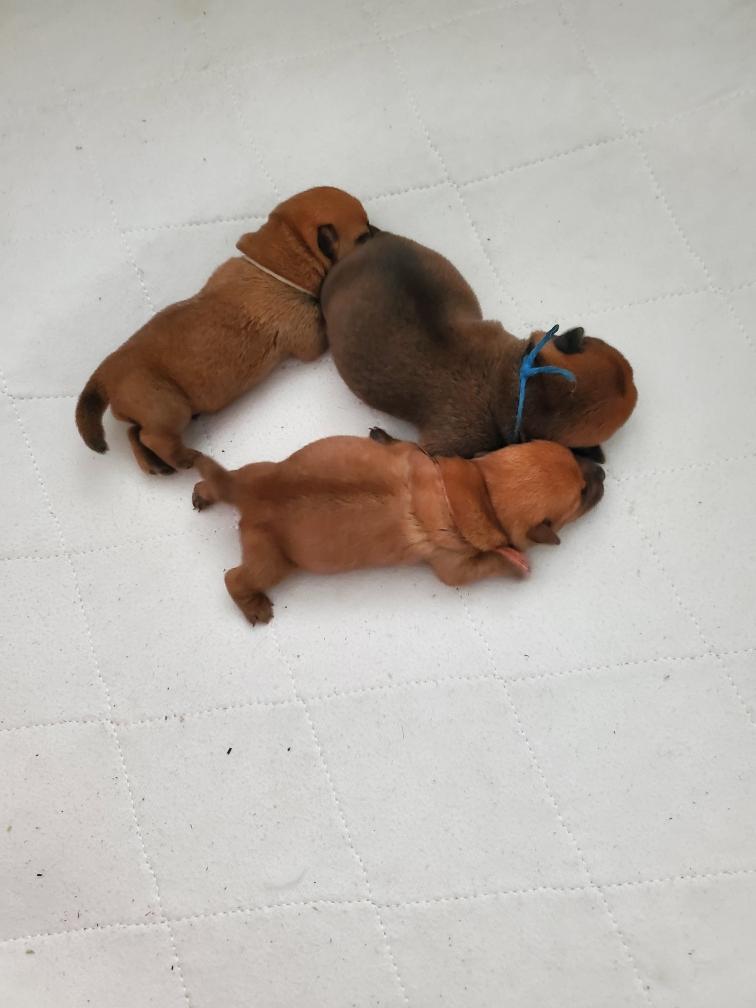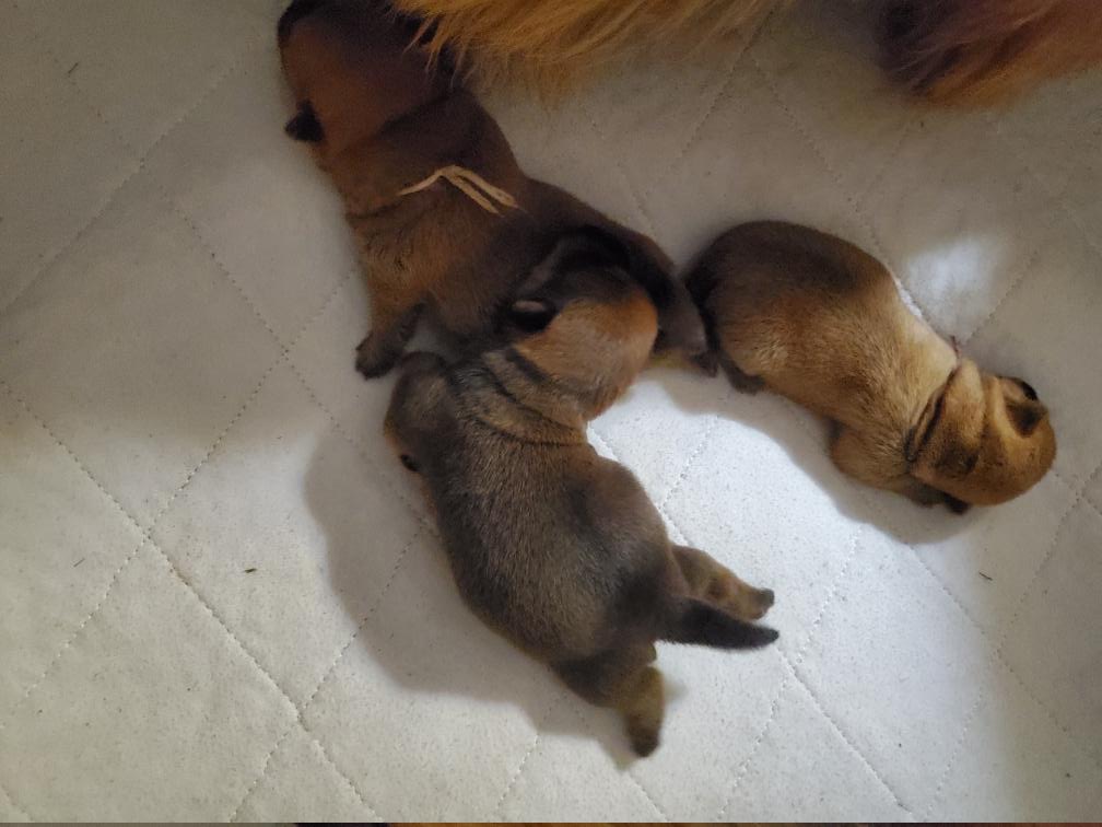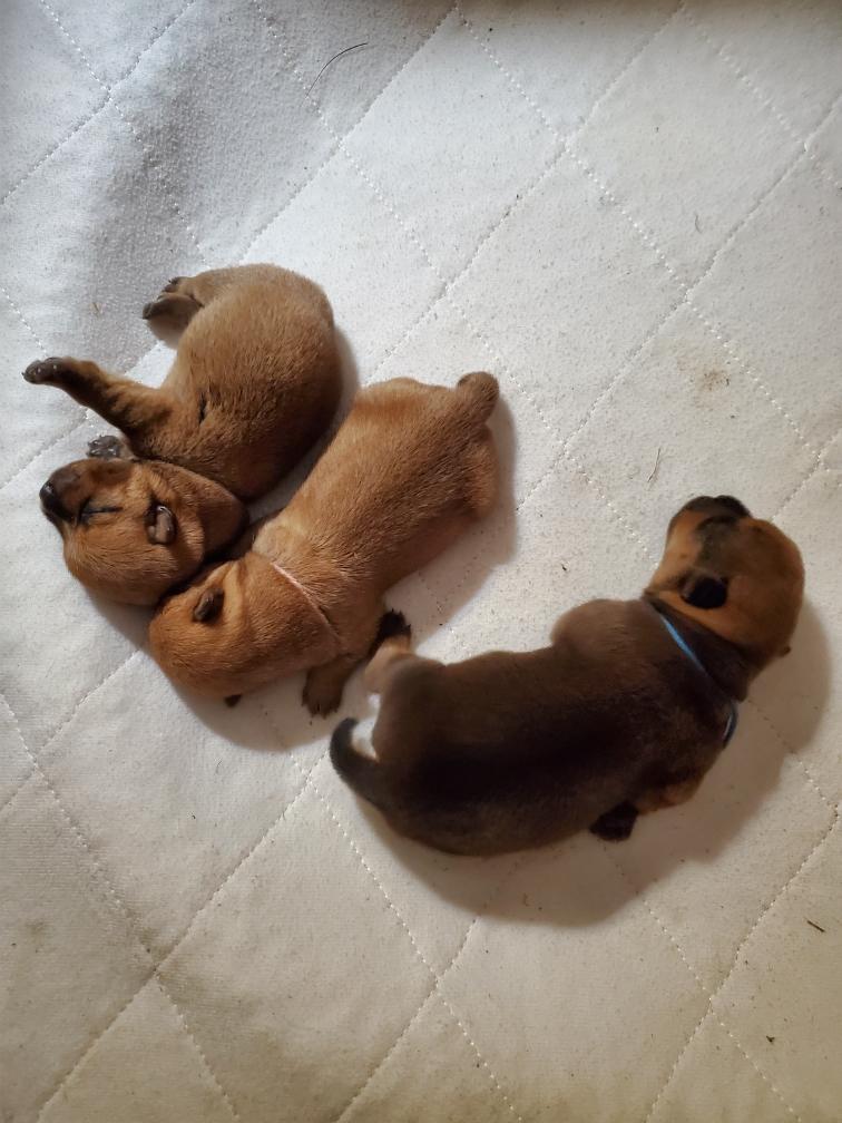 Siri was bred several times by side-by-side artificial insemination to Justin ("Foxwood's Just Having A Blast At Coventry") owned by Dale Martins. Justin was the sire of a litter I had in 2021 (but with a different girl). After Siri was finished breeding, I drove up to Maryland and got her.