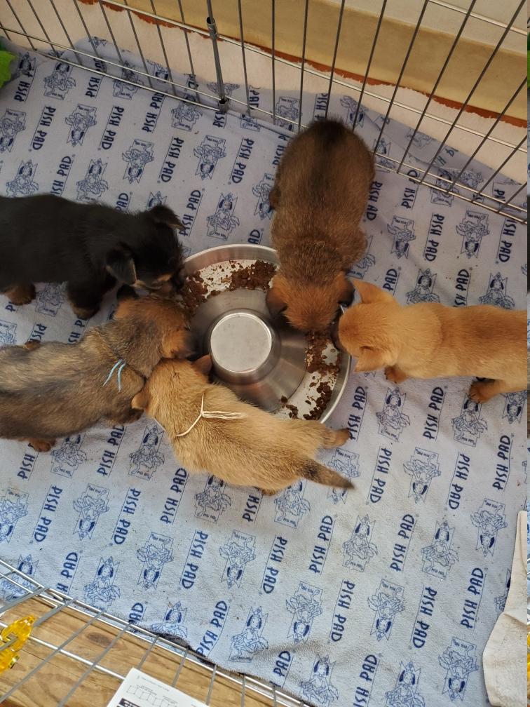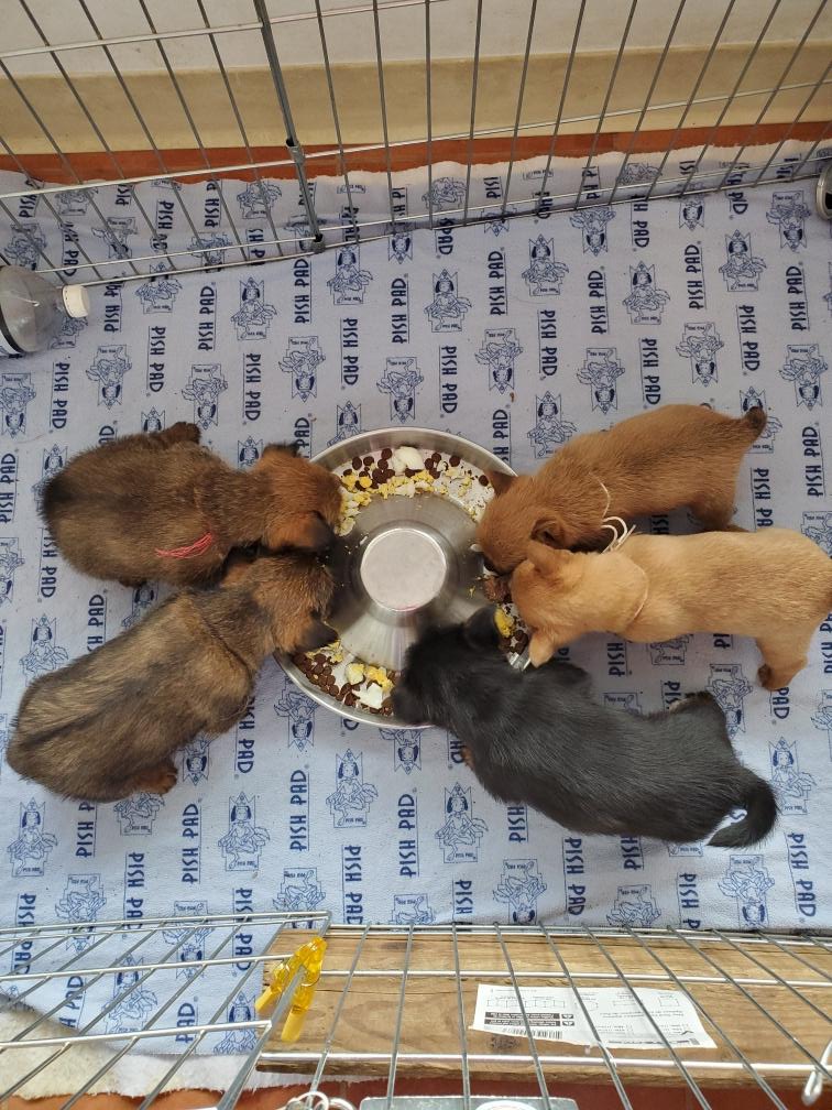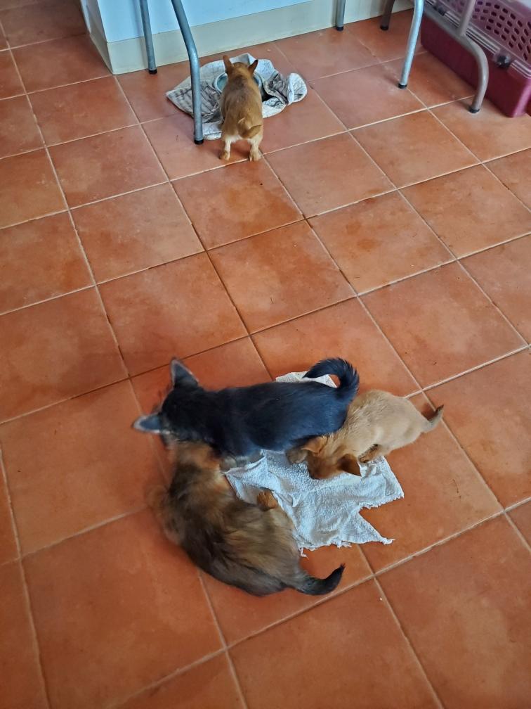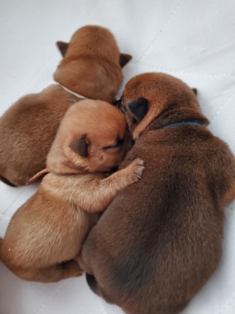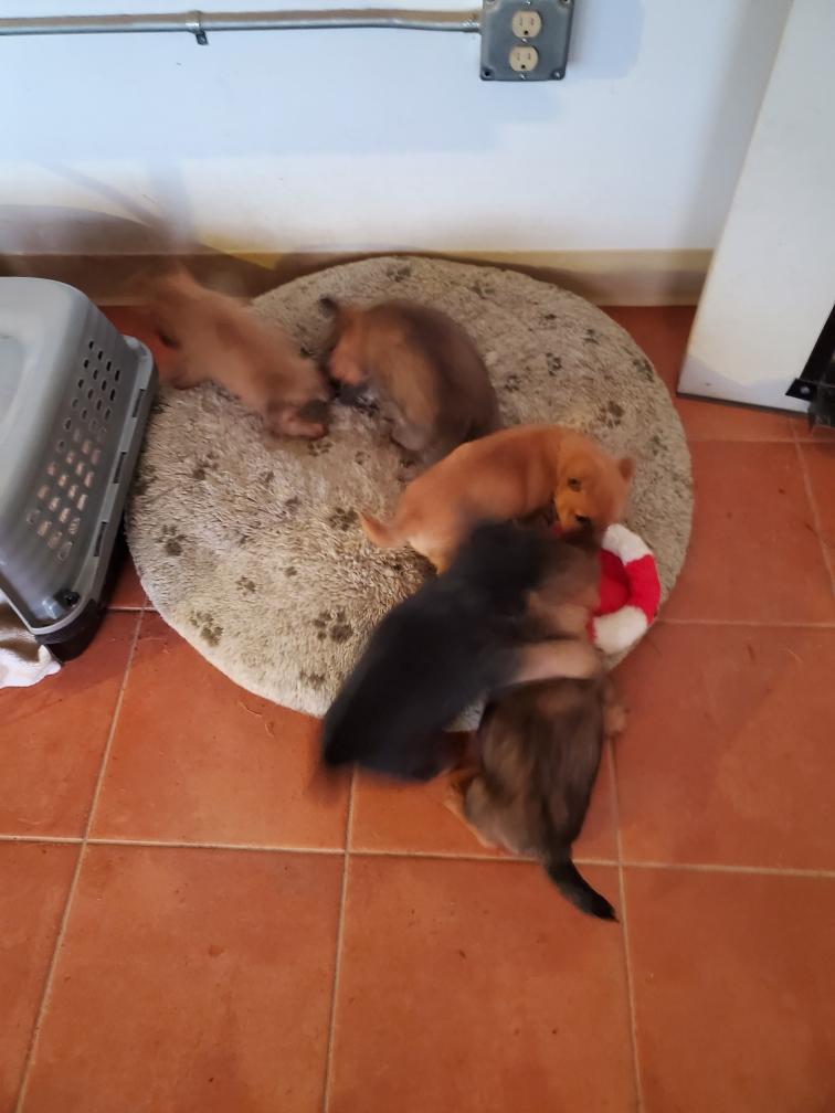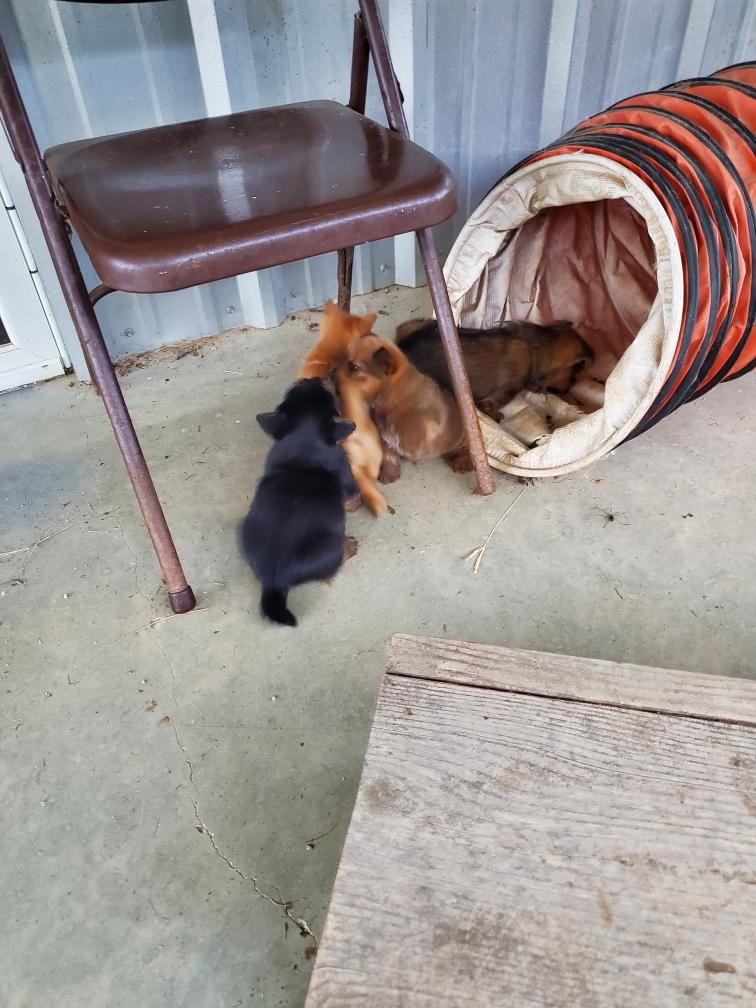 Until Siri moved her head to lick Black, Siri and the puppies were making a circle - but I did not reach my camera in time.