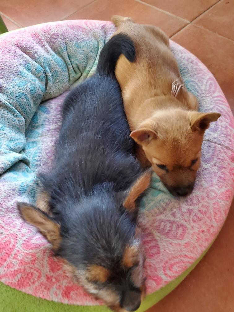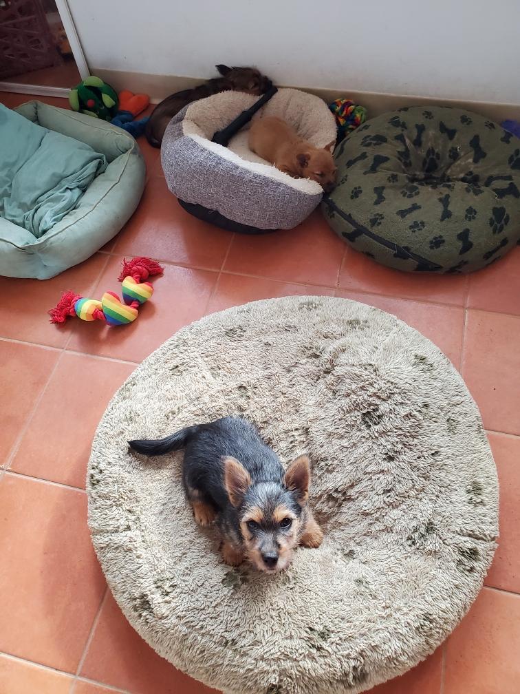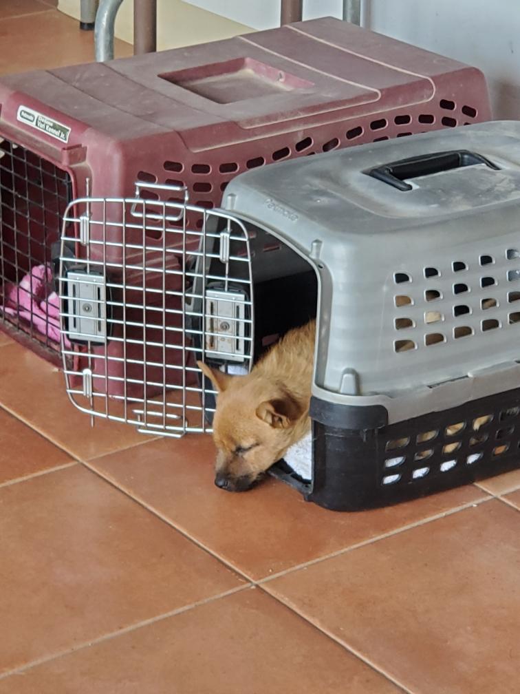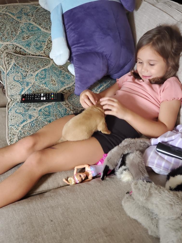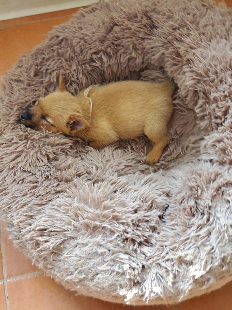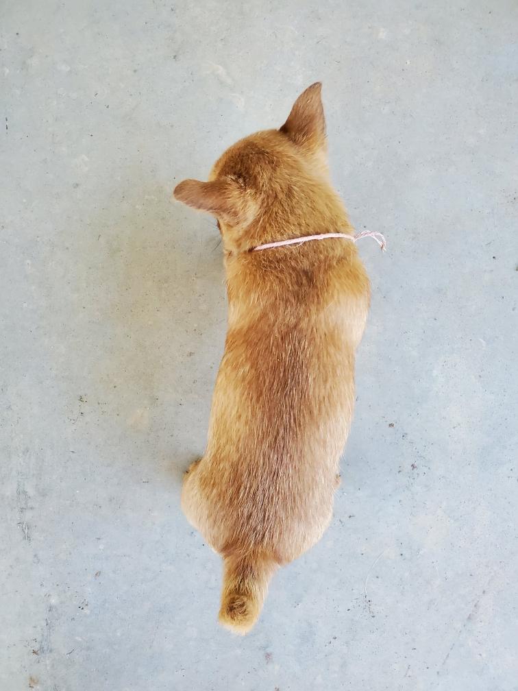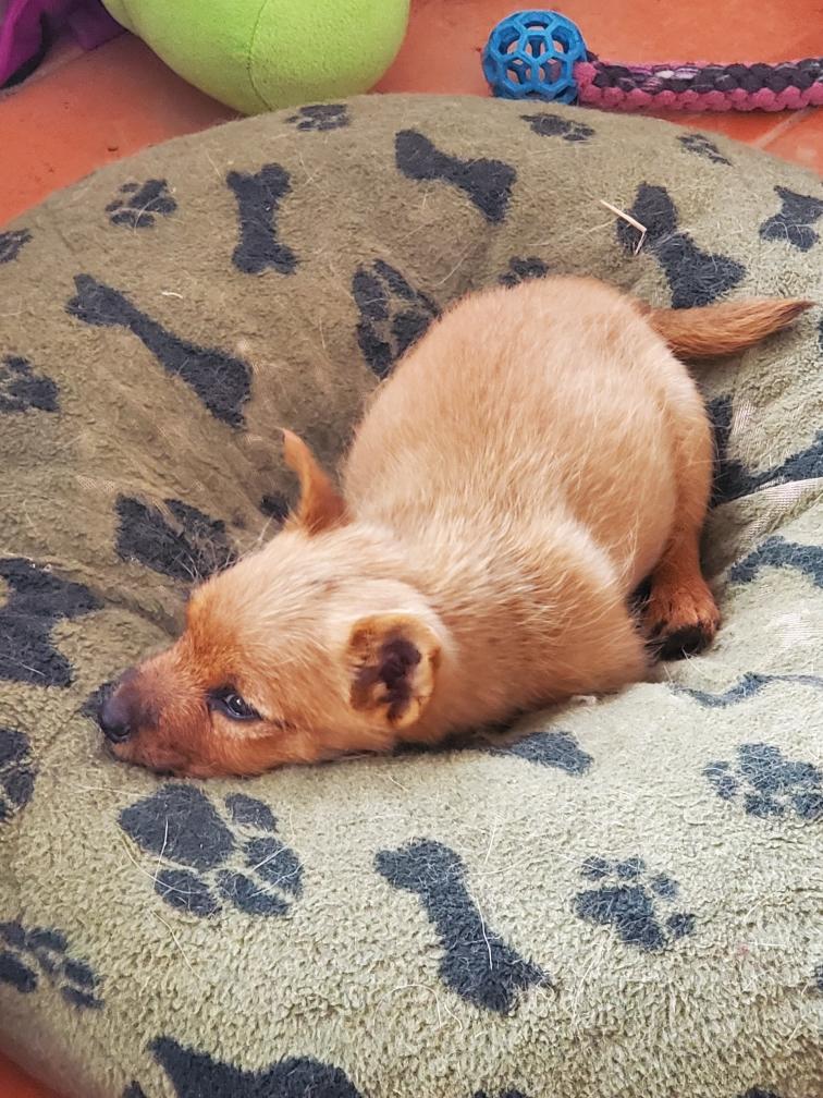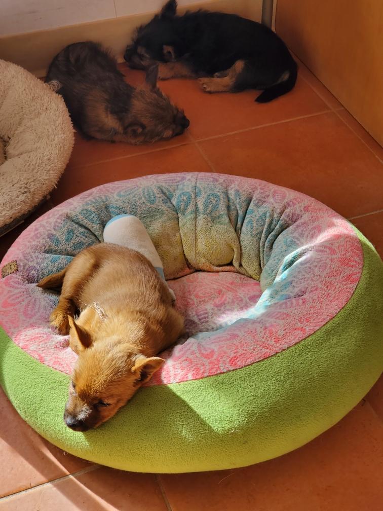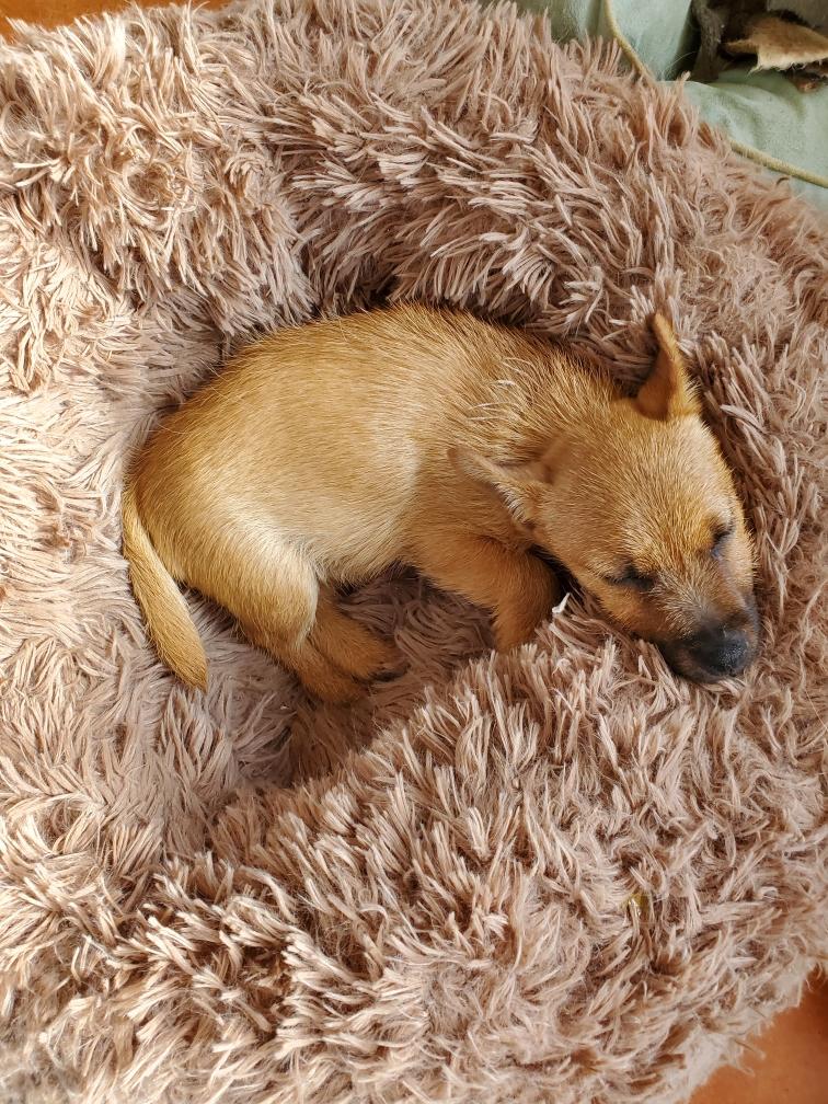 Pink napping on her back. And later showing off her new collar as her old collar had gotten dirty and tight.