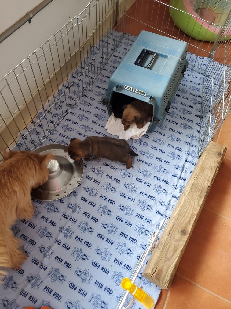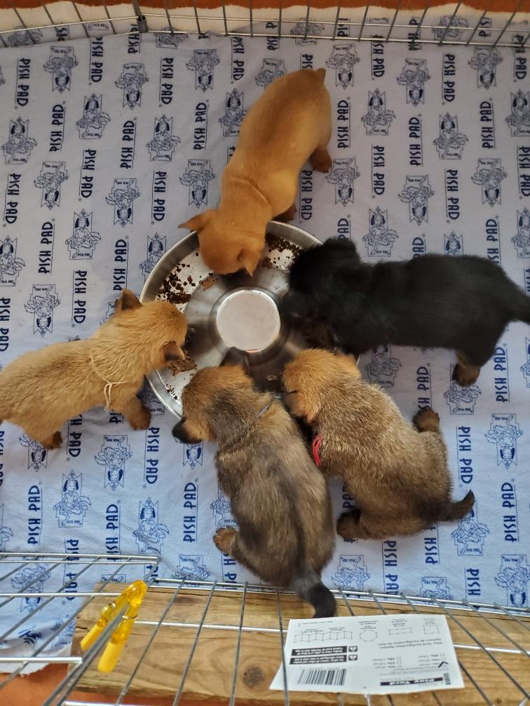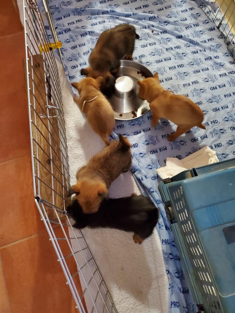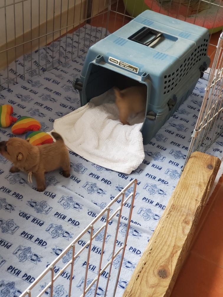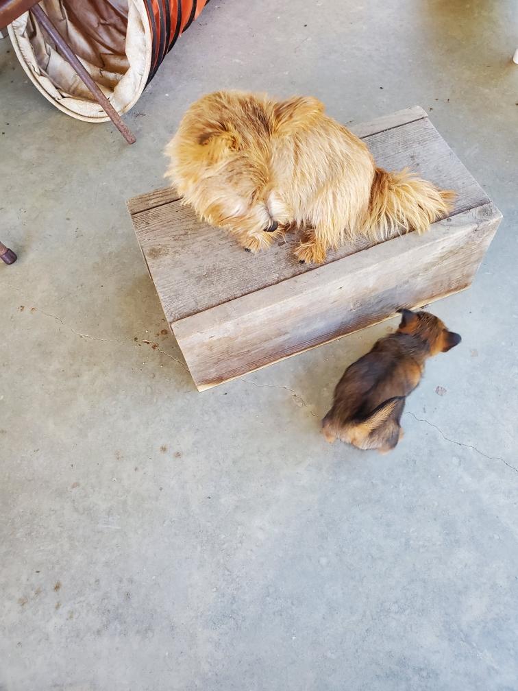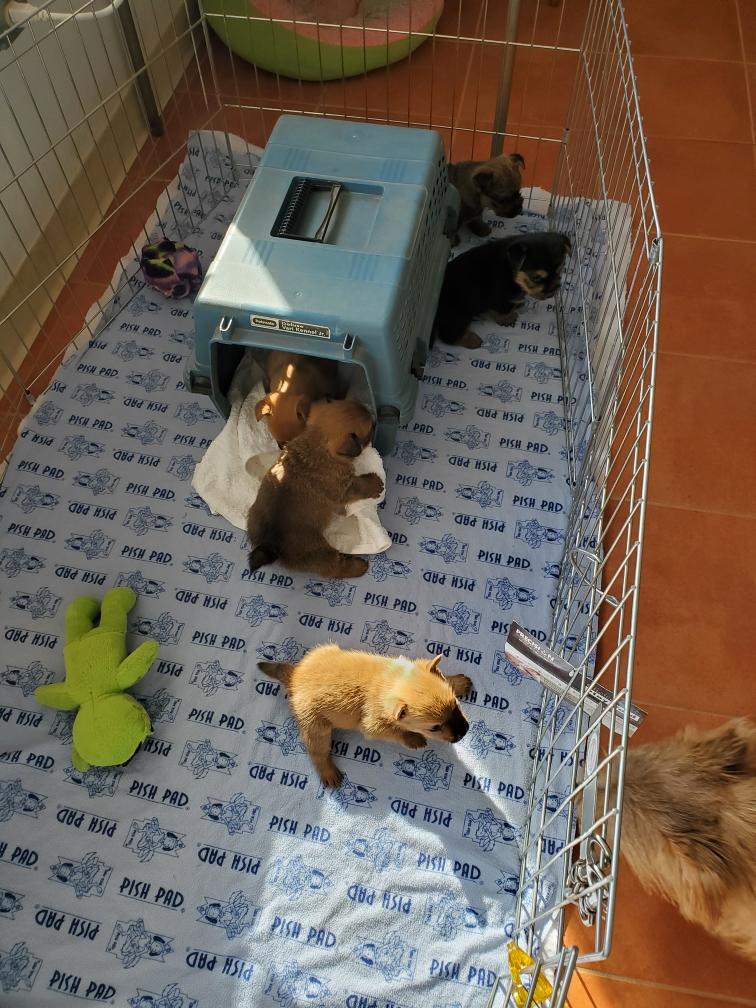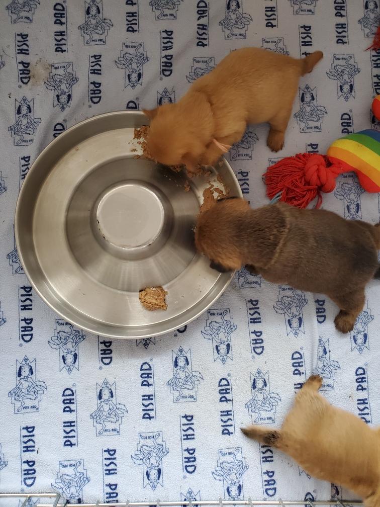 Gwynie is spending less time in the whelping box. But Gywnie is usually not far away from her puppies.