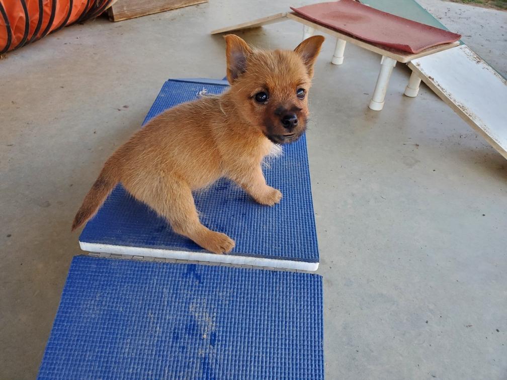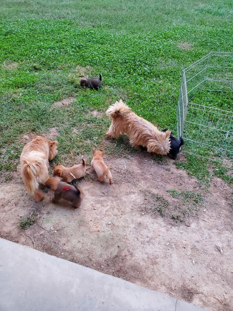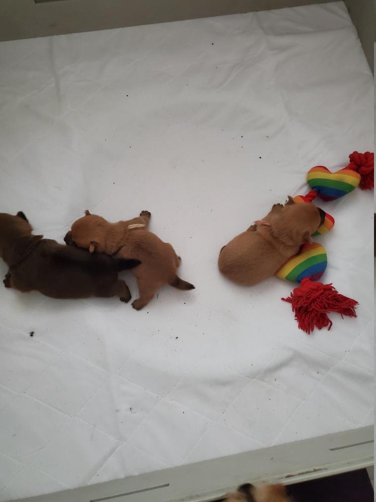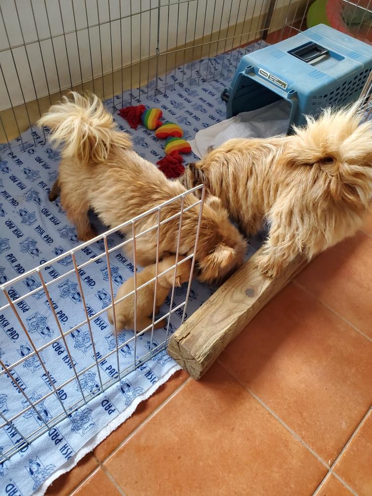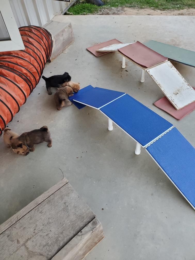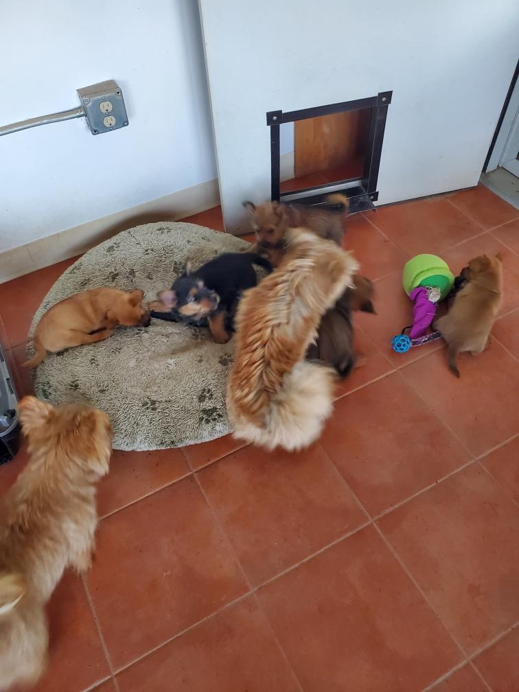 Gwynie is spending less time in the whelping box. But Gywnie is usually not far away from her puppies.