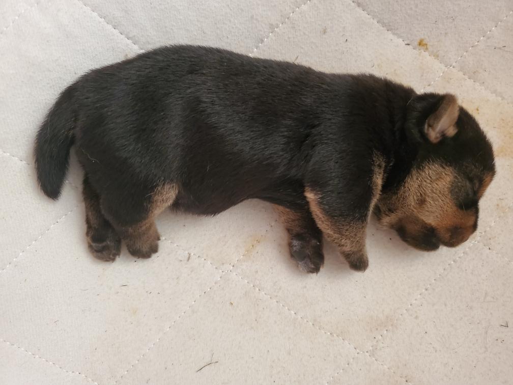 A little colic by Black today; he tends to overeat and then have a sore tummy. But mostly the puppies were quiet. On my frequent trips into my bedroom to check on the puppies I am always looking to see if the sleeping puppies are "twitching". Sometimes I have to stare at a puppy to see it, as a puppy can be still but all of a sudden "jerk". This twitching or jerking is normal and believed to be due to nerves growing.