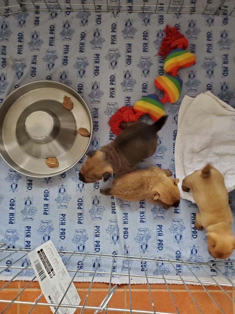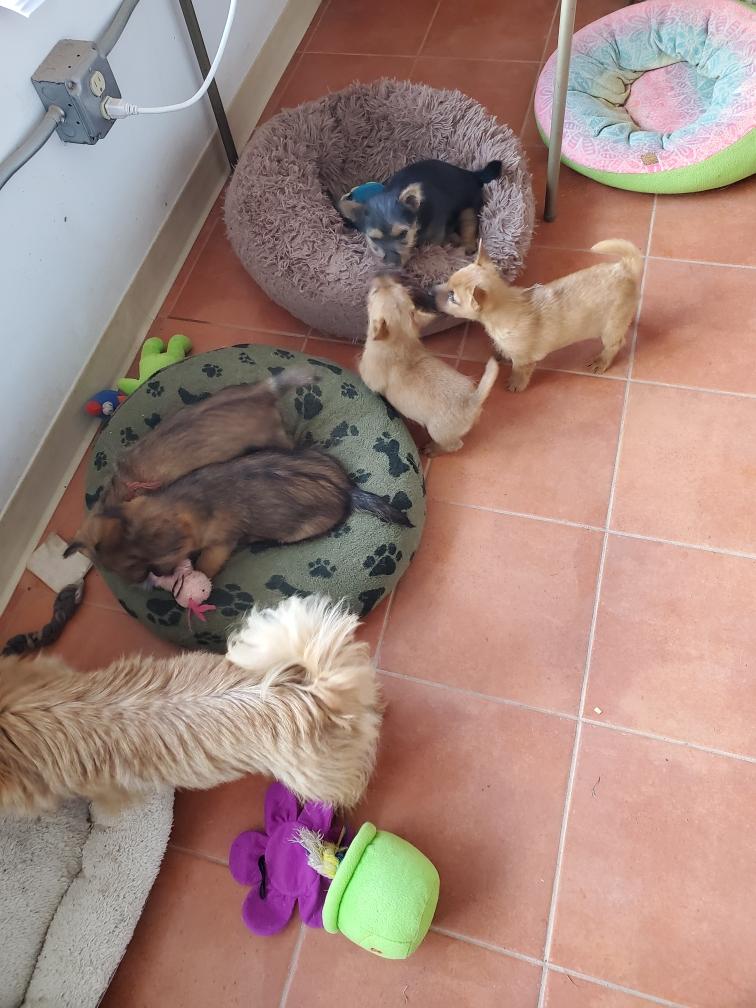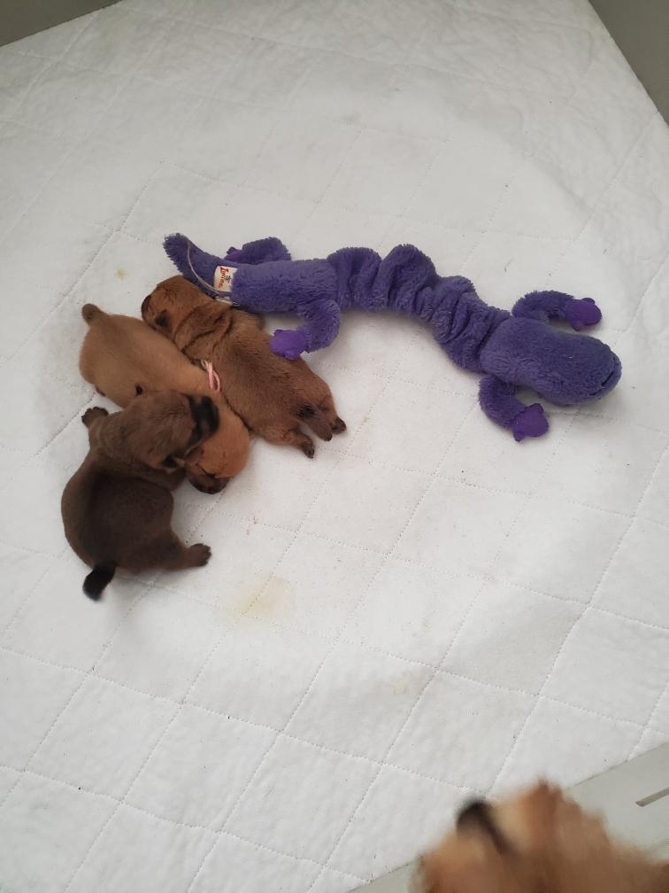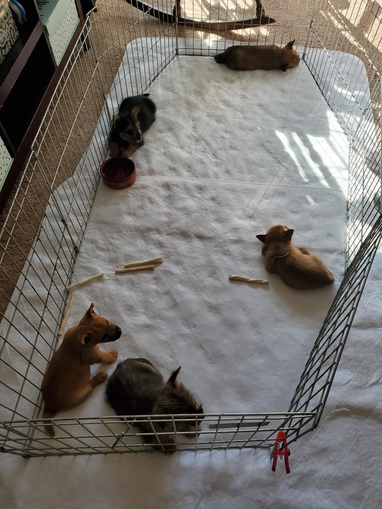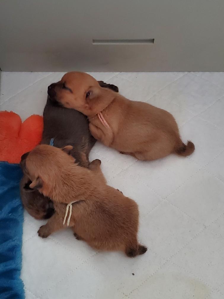 All the puppies including Blue were quiet today. Gwynie with Pink, Blue, and White and Red and Black.