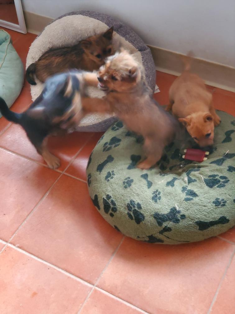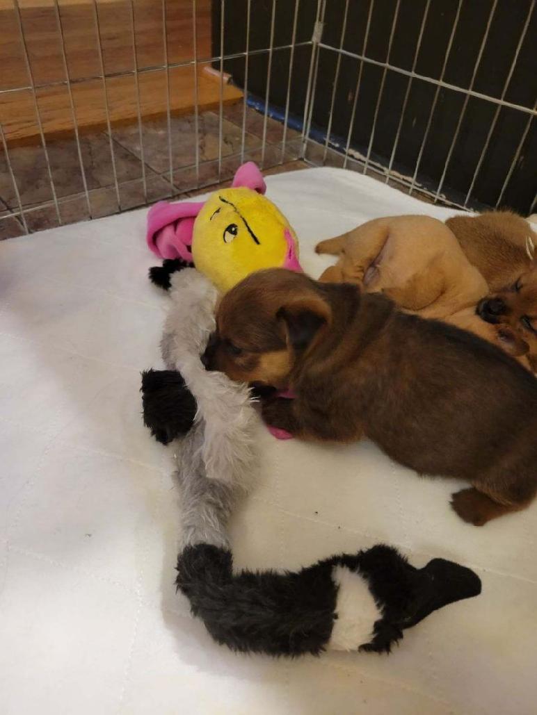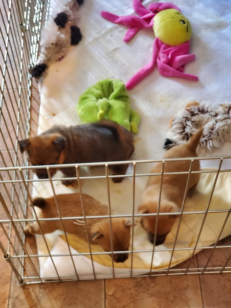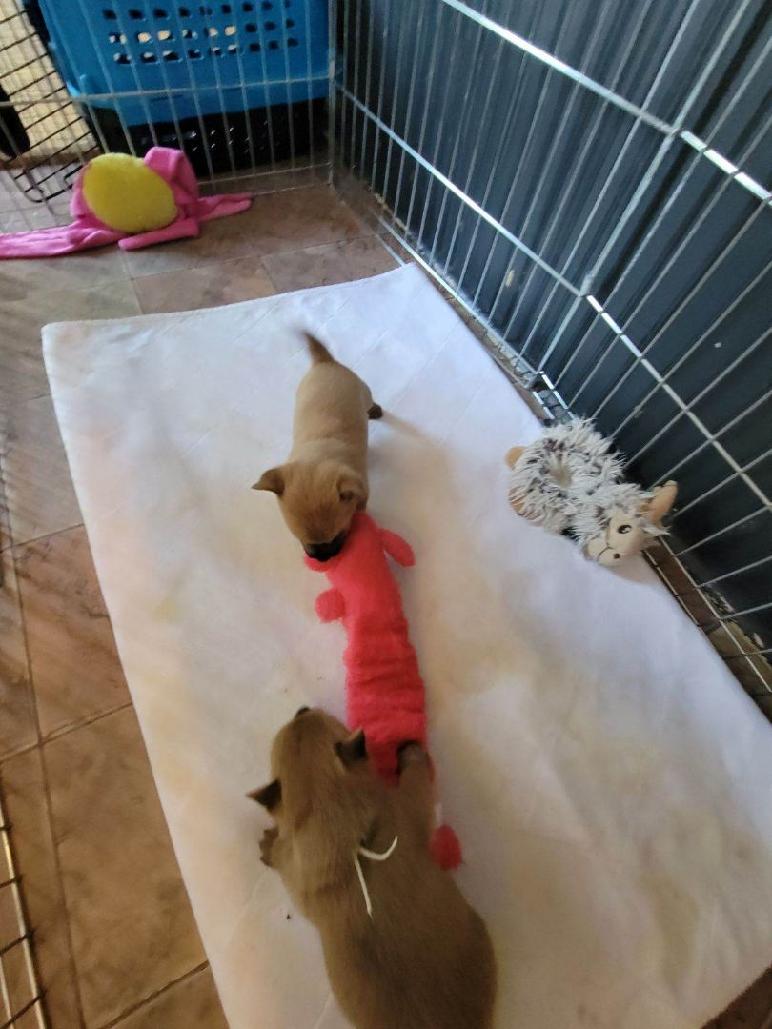 All the puppies including Blue were quiet today. Gwynie with Pink, Blue, and White and Red and Black.