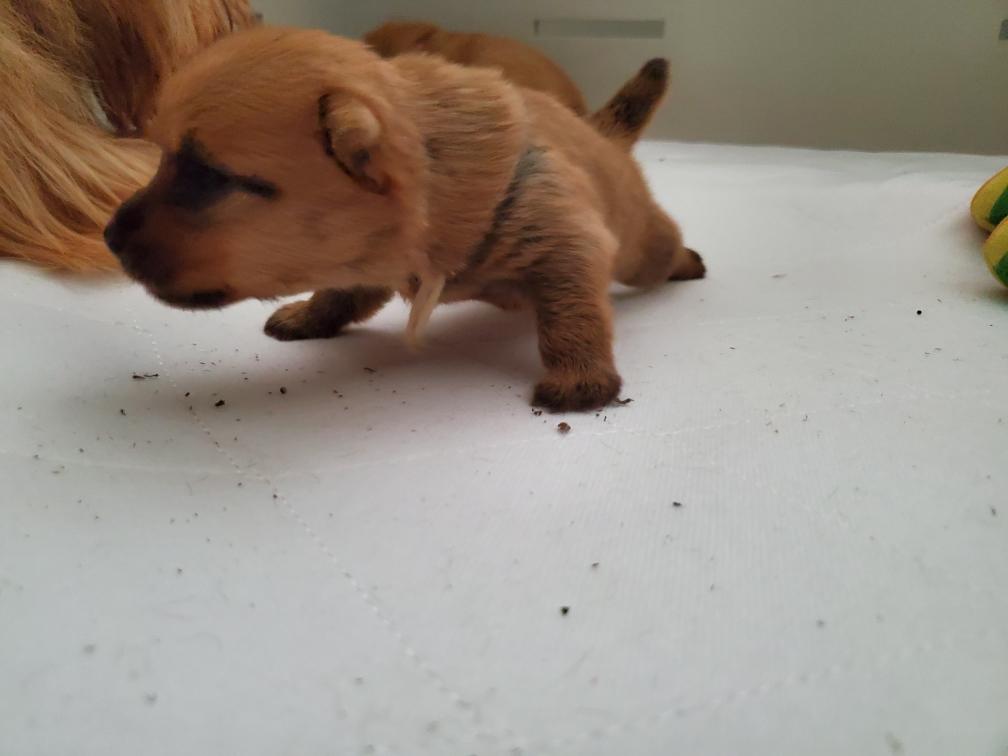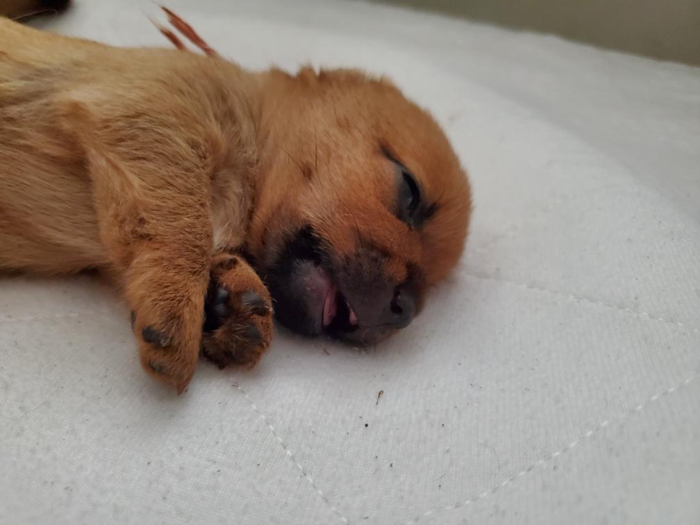It is interesting watching the puppies crawl. The puppies look like little seals dragging their bodies over the ice. The puppies are already efficient at moving themselves around the whelping box in search of mommy.
