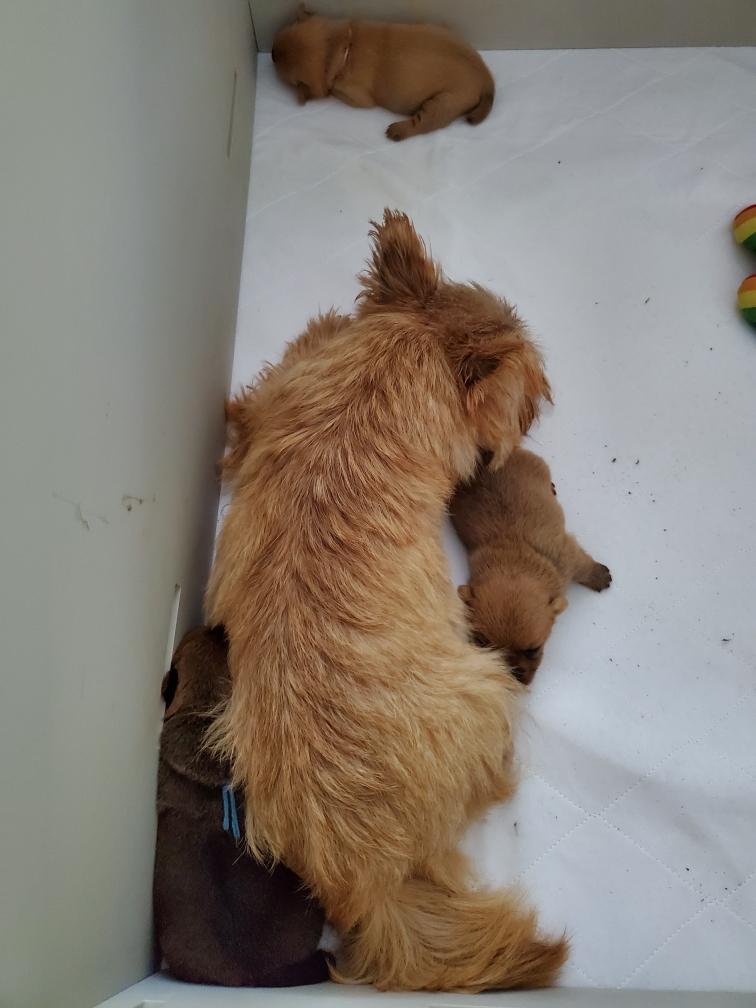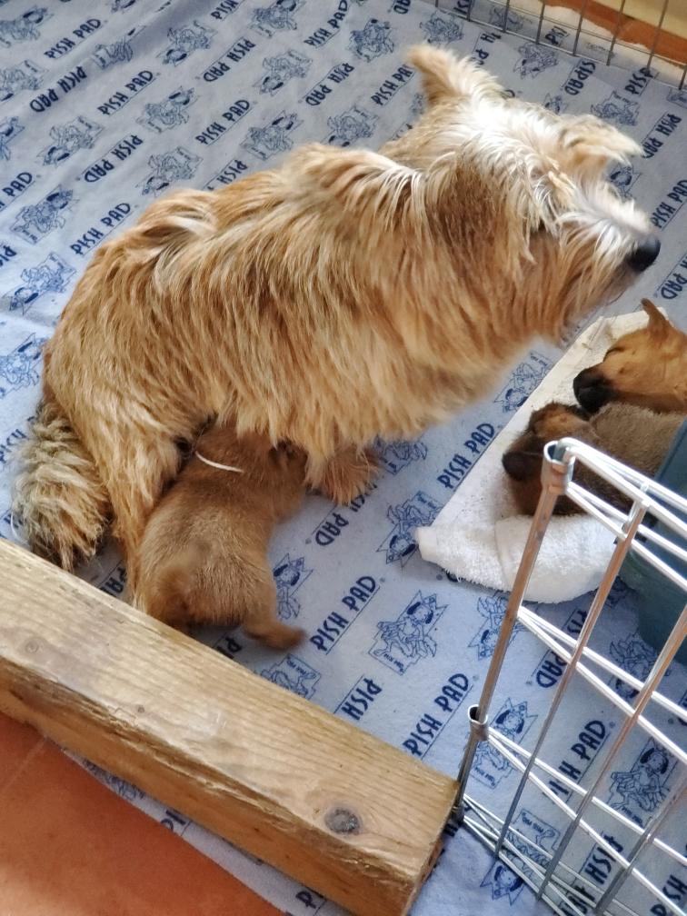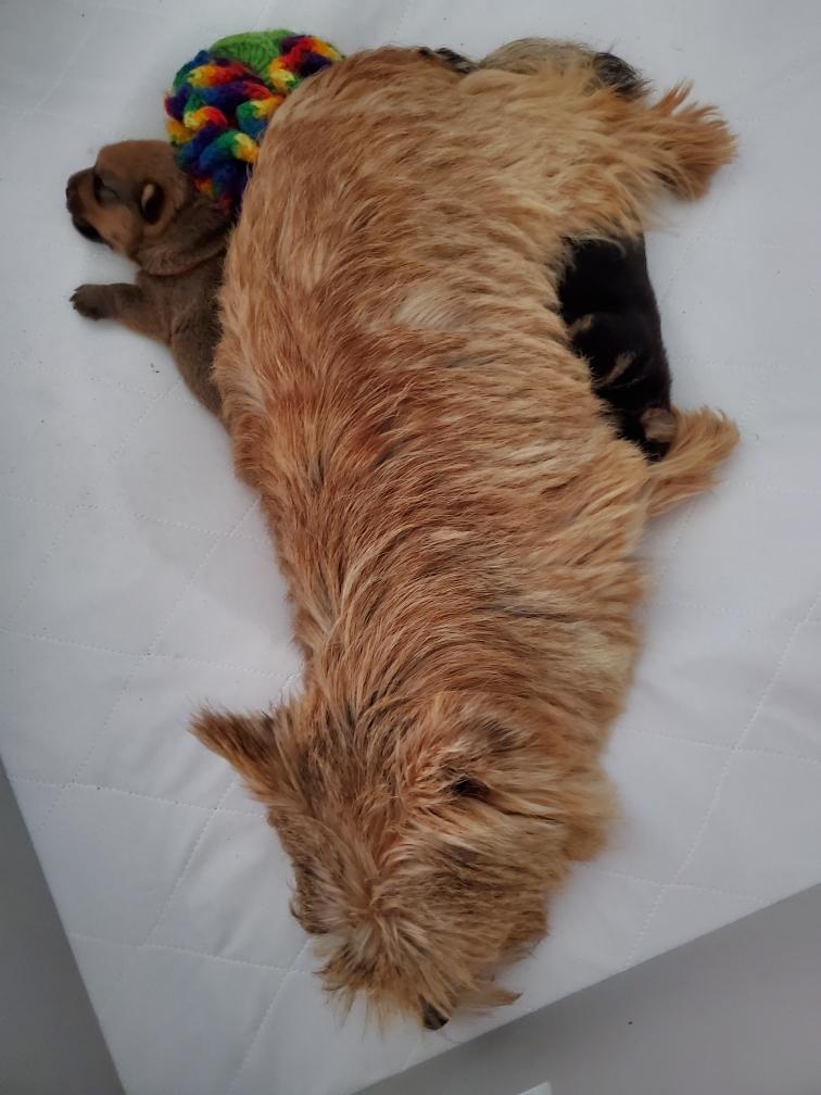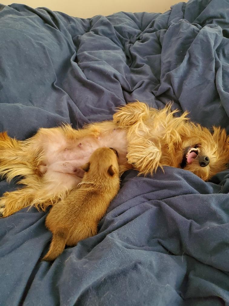 Mommy Gwynie had a unqiue way of guarding her puppies.