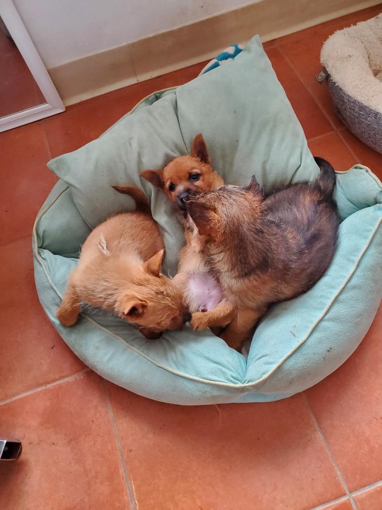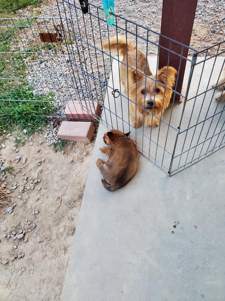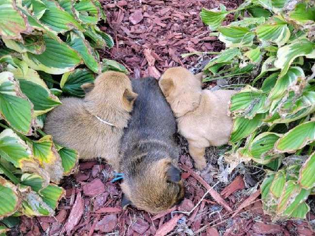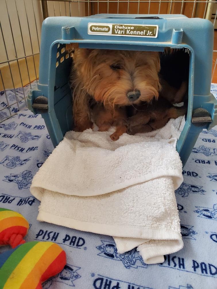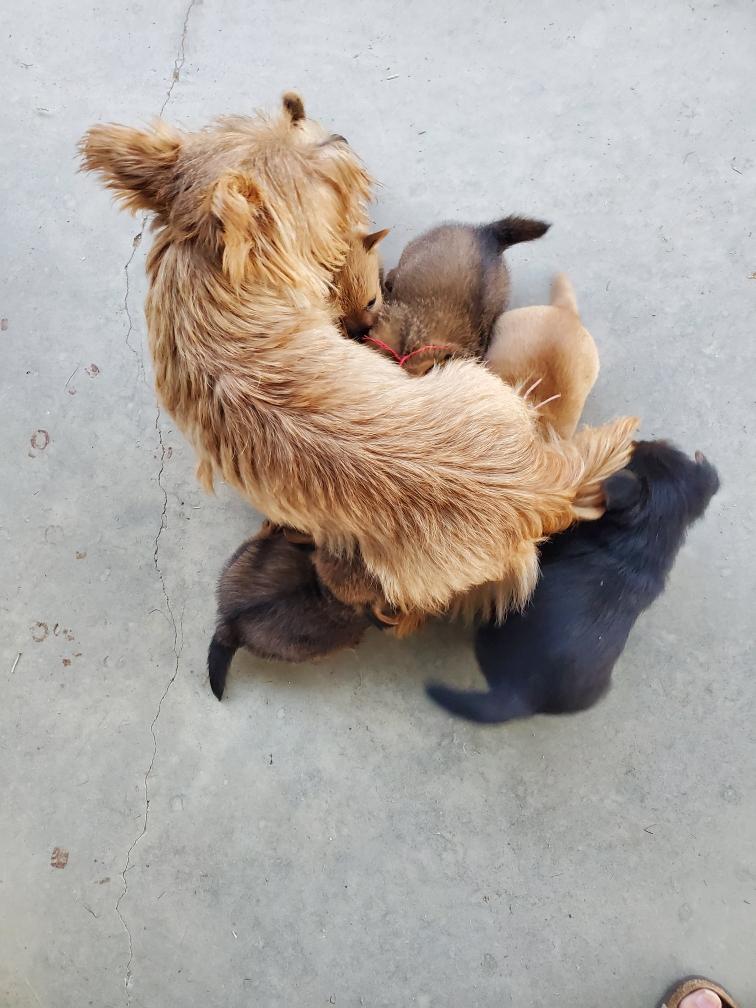Mommy Gwynie had a unqiue way of guarding her puppies.