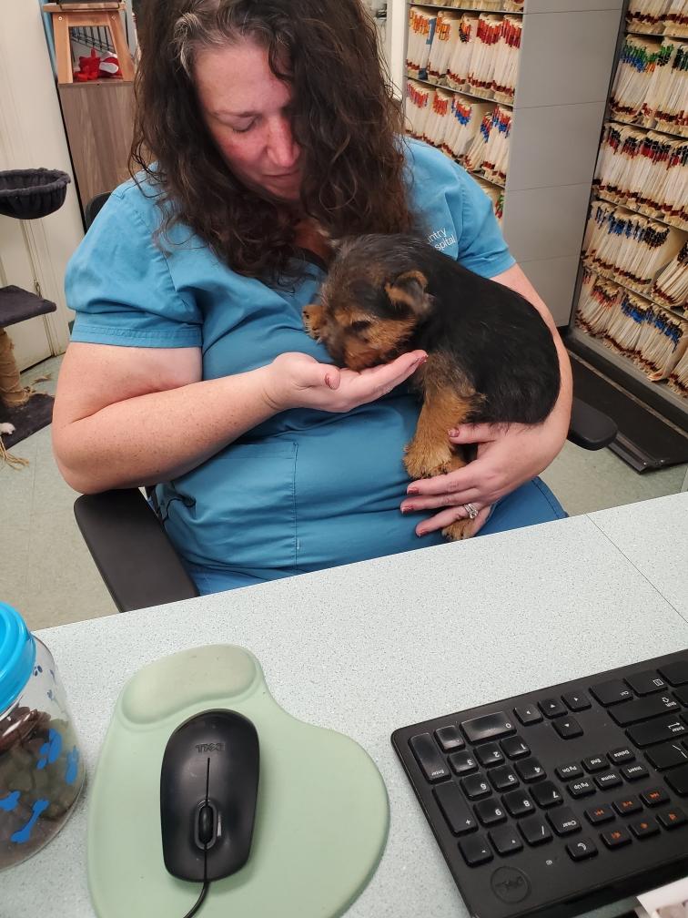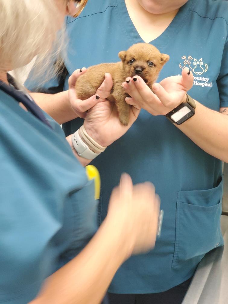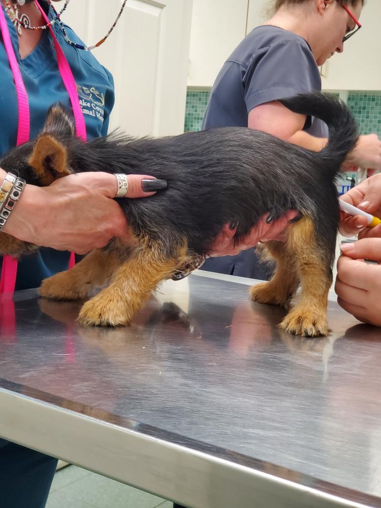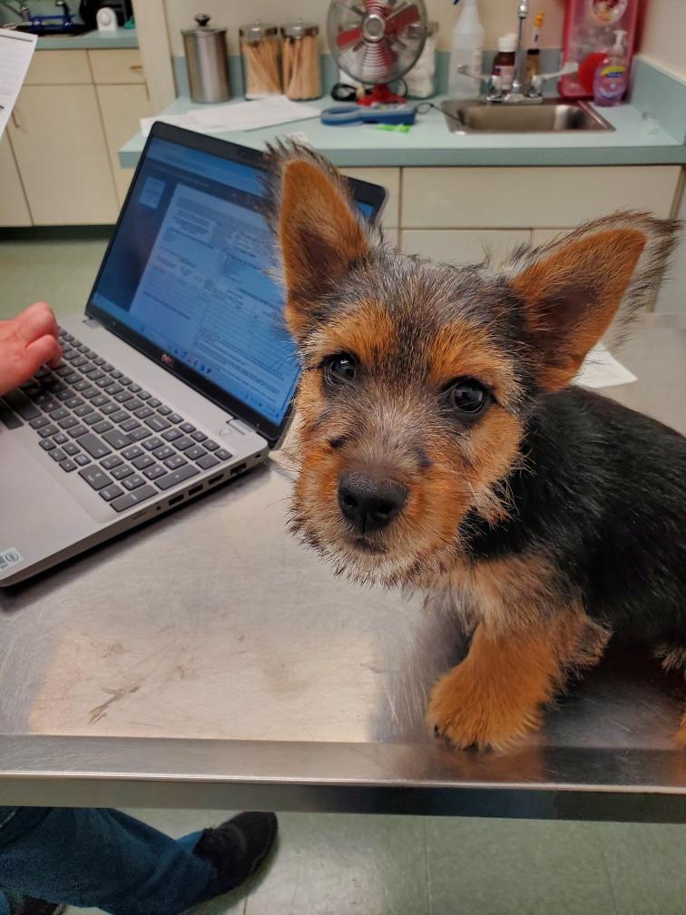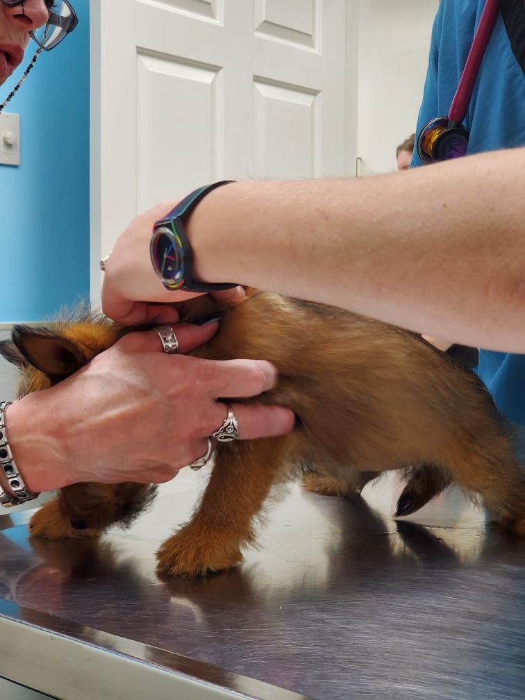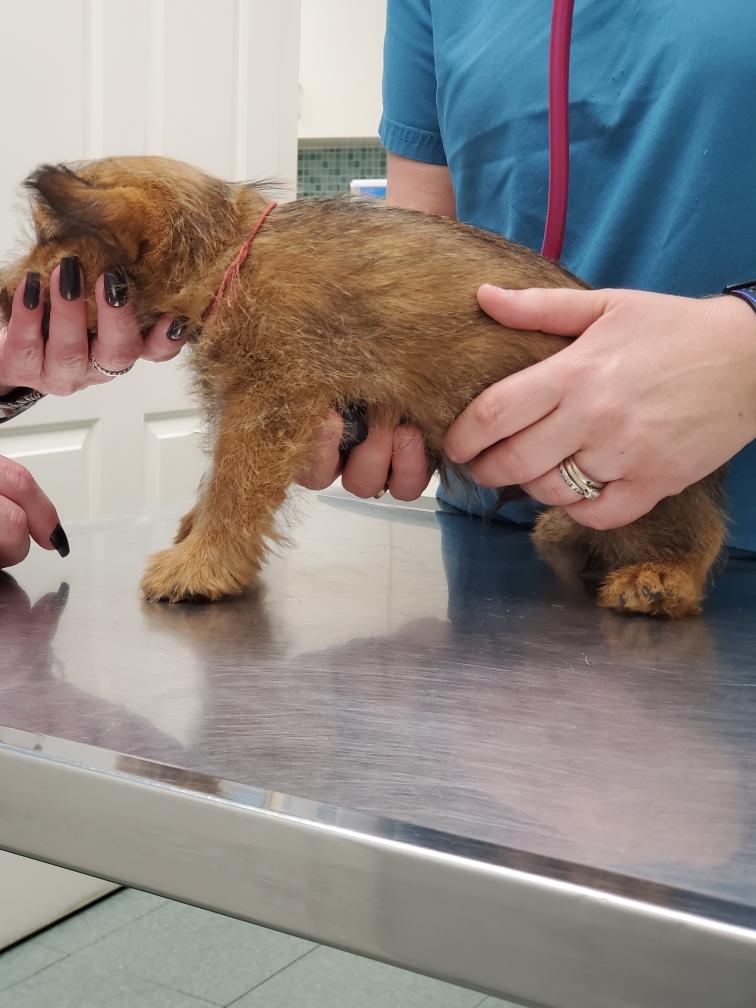 When Blue started crying both Gwynie and Siri got in Gwynie's whelping box to comfort the puppy. I shooed Siri out before Gwynie could get upset, and then let Gwynie say goodbye to Blue. I drove Blue to the emergency room of the NC State Veterinary Hospital. I considered this a "hail mary" play. If I did nothing, I felt sure Blue would die. So doing something seemed better than doing nothing. At the least we might learn something.