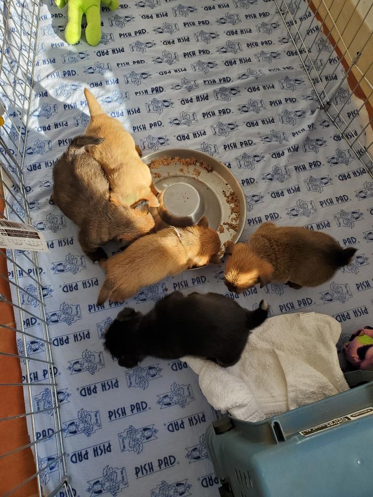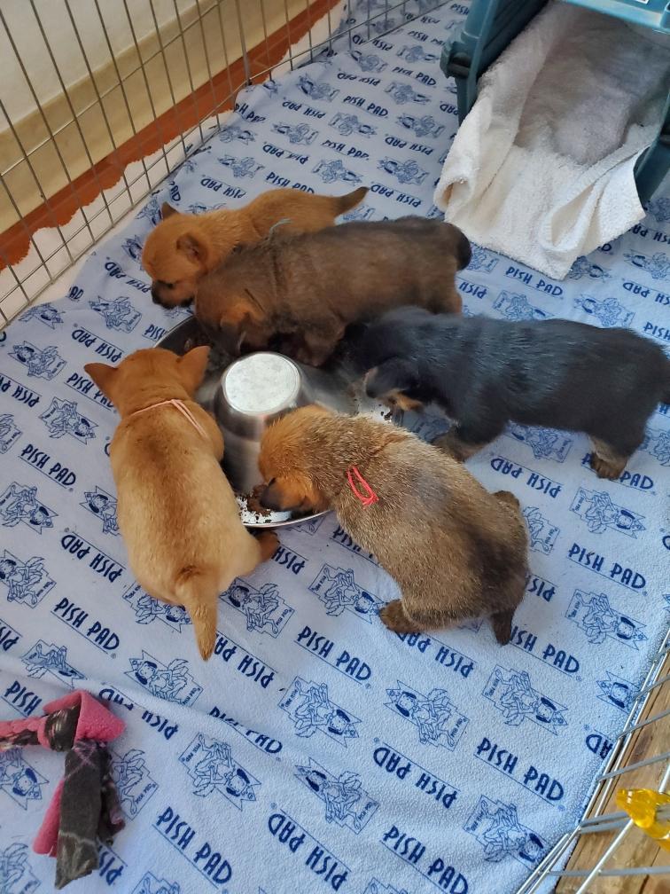 Now that Blue is doing well, my concern has shifted to White. White has not been gaining weight. Tonight I am putting Red, White, and Pink in Siri's whelping box, and Blue and Black in with Gwynie.