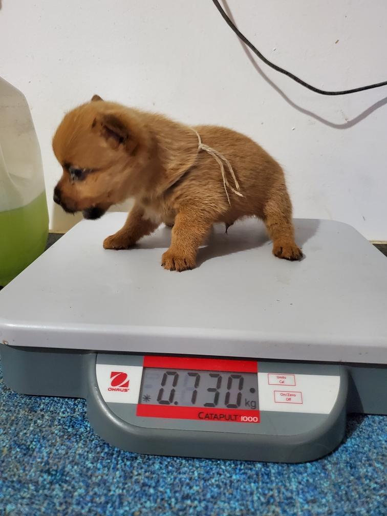 In the morning I checked the puppies over and weighed them. All the sutures for their umbilical cords are healing nicely. Blue and White gained a few grams. Pink lost a few grams. It is not abnormal for a puppy to lose a little weight in the first 24 hours after birth. I also weighed Gwynie and took Gwynie's temperature, which was normal. I will be taking Gwynie's temperature for the next several days to make sure that Gwynie does not have any infection from her c-section.