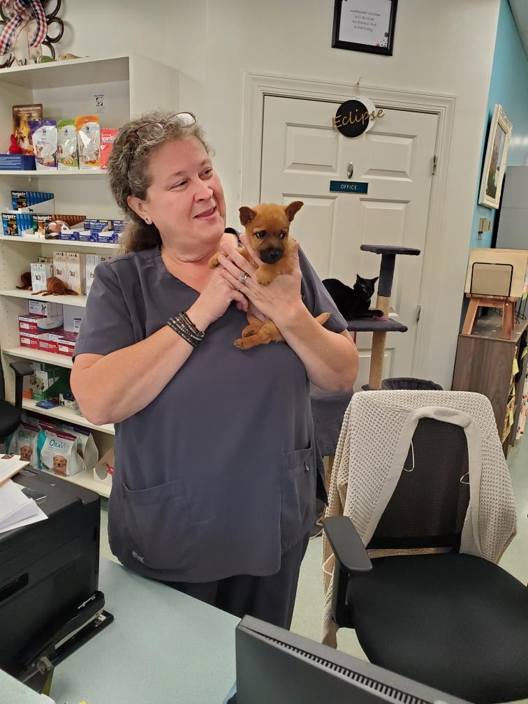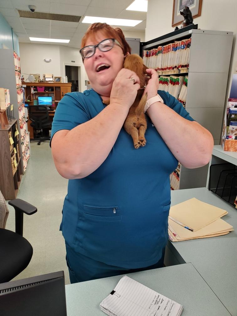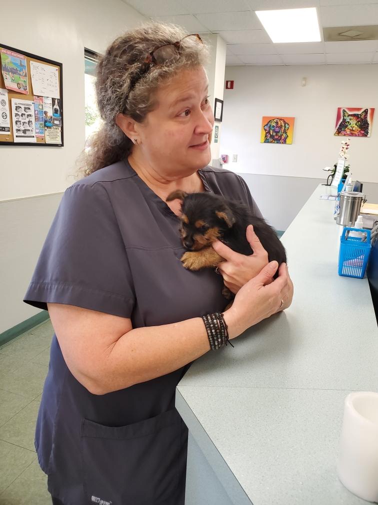 Pink's overnight weight gain made me feel better about leaving Gwynie and her puppies this morning. I had to take Siri to NC State for Siri's first c-section "staging" appointment - a blood draw to check Siri's progesterone level and an ultrasound to check the puppies. The puppies do not yet have good GI motility. Siri and I waited for the progesterone results. Not today was the verdict. We will come back tomorrow morning (and every morning) until the decision is made to do Siri's c-section.