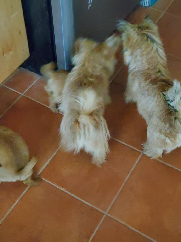 On my way home I stopped at my petsitter and picked up my other dogs. This had been what I had planned for today. When we got home there was much greeting by Gwynie and Siri, and warning - mostly by Siri - for everyone to stay away from Siri's whelping box and puppies.